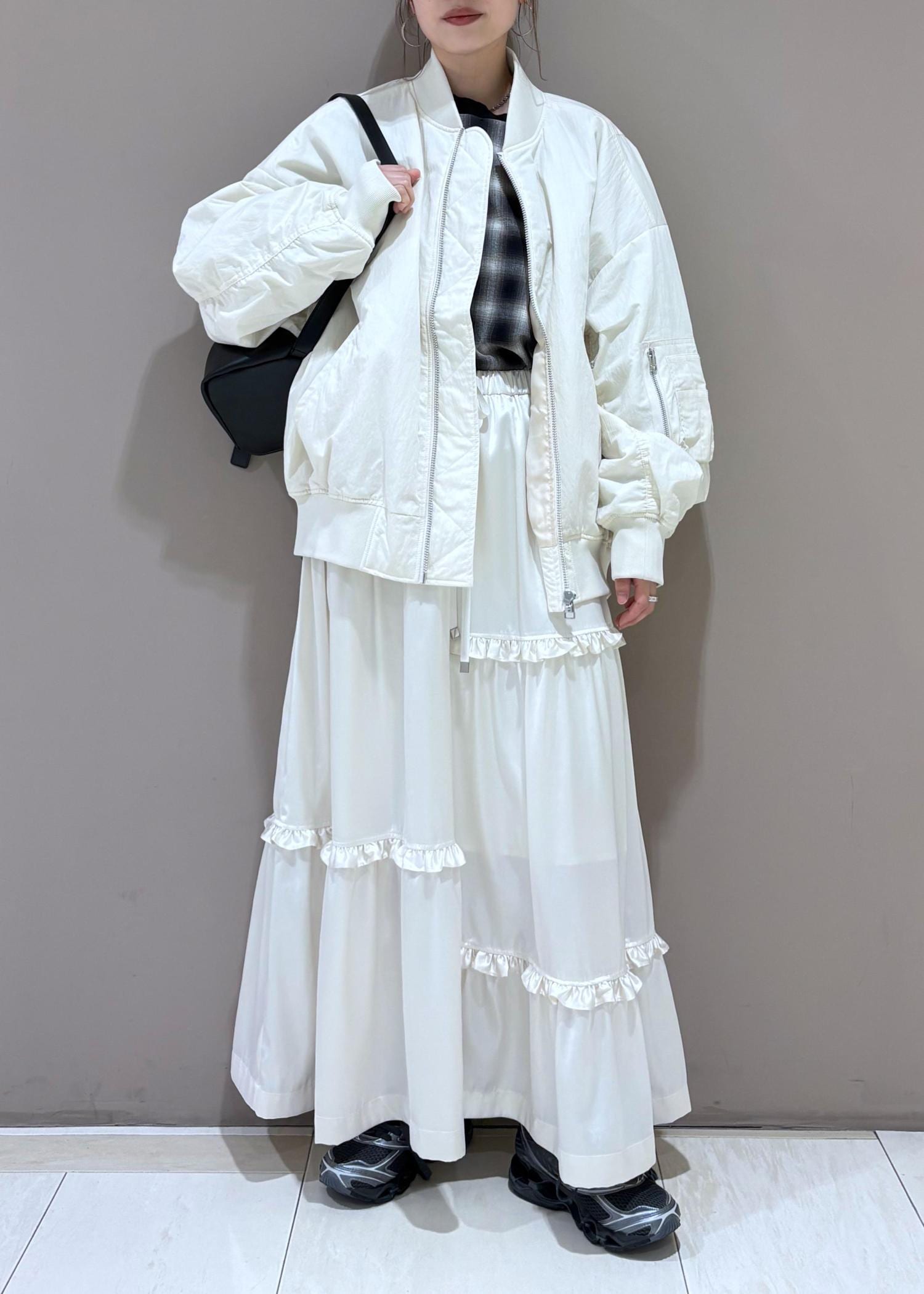 シンプルなトップスや、メンズライクなトップスと相性◎ -