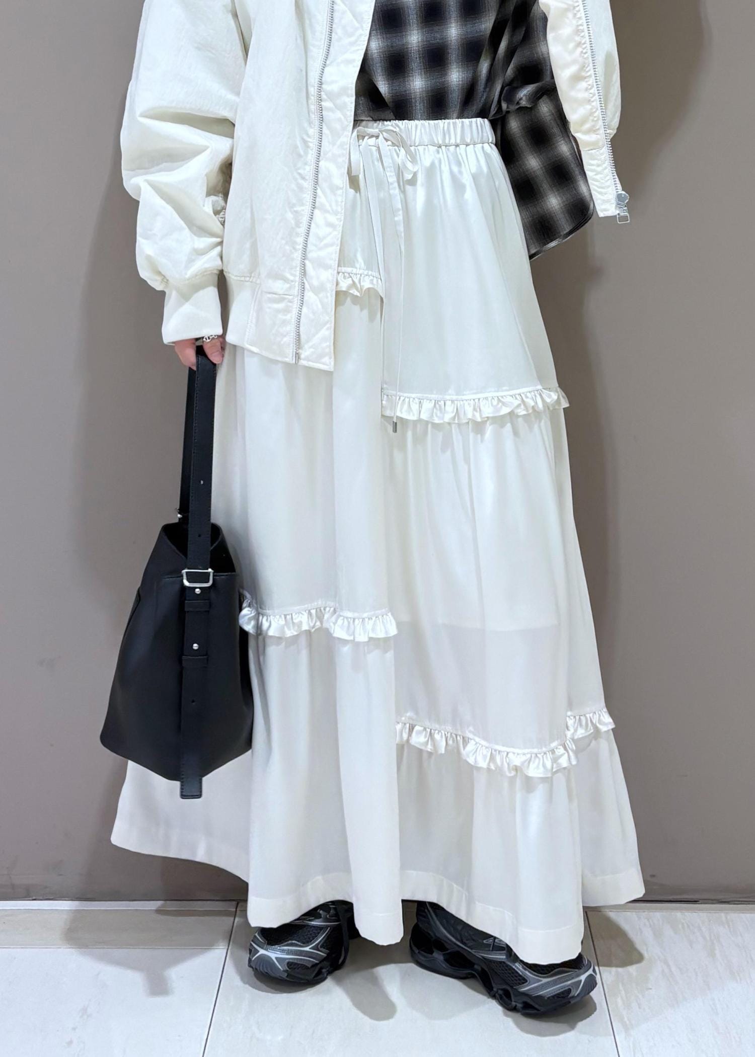 ADAM ET ROPÉ FEMMEミニフリルボリュームギャザースカートオフホワイト / F¥22,000レビュー162cm.フリーサイズ着用。