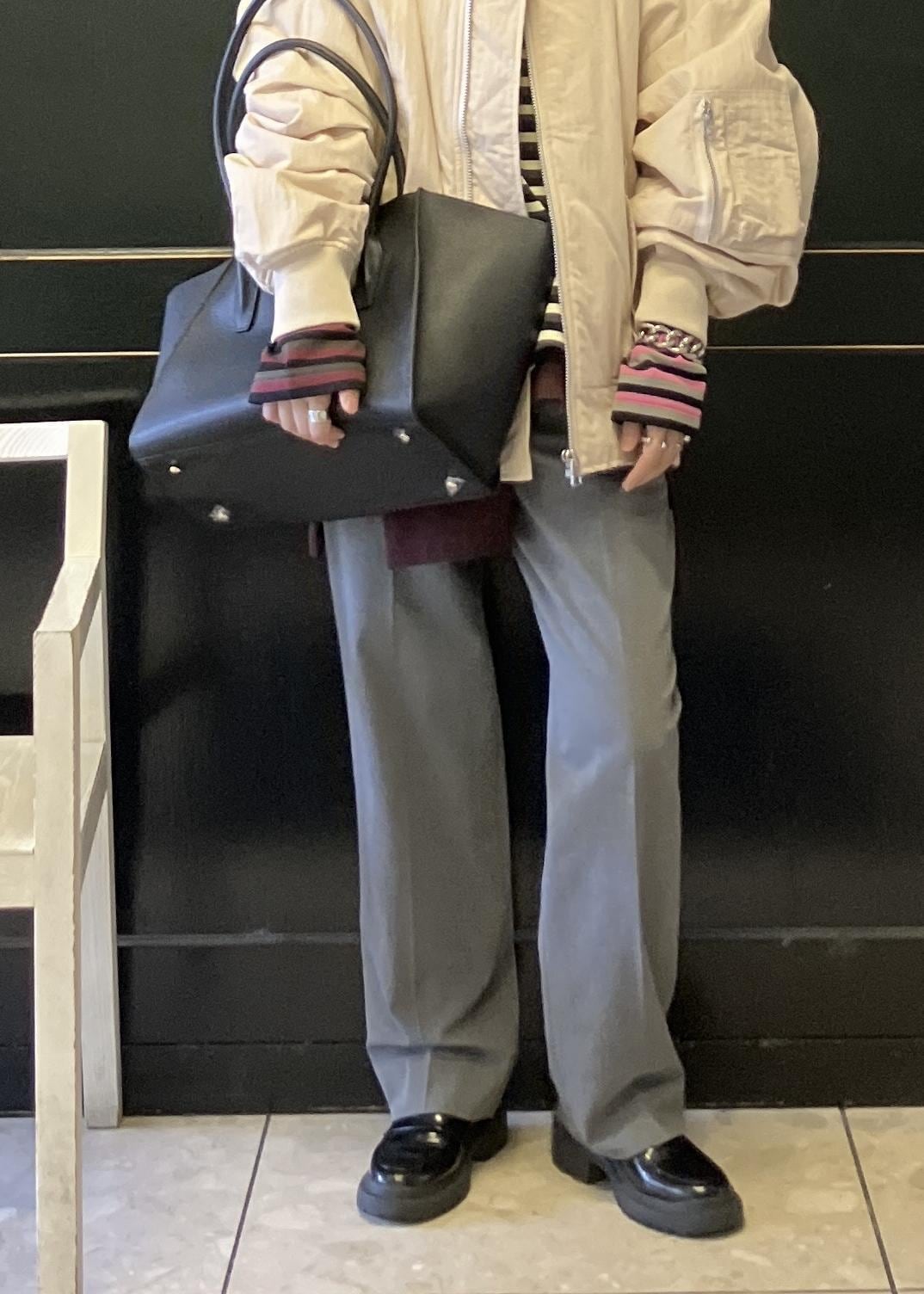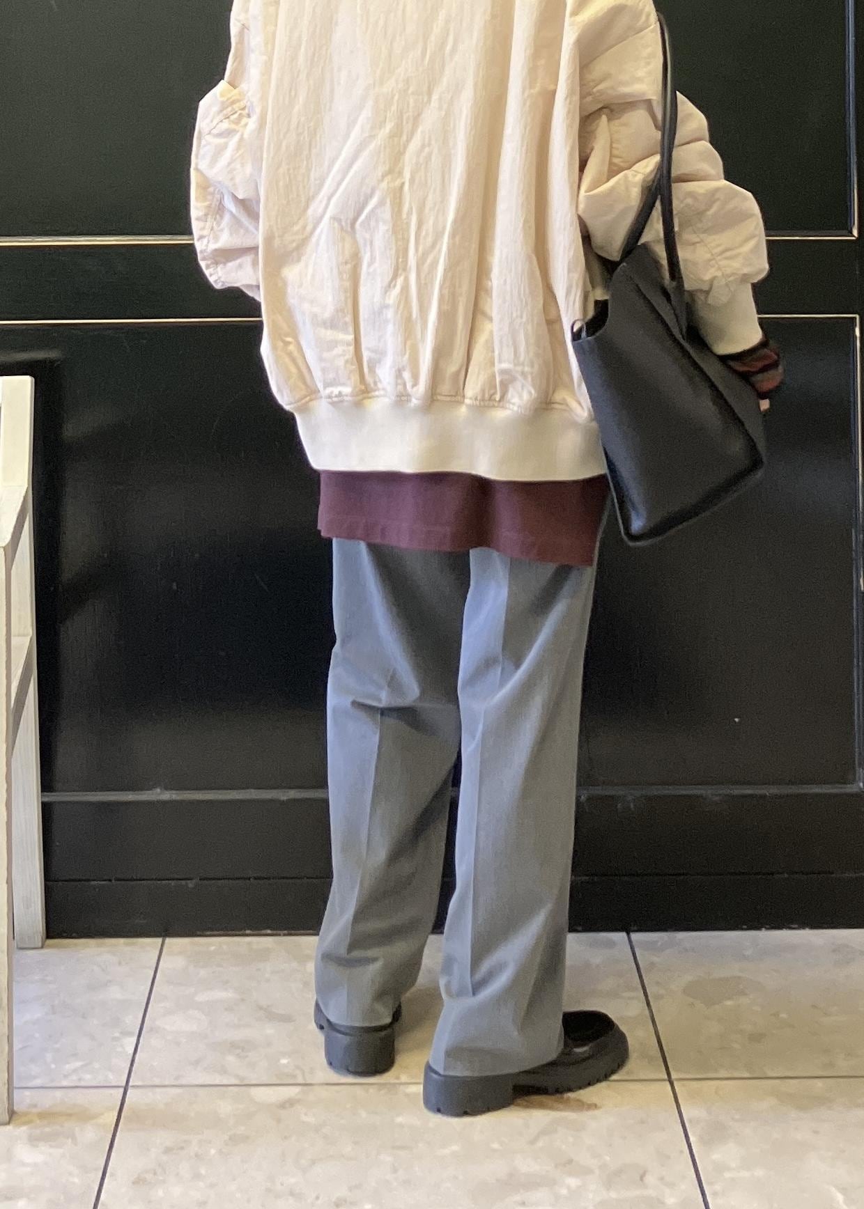 綺麗めスラックス、プリーツスカート、意外と色んなボトムと相性良いですよ! -