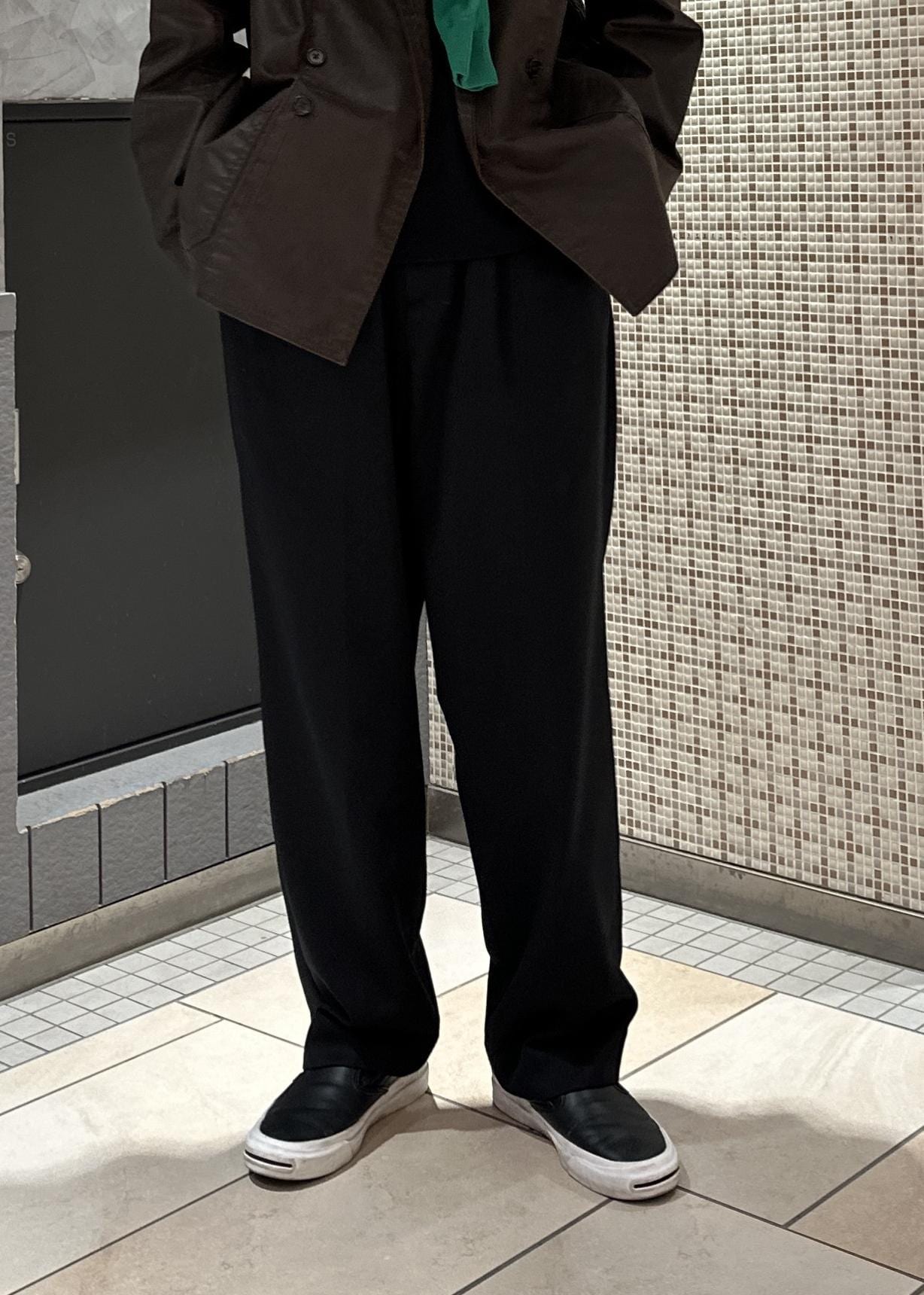 ADAM ET ROPÉ HOMME【NIKKE】ワイド イージー デニム スラックス / ADAM ET ROPE' JEANS -GRID-ブラック / M¥24,200レビュー178cm、痩せ型、骨格ウェーブでMサイズを着用しています。