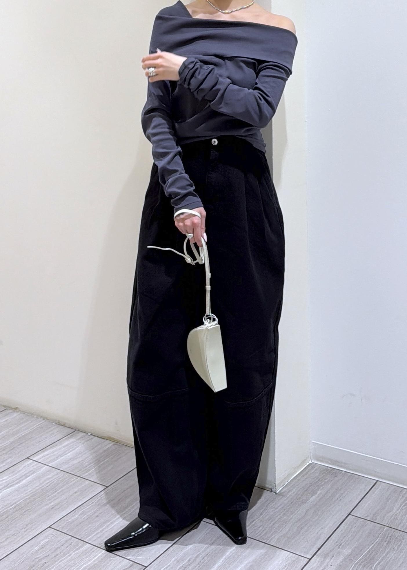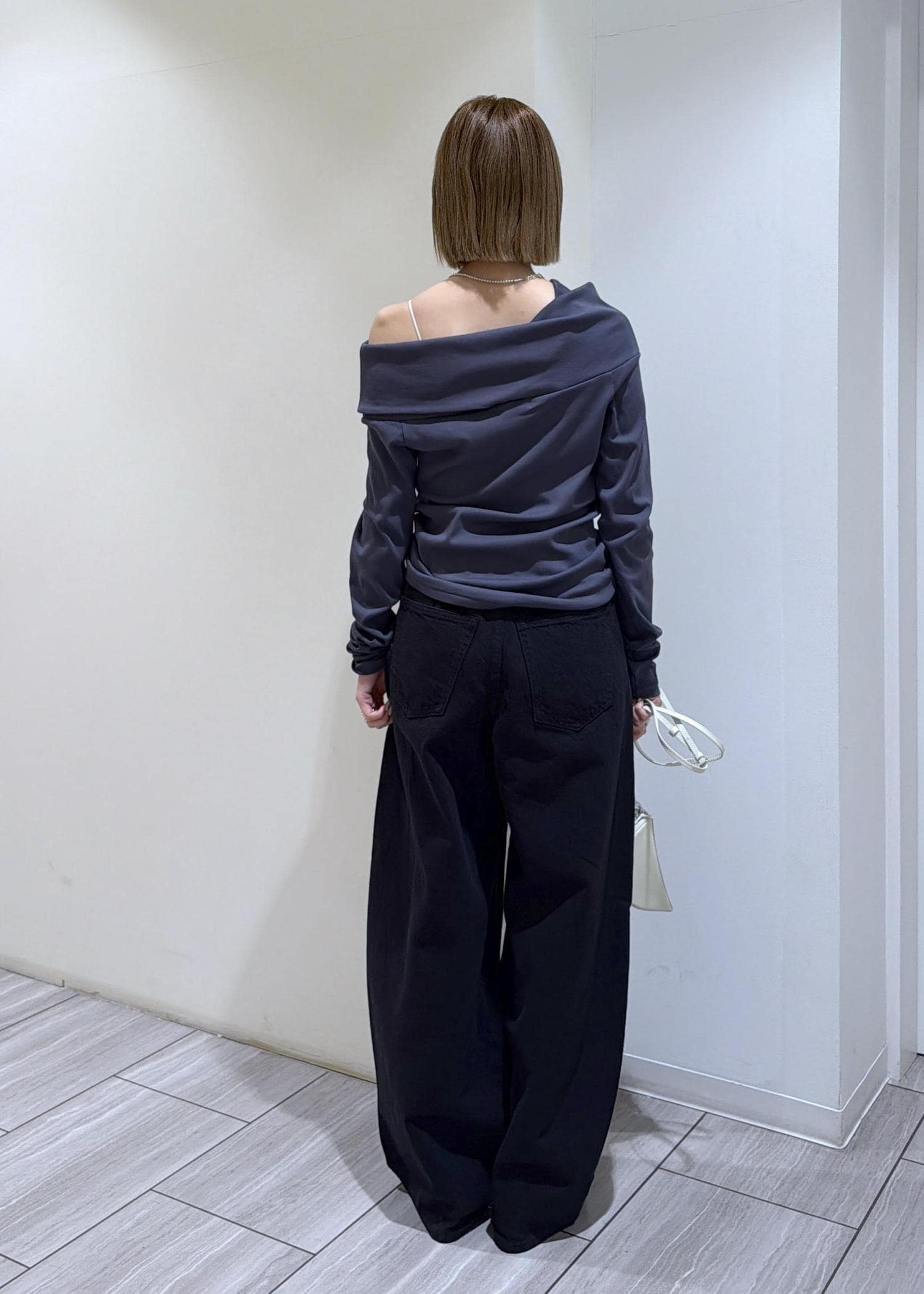 オフショル部分のデザインがモードな雰囲気にしてくれるおすすめトップスです!