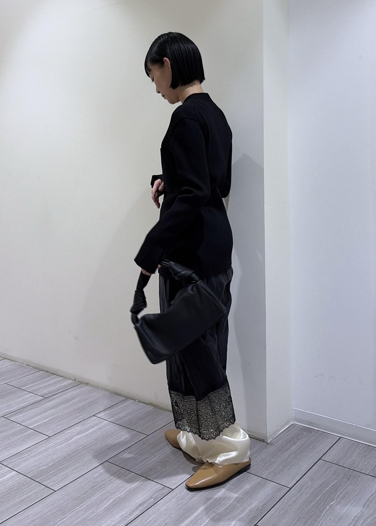 NEW!EMOELLE【EMOELLE】サテンイージースラックスキナリ / 36¥28,600レビュー素材がとても可愛くパンツ。綺麗めな細めのシルエットで、オンオフ兼用で着用可能◯!