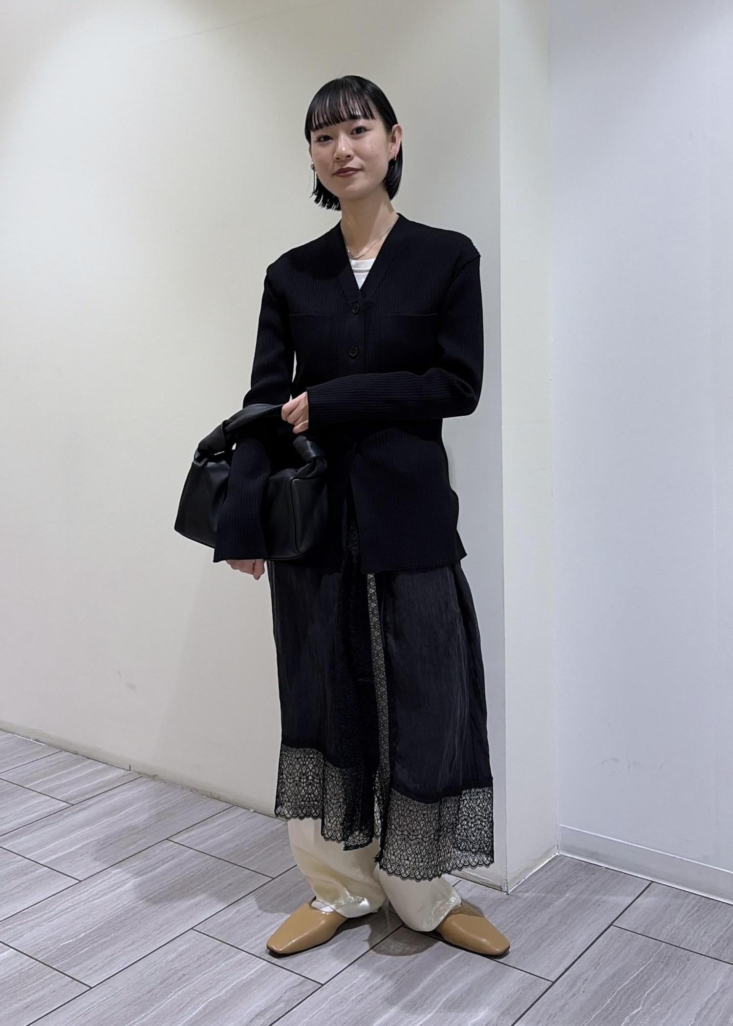 NEW!EMOELLE【EMOELLE】ポケットリブカーディガンブラック / F¥26,400レビュー程よいサイズ感のカーディガン。綺麗めなシルエットになっているのでオンオフ兼用◯!デコルテのラインも綺麗に見えるポイントっ!
