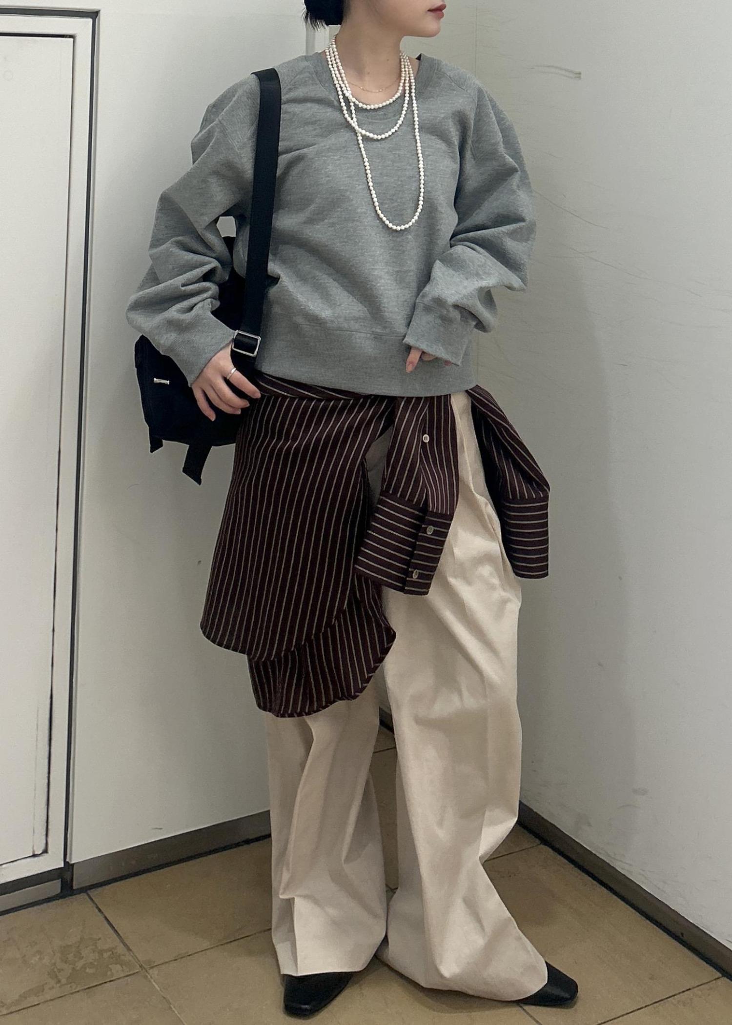 NEW!EMOELLE【EMOELLE】スウェットプルオーバーグレー / F¥19,800レビュー深めのUネックで肩のフォルムも特徴的なデザインです。