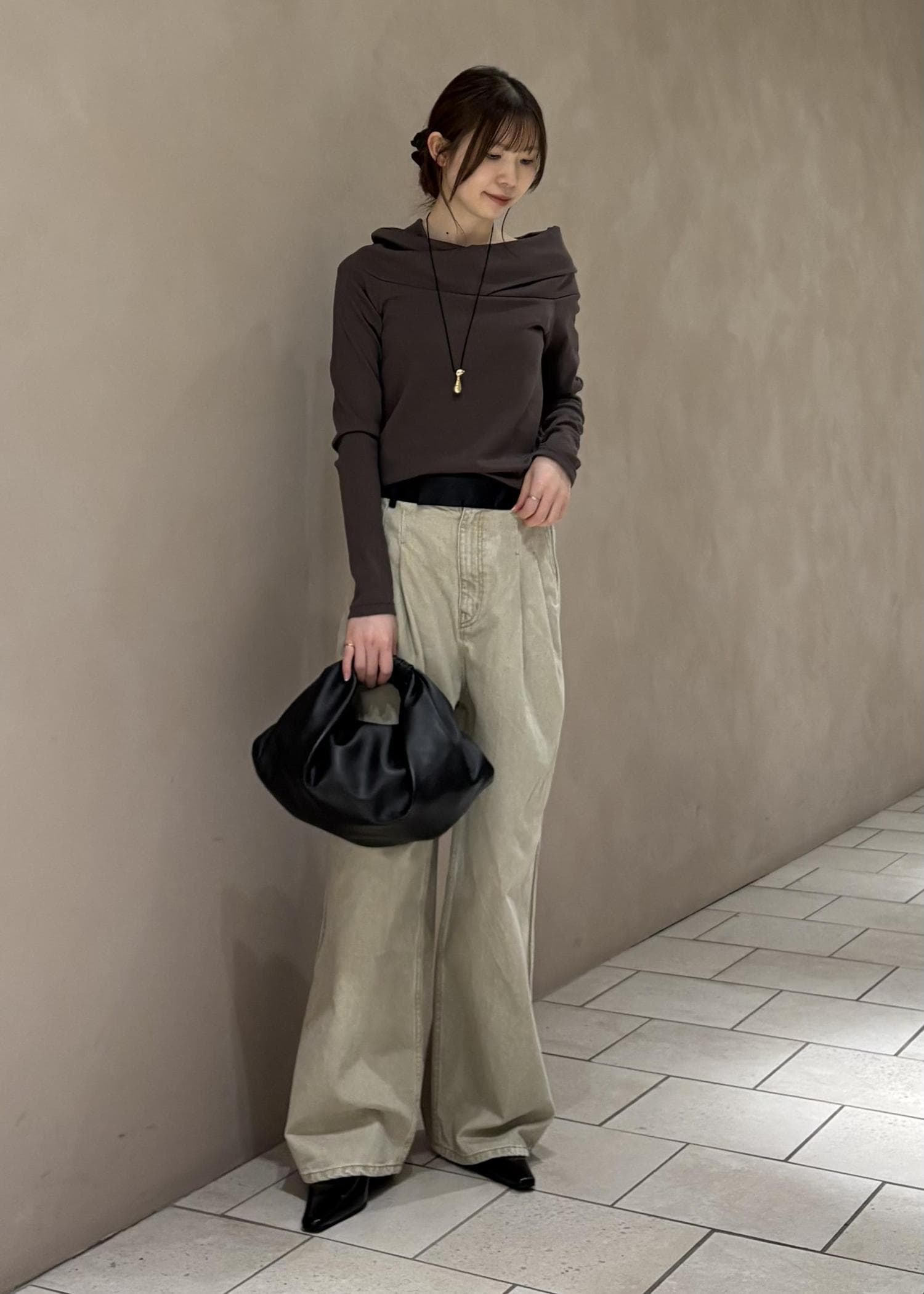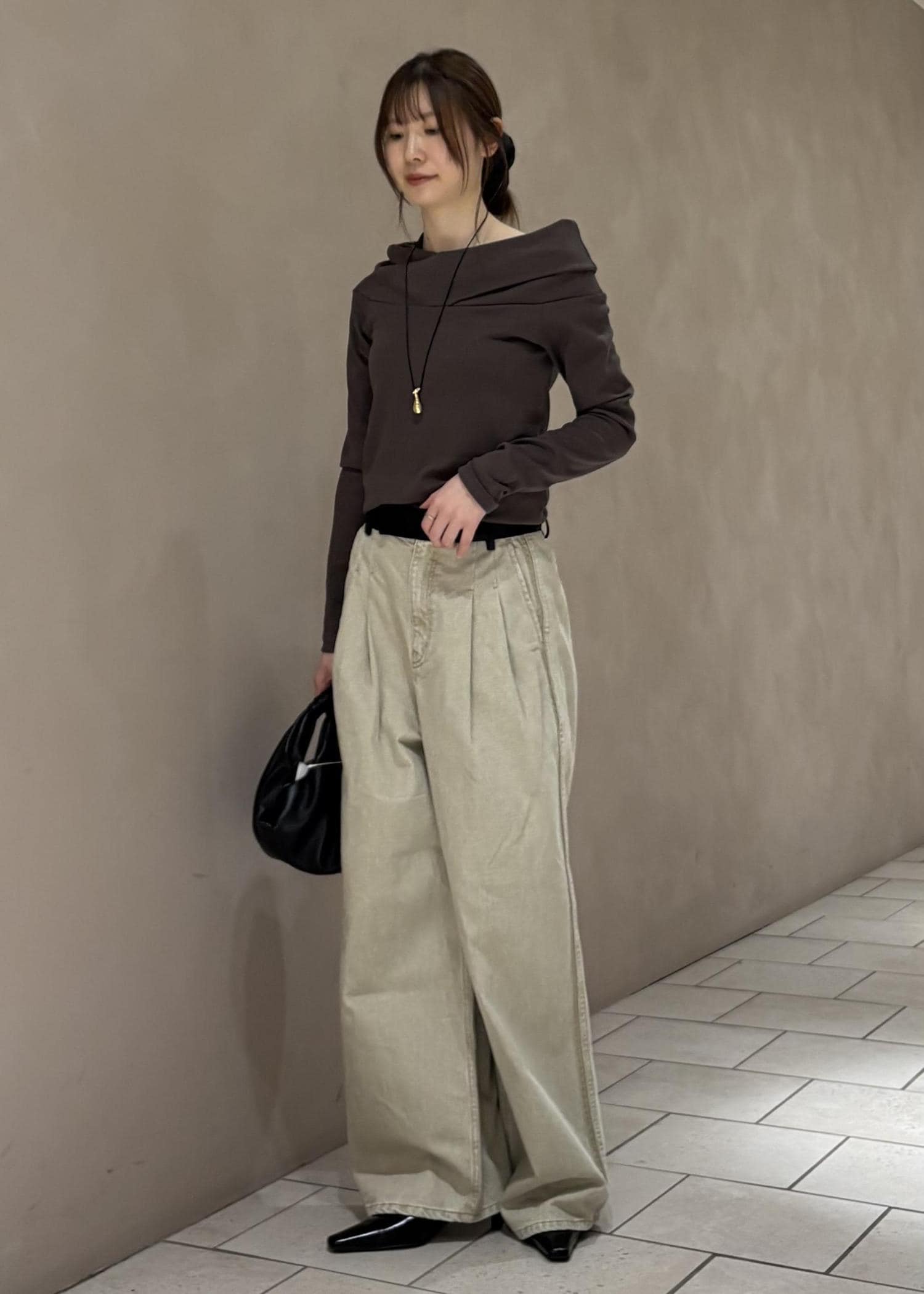 トップスはオフショルにもワンショルにもできちゃいます!いつもと少し違う雰囲気を楽しみつつ取り入れやすいアイテムがお気に入りです^ ^