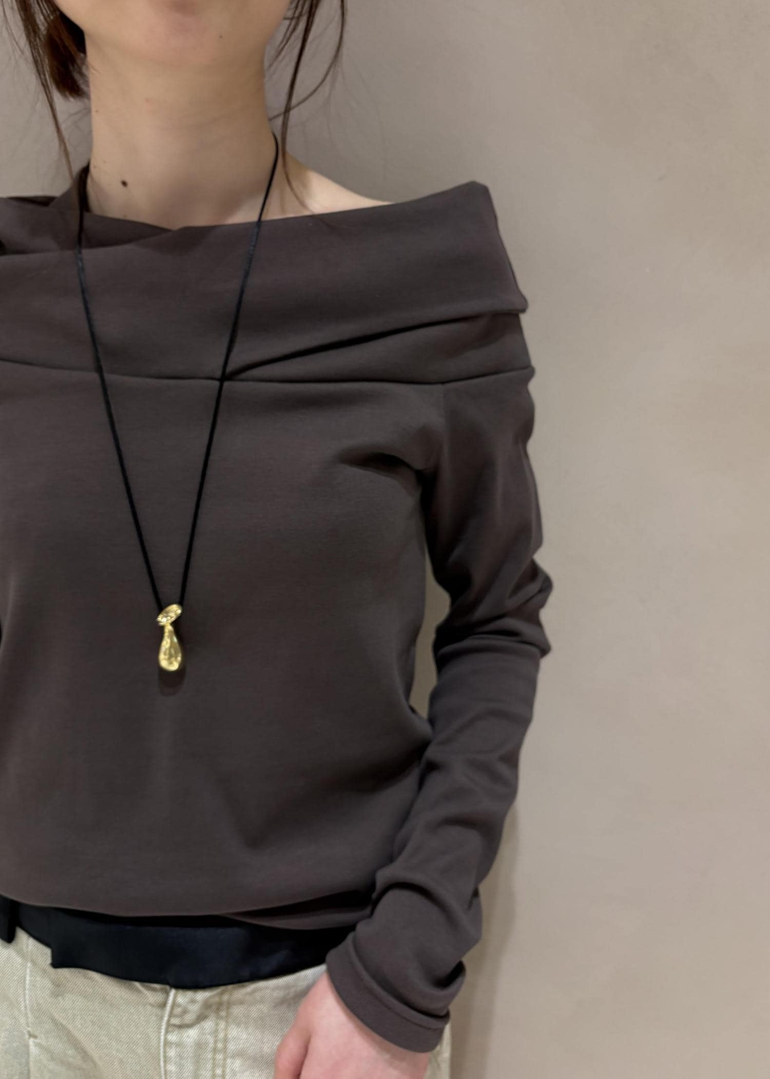 NEW!EMOELLE【EMOELLE】スビンコットンオフショルトップスブラウン / F¥19,800レビュー程よくフィットしますが伸びが良くとっても着心地が良いです!一枚で女性らしく上品になコーディネートにしてくれます♩