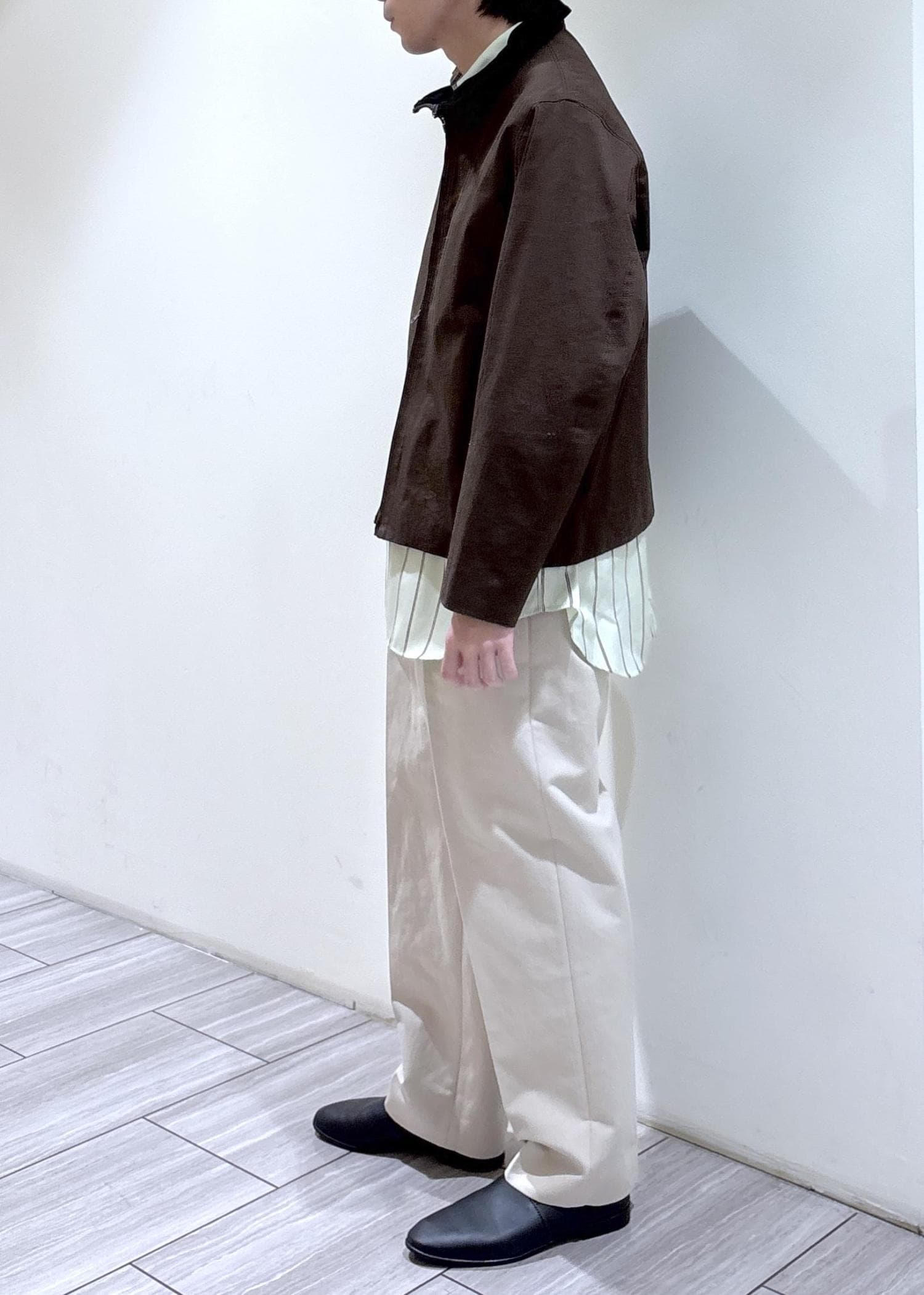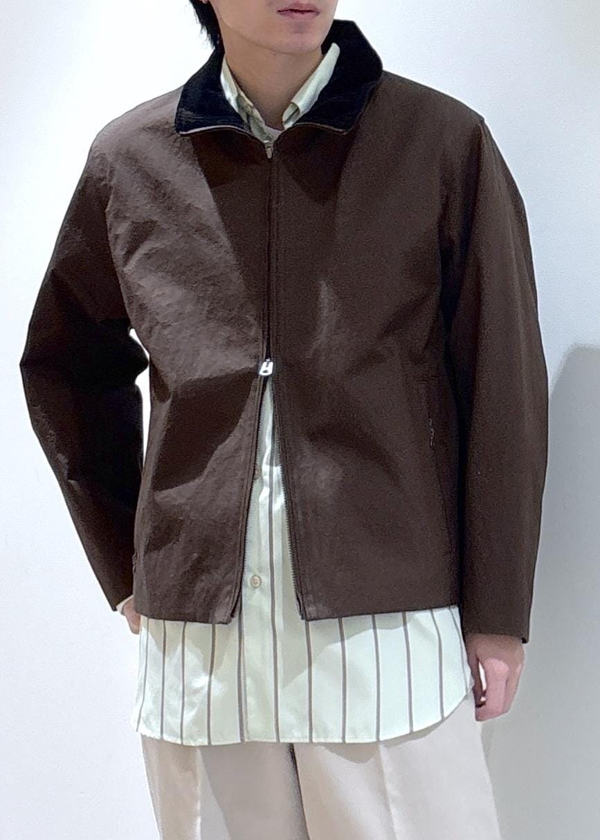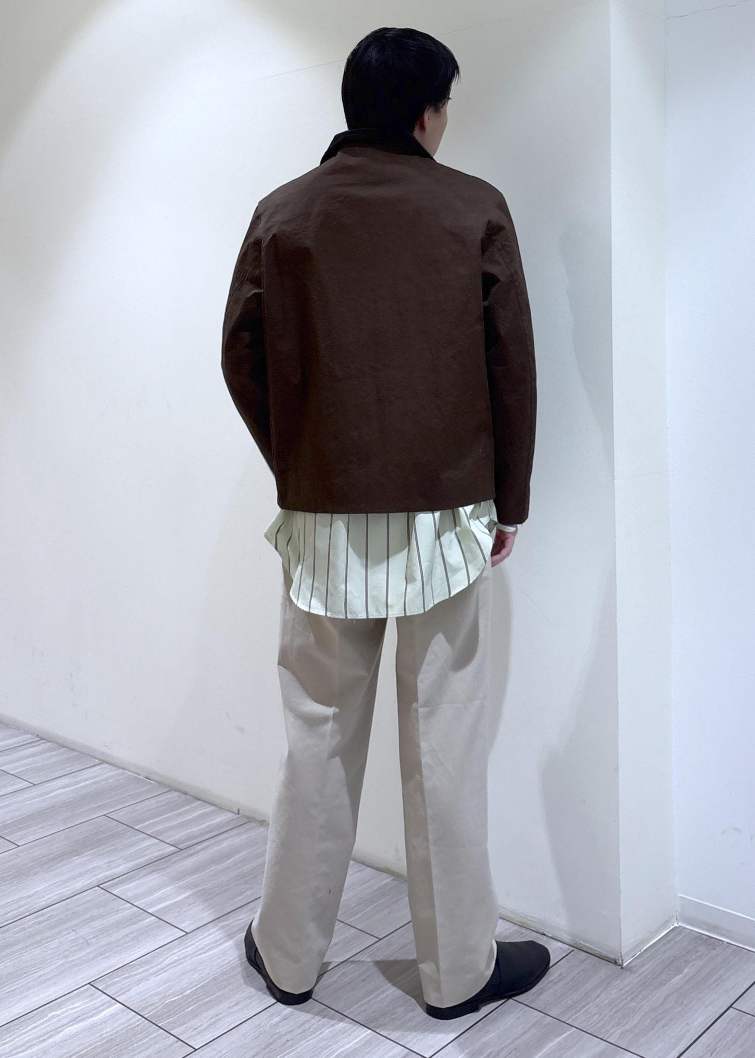 襟元はコーデュロイ素材で襟周りに印象がでるのも◎