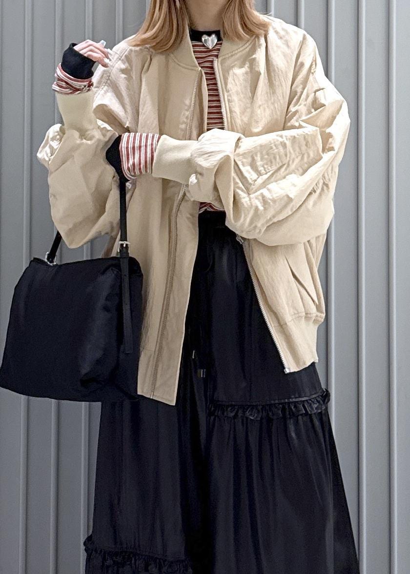 ADAM ET ROPÉ FEMME【PROVOKE for ADAM ET ROPE' 】別注 MA-1ベージュ系 / F¥28,600レビューオーバーサイズで膨らみがありスポーティさと女っぽさがあります!厚手のトップスの上から羽織っていただけるので期間が長く合わせれます!