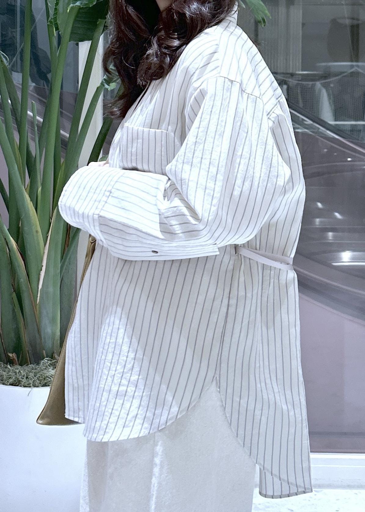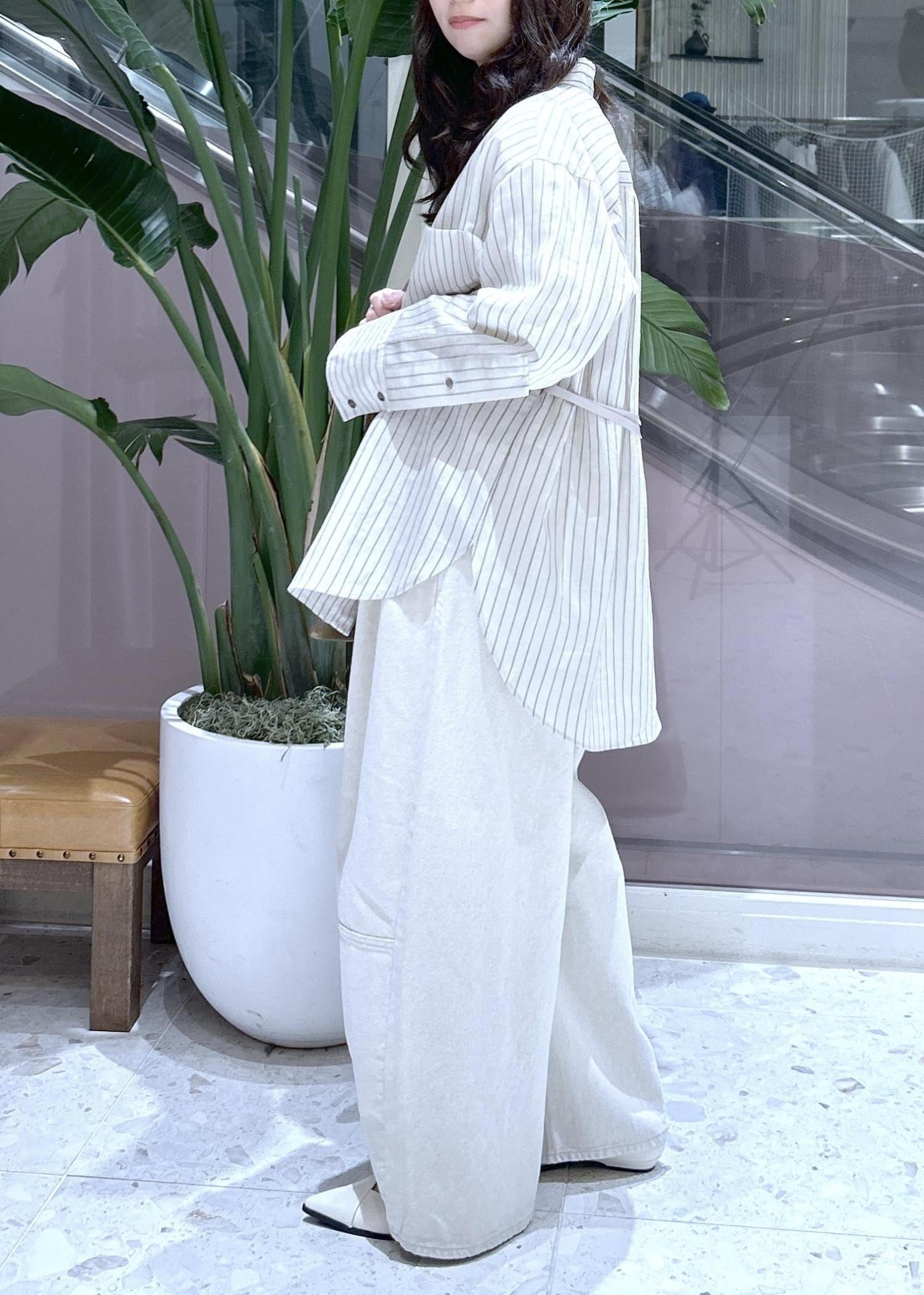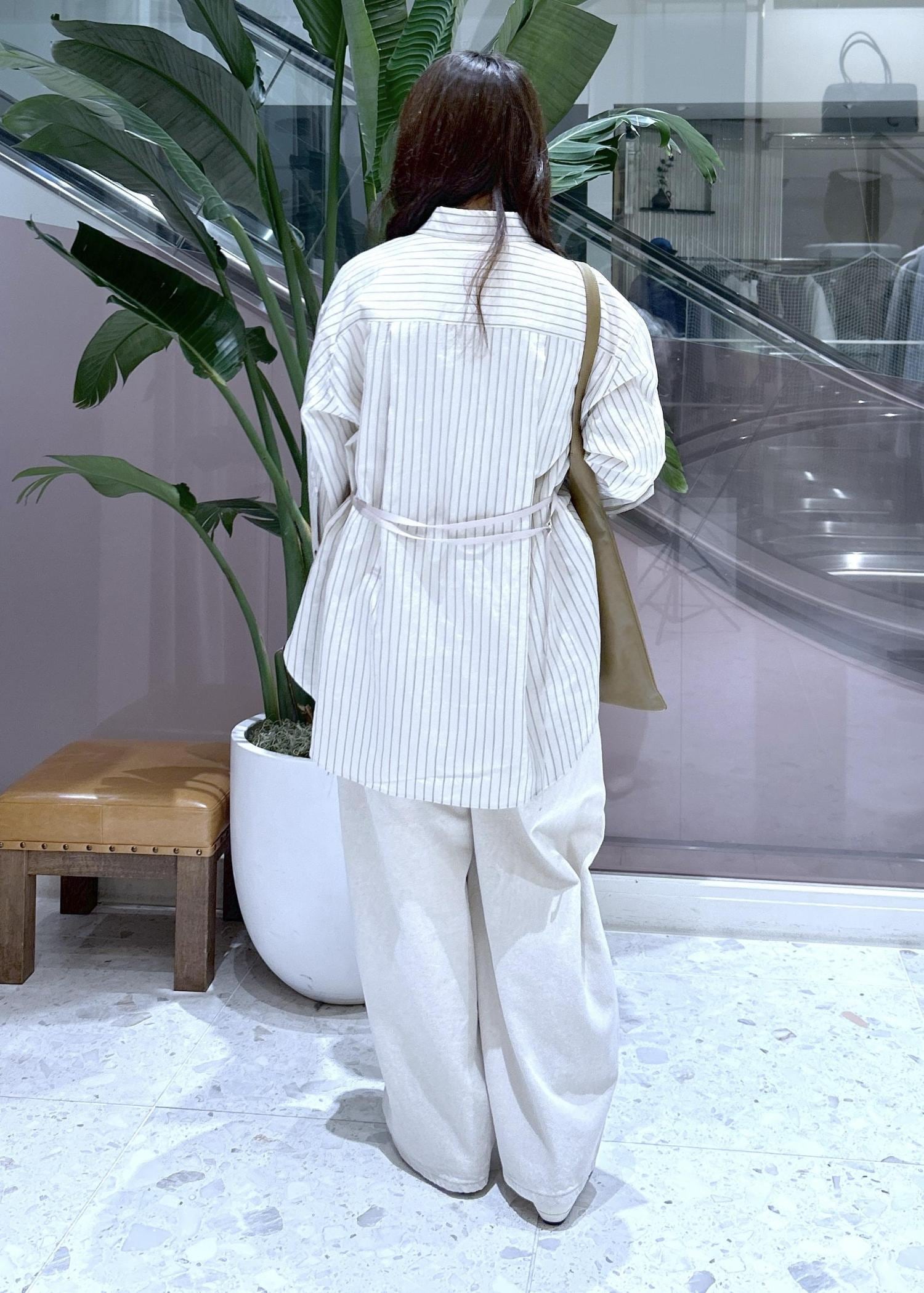 ADAM ET ROPÉ FEMMEバックベルテッドシャツベージュ / F¥18,700レビュー薄手でさらっとした素材感です。シワにもなりにくいので使いやすさも抜群です。程よいゆとりで体型を拾いすぎないのも嬉しいポイントです◎