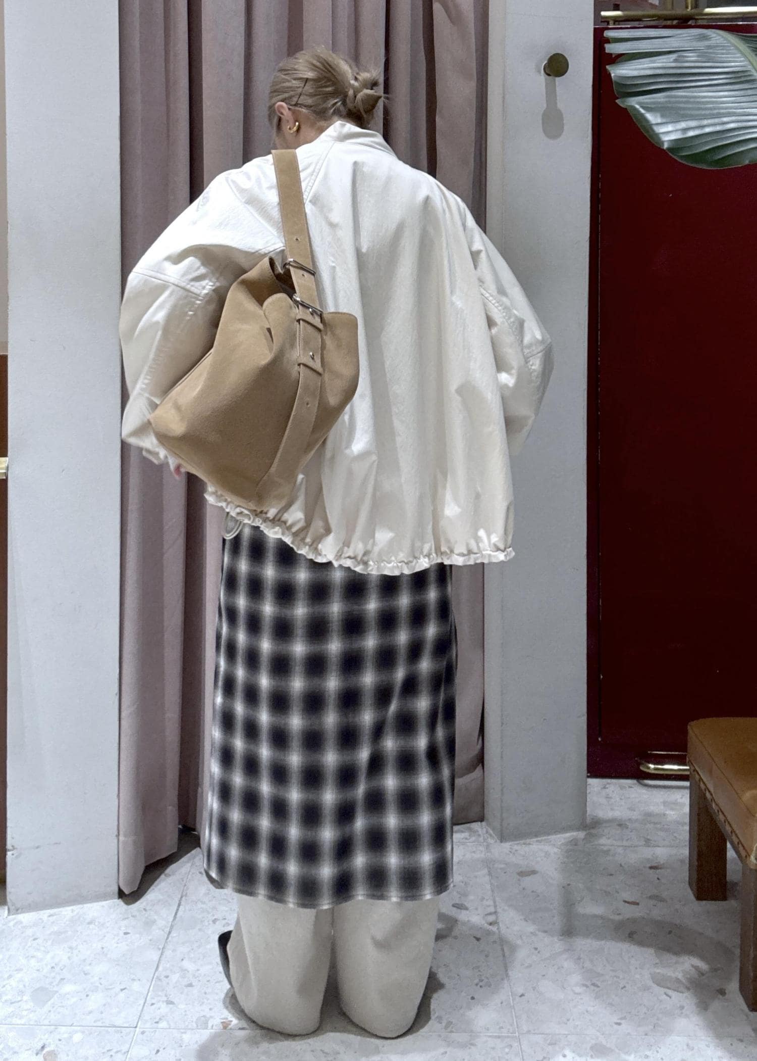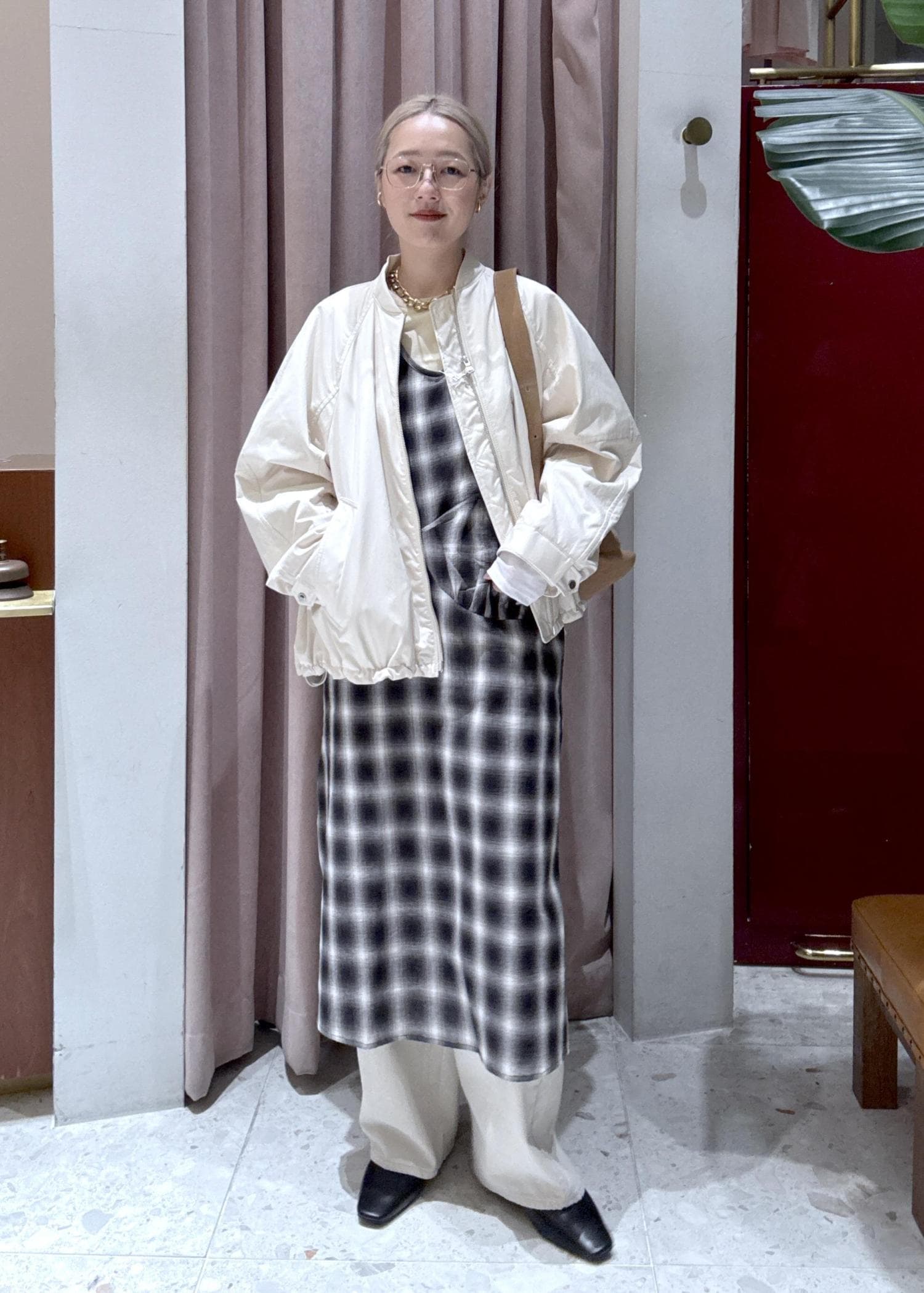 今回はホワイトのワントーンにチェックのワンピースを重ねて春の先取りスタイルにしてみました☺︎