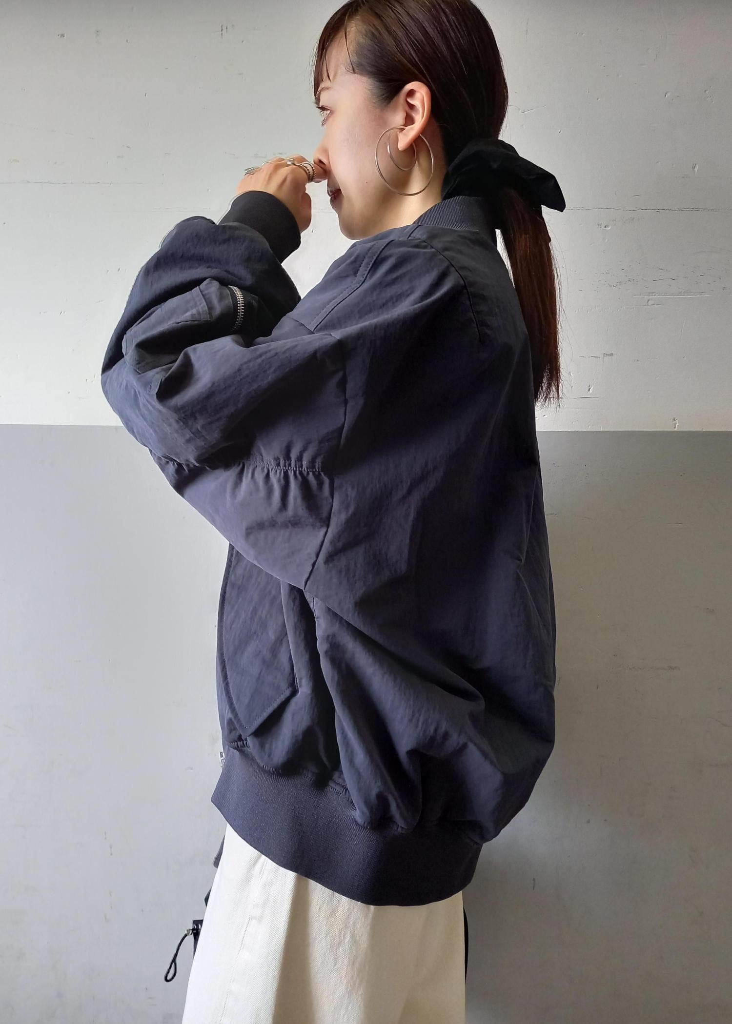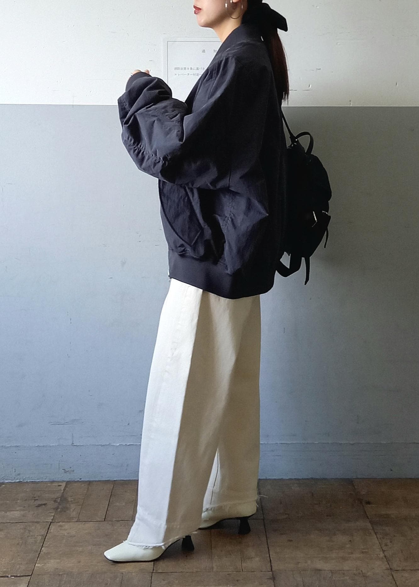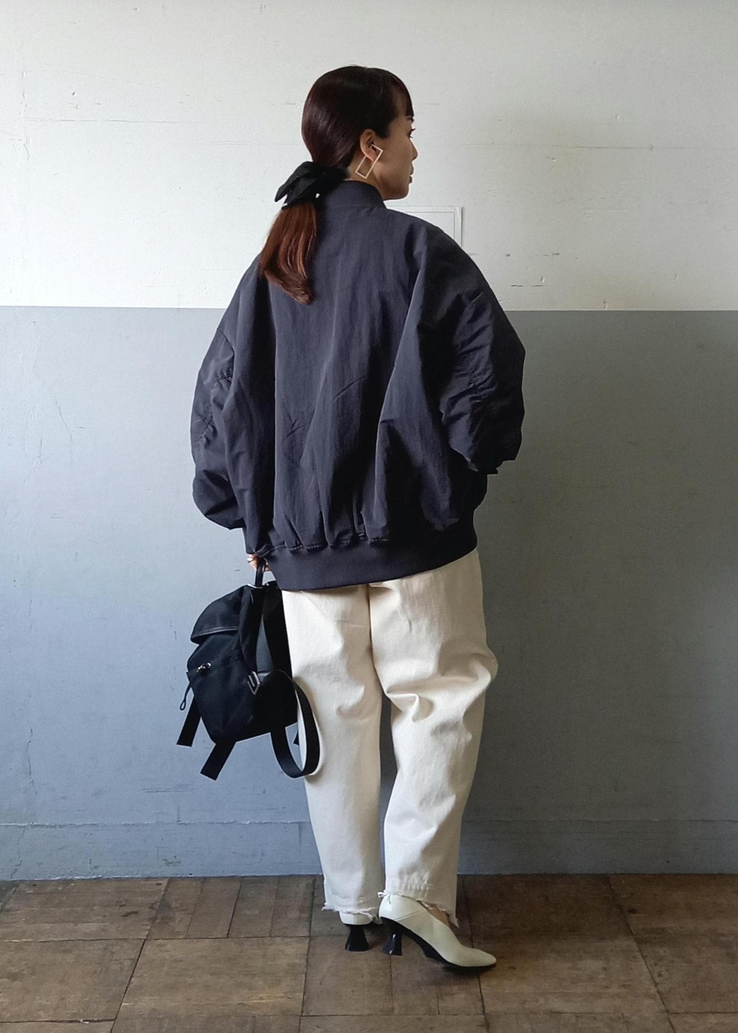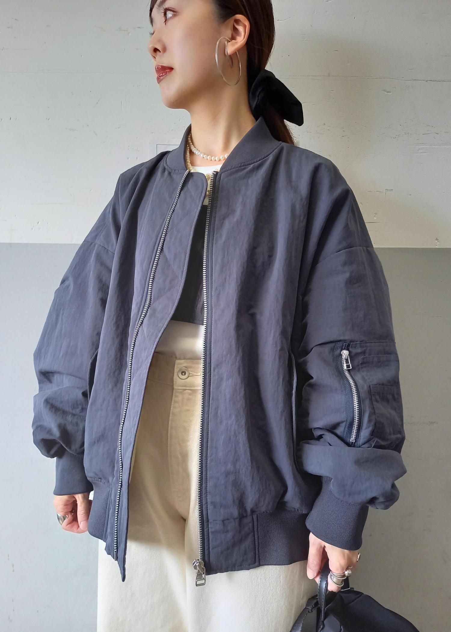 オーバーサイズのMA-1なので、レディライクなアイテムと合わせるのもオススメです◎