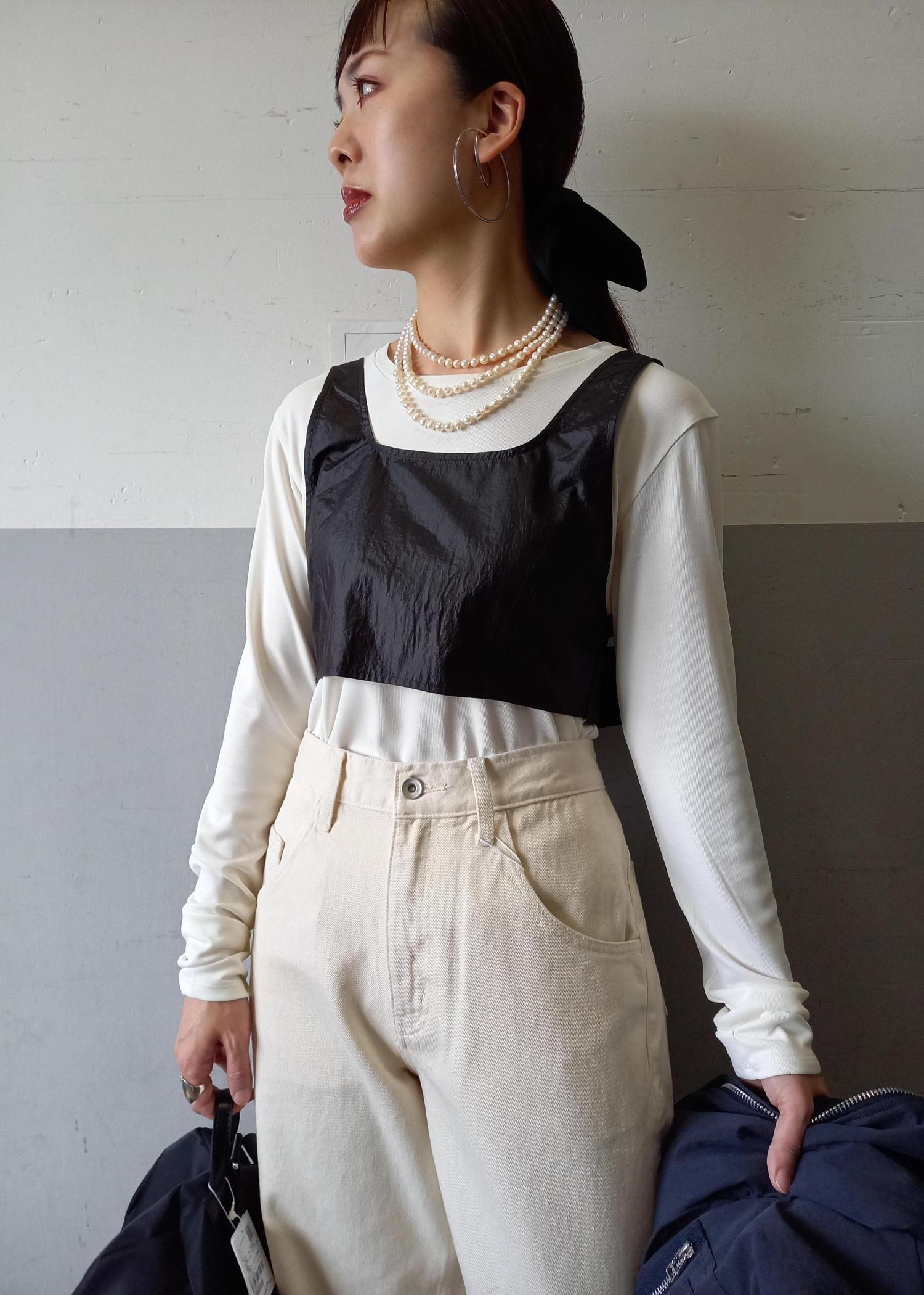 ADAM ET ROPÉ FEMMEリボンタンクコンビロンTホワイト系 / F¥18,150レビューテロンととろみのあるロンTEEと、シャカシャカとしたビスチェがセットになっている一着。
