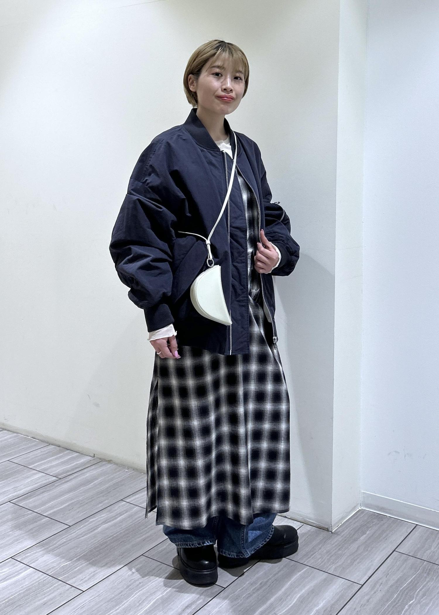 オーバーサイズですが小柄でも程良いバランスで着用できます◎