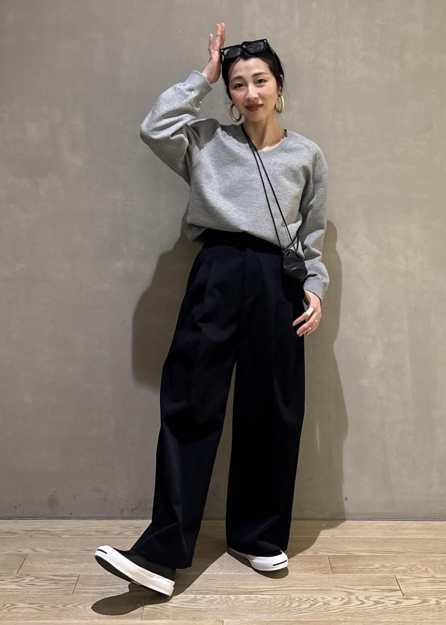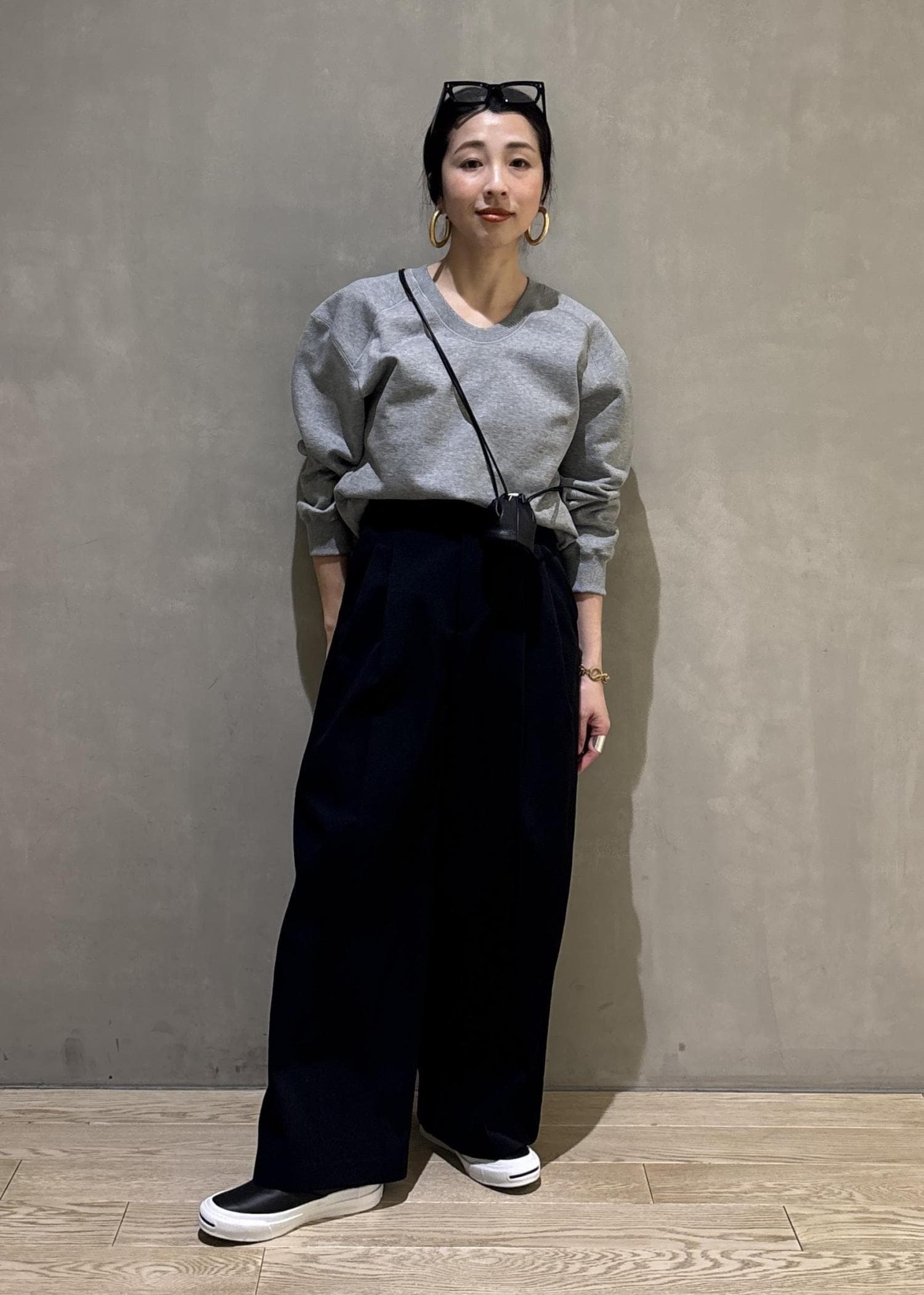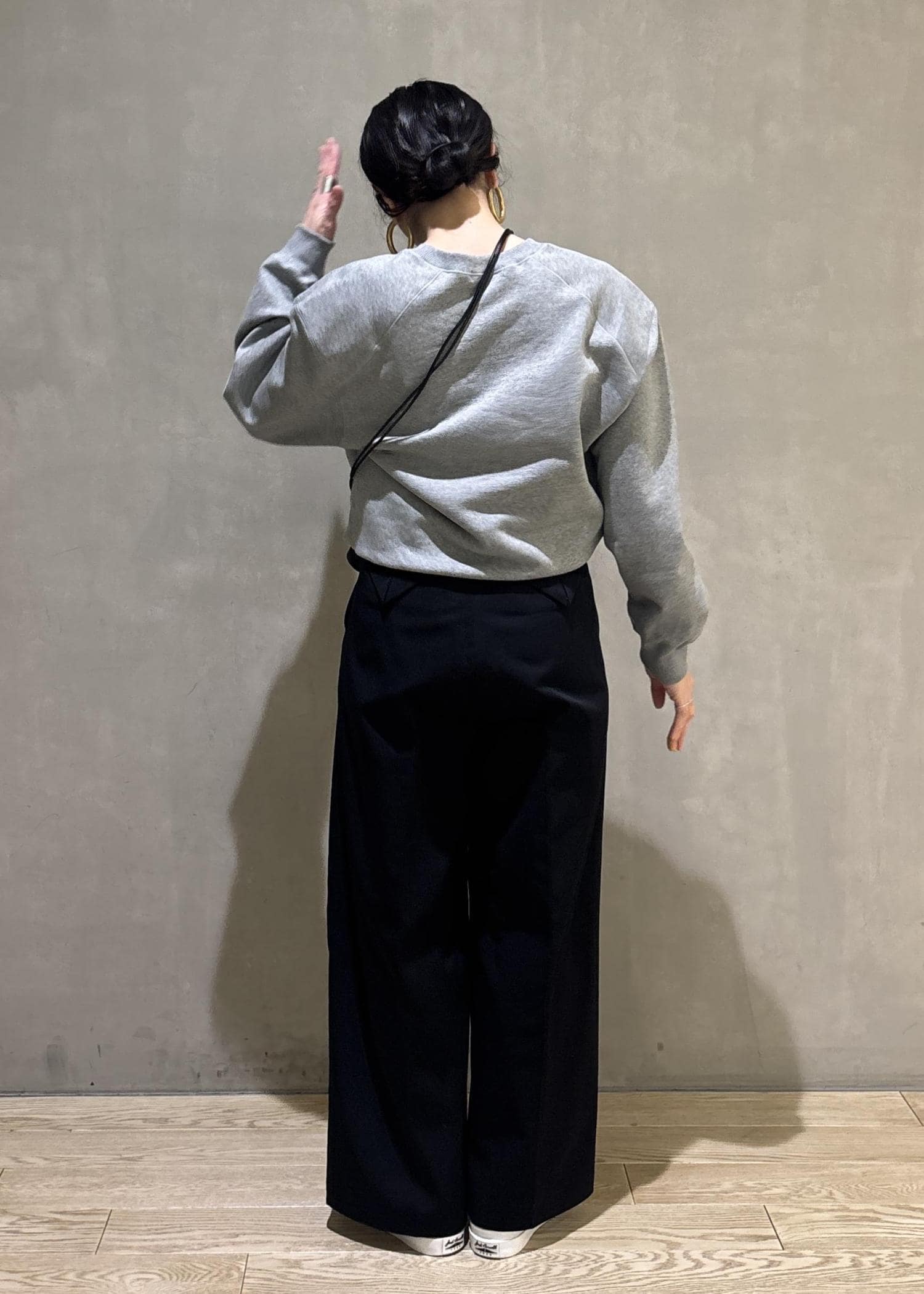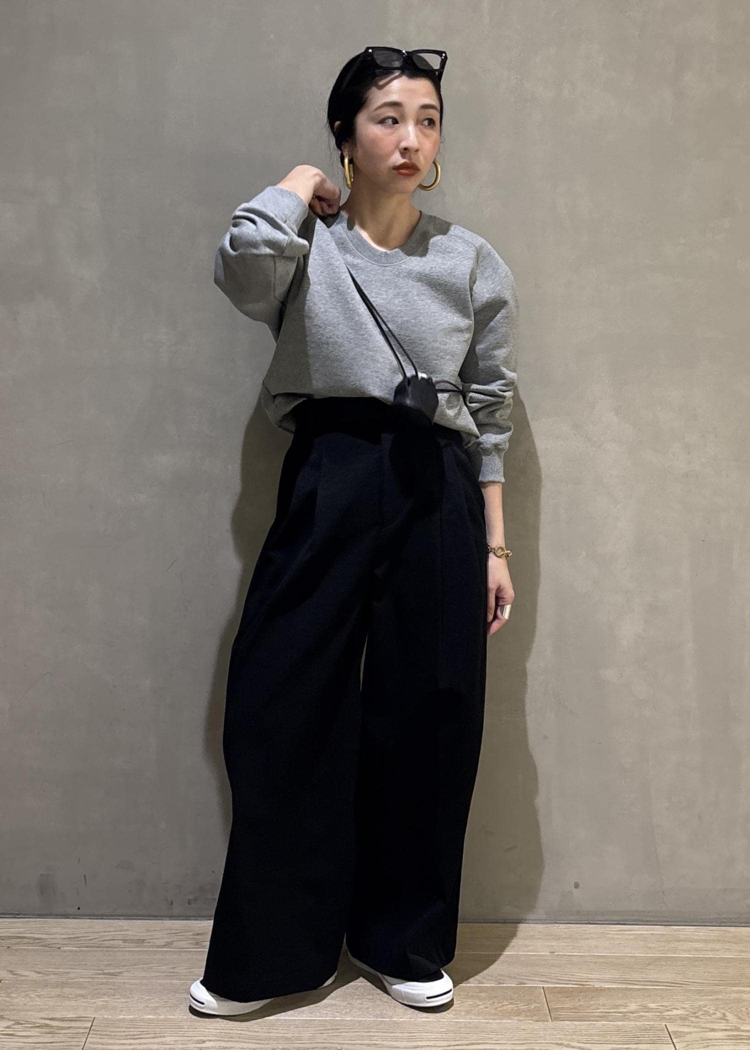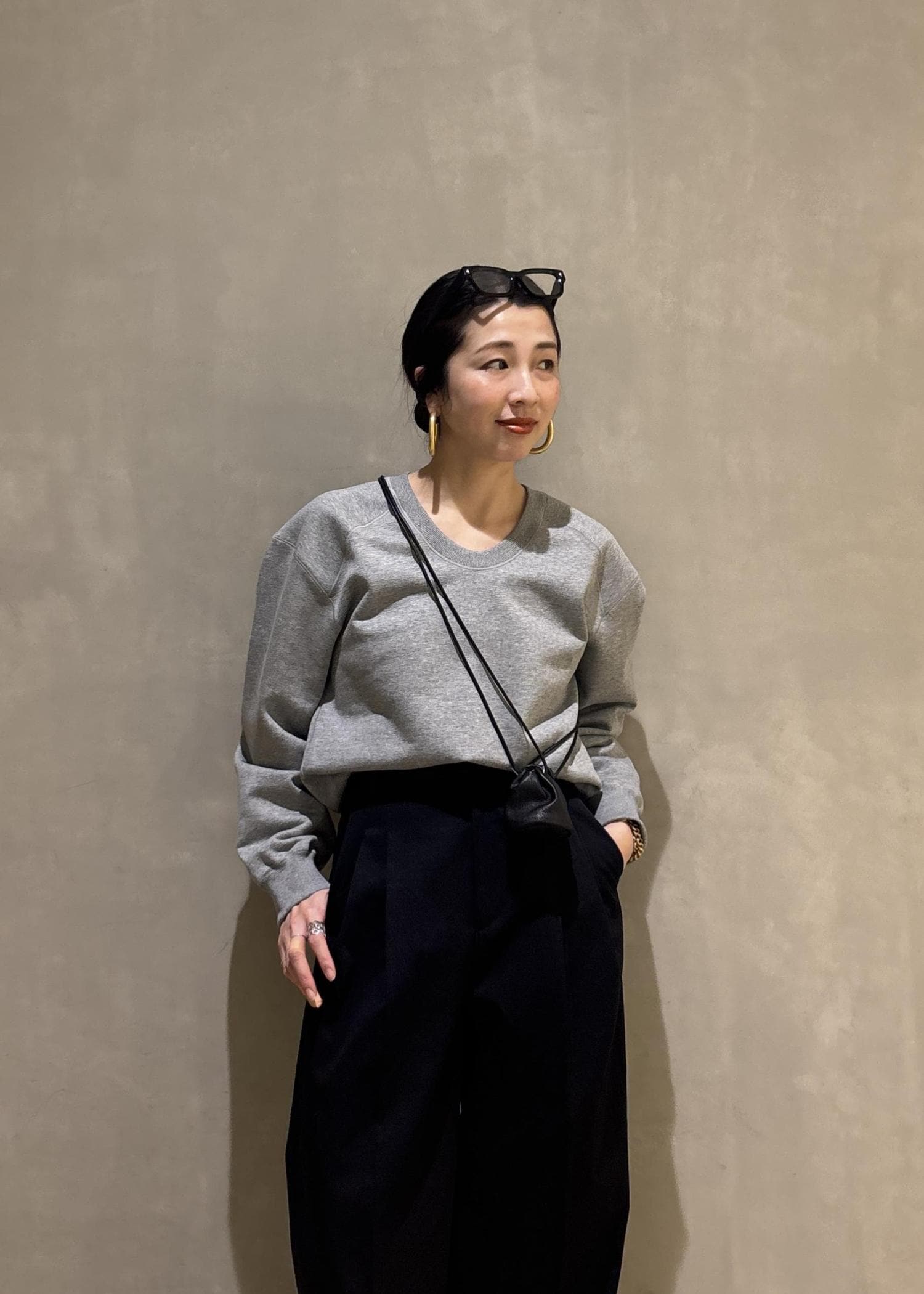 首元のデコルテラインも綺麗に見せてくれるこちらのスウェット。カジュアルなアイテムでありながら、首元や肩周りのフォルムが少しモードな雰囲気なので、とってもカッコよい雰囲気も醸し出してくれるんです。