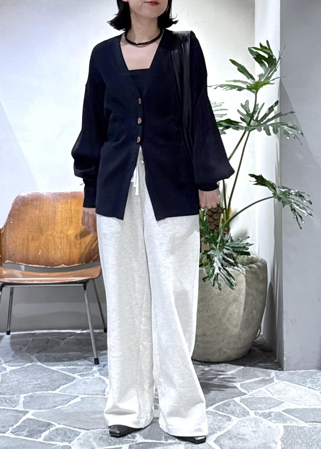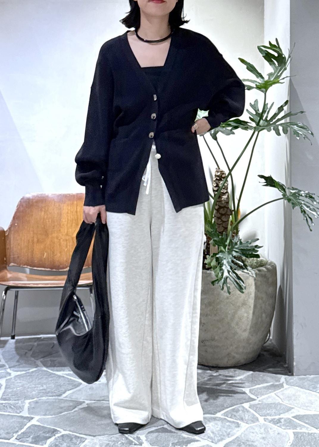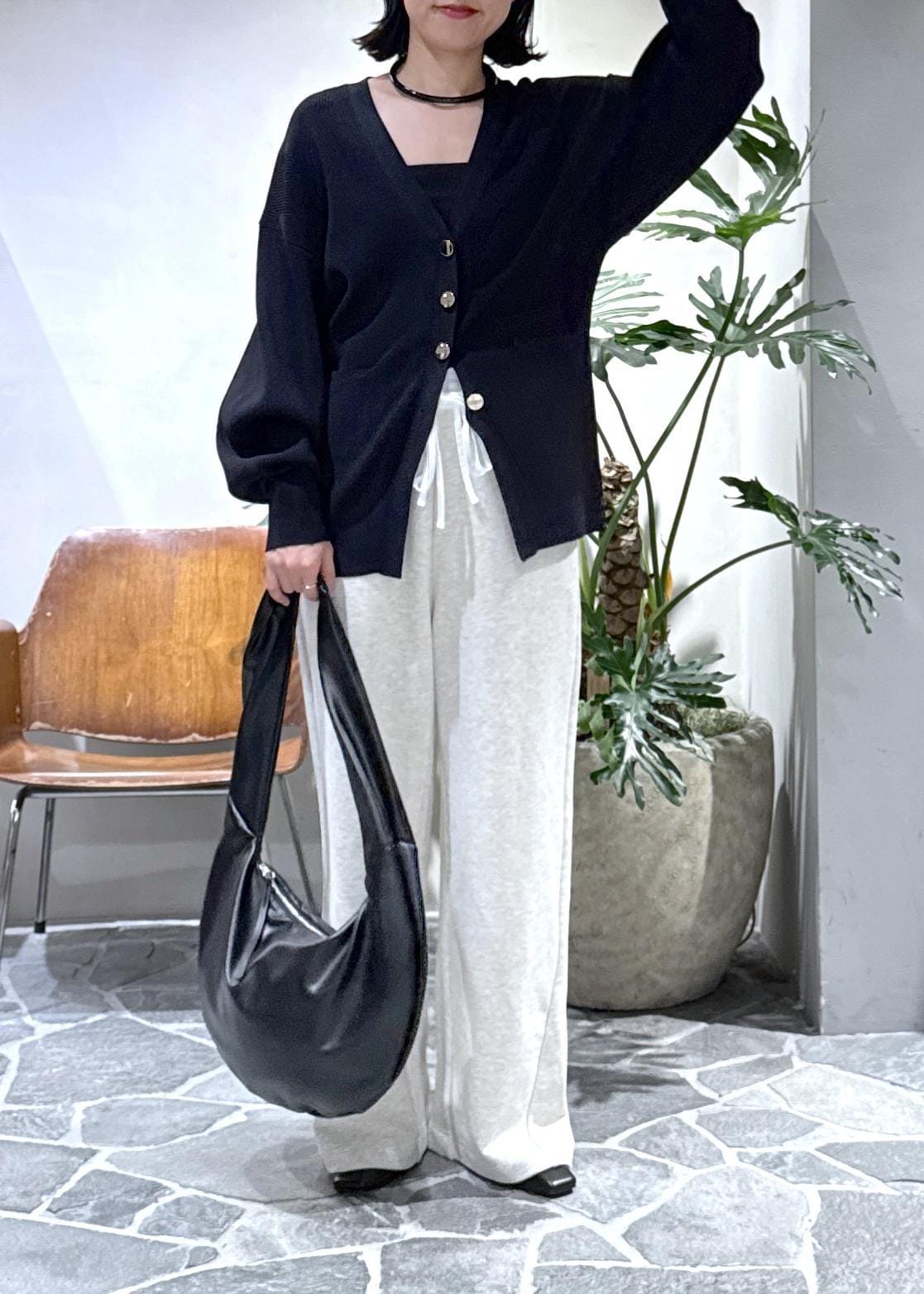 キレイめのカーディガンとヒールで合わせて大人カジュアルなリラックスコーデにしました。