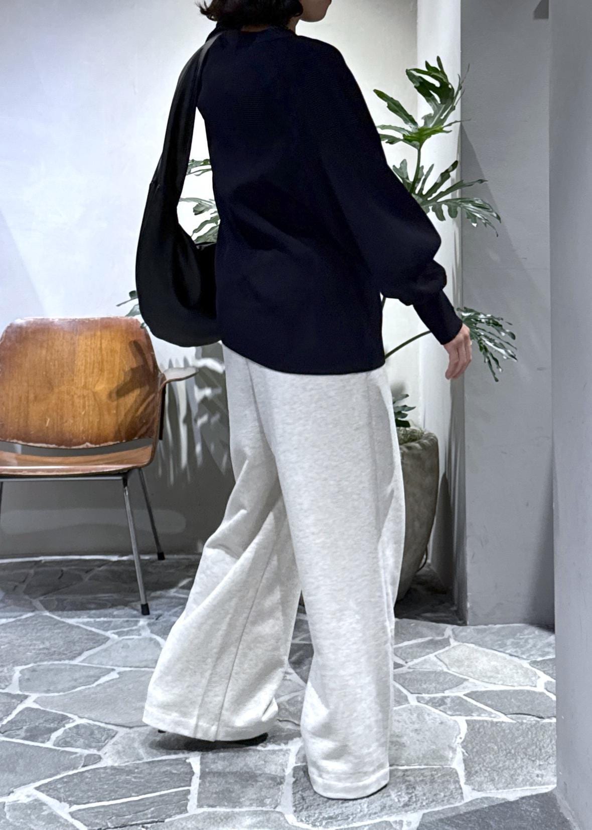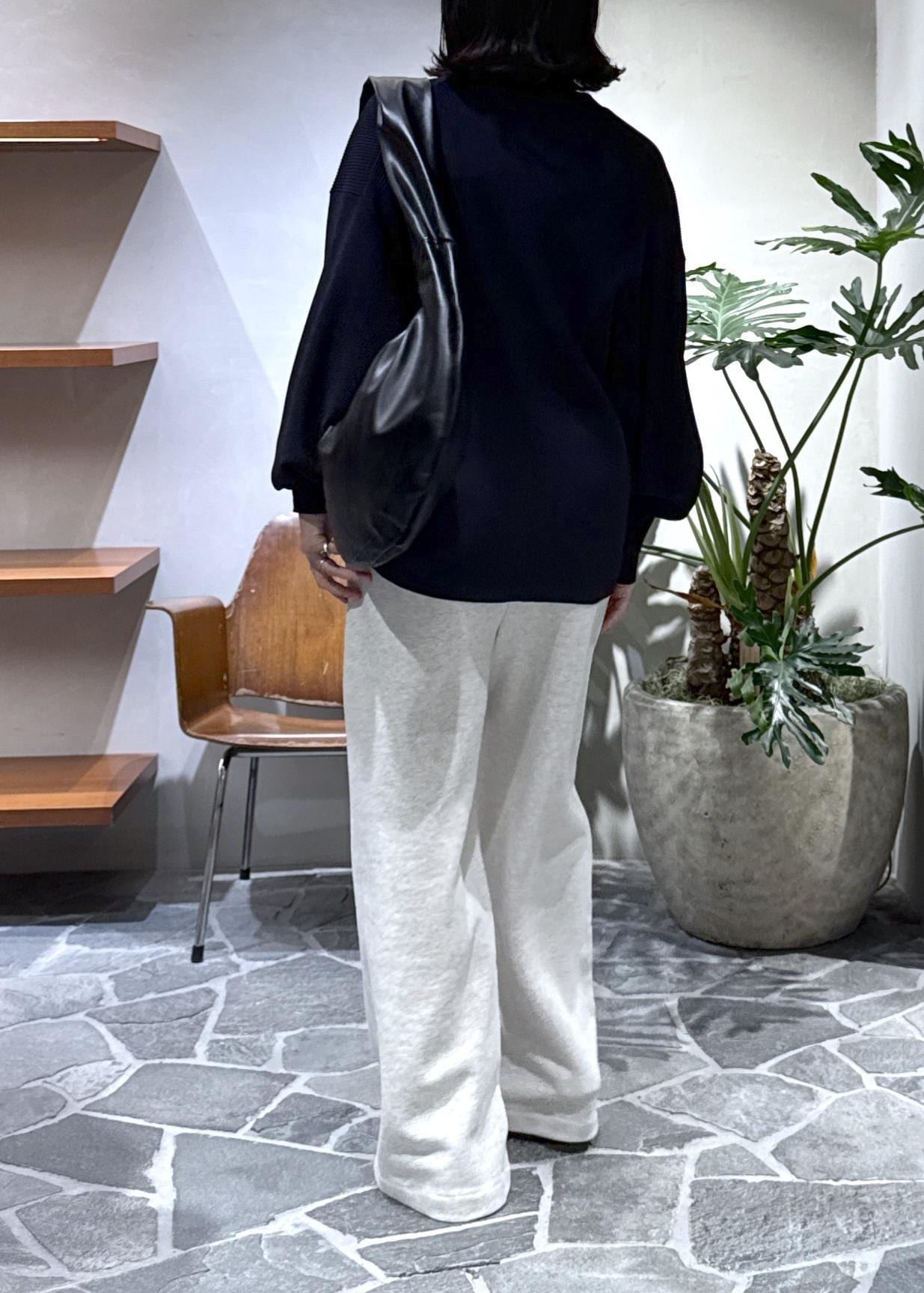 ワイドシルエットのスウェットで楽ちんコーデに。