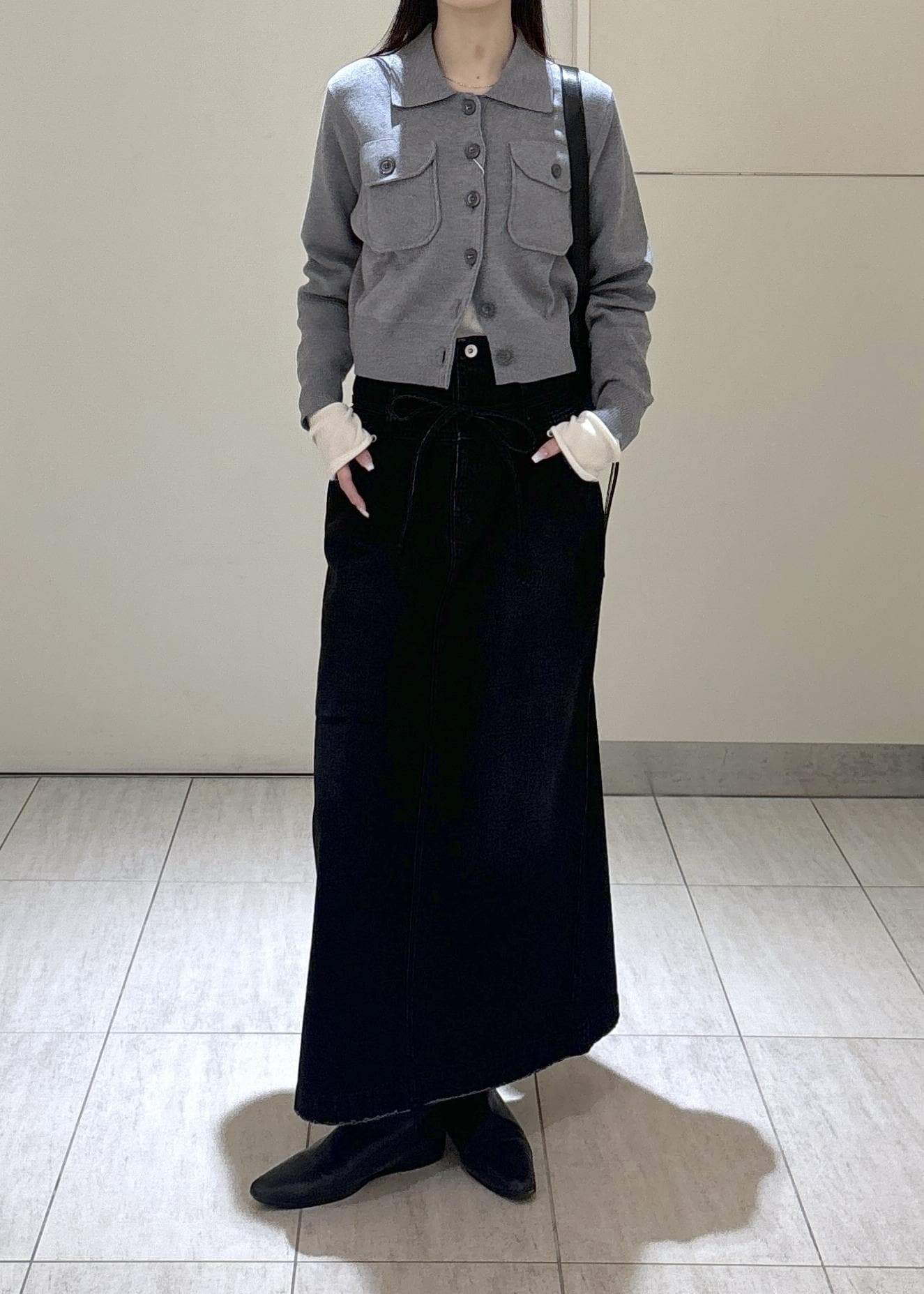 ADAM ET ROPÉ FEMMEローウエストデニムスカートブラック / 36¥9,350レビューウエストが少しゆったり目のサイズ感で、ローウエストに落として着用できます◎