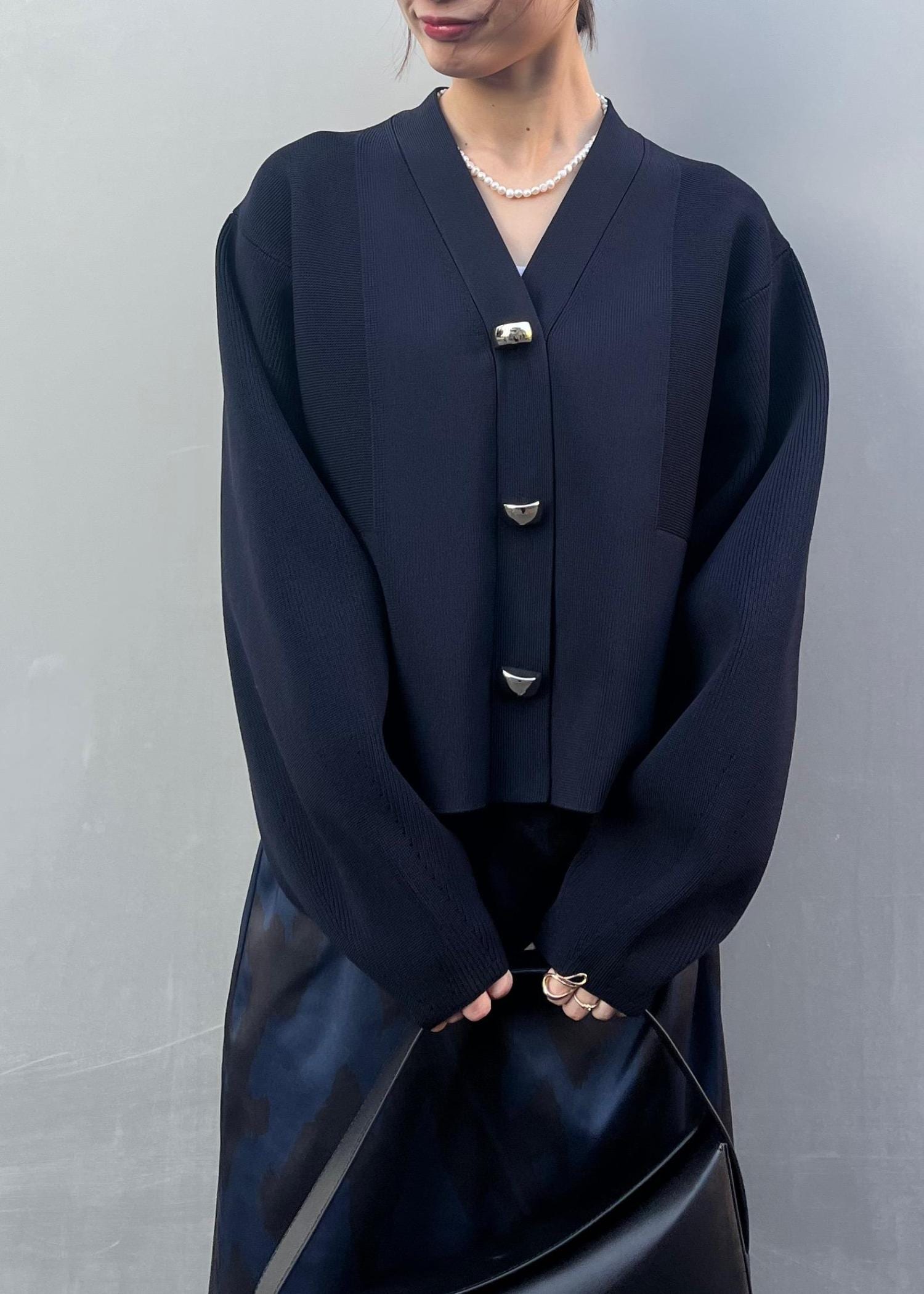 私は深すぎないけど首元はスッキリ見せられるVネックを選んでみました。シンプルだけどゴールドのボタンがアクセントになりとても高見えします♡