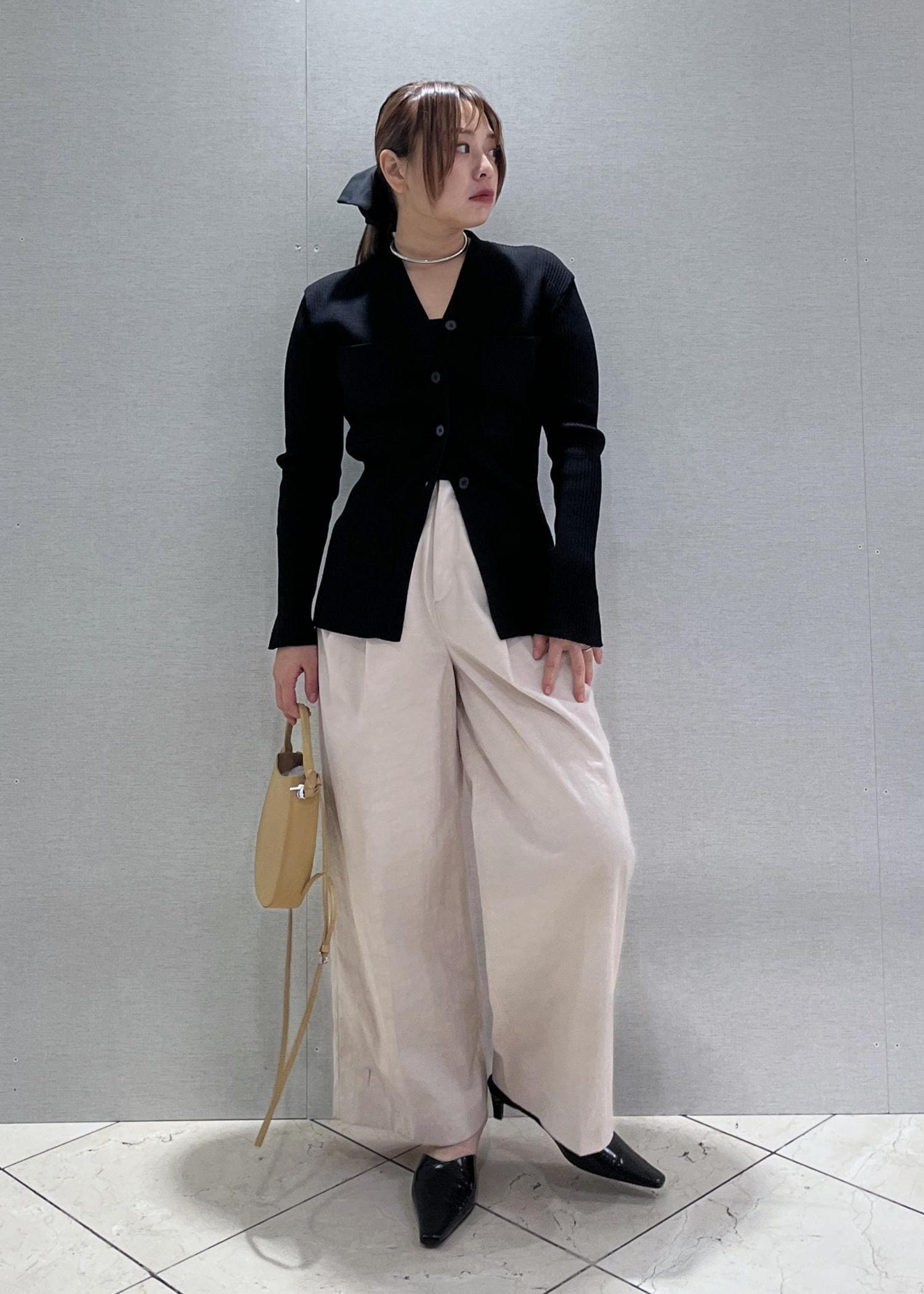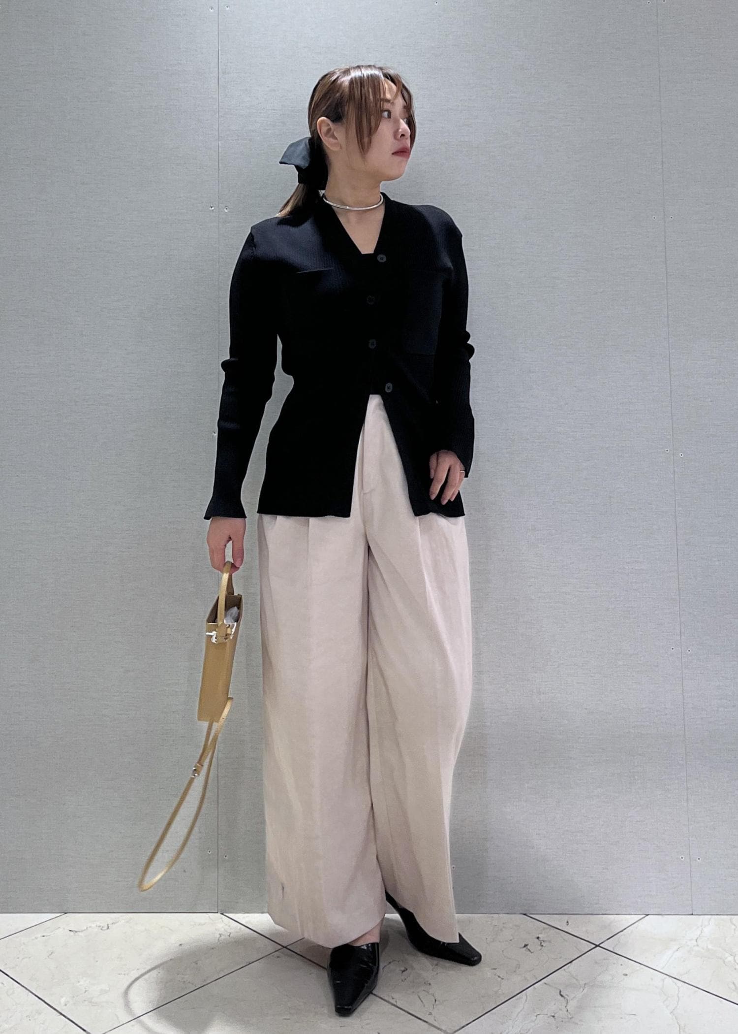 カーディガンは着痩せ感があり、パンツは腰回りの気になる部分をしっかりカバーしてくれる綺麗なラインで大好きなシリーズです♡