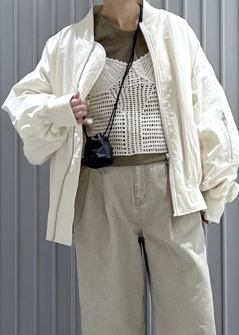 ADAM ET ROPÉ FEMME【PROVOKE for ADAM ET ROPE' 】別注 MA-1オフホワイト / F¥28,600レビューオーバーサイズで膨らみがありスポーティさと女っぽさがあります!厚手のトップスの上から羽織っていただけるので期間が長く合わせれます!