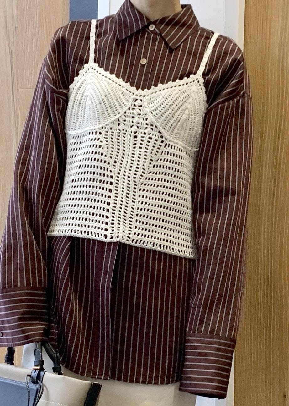 ADAM ET ROPÉ FEMMEバックベルテッドシャツダークブラウン / F¥18,700レビューゆったりオーバーサイズですが、リボンが付いていてスッキリ着用できます。