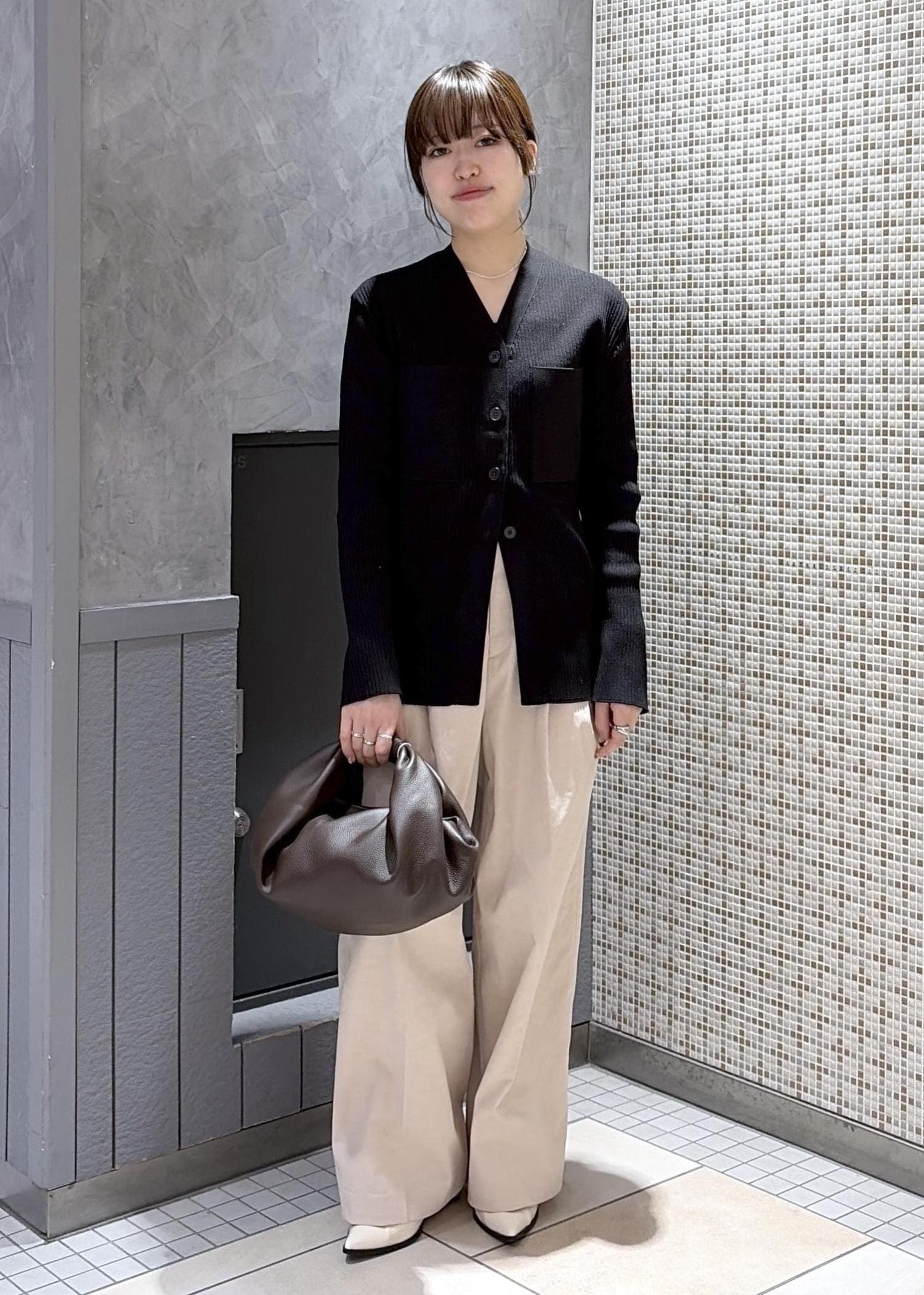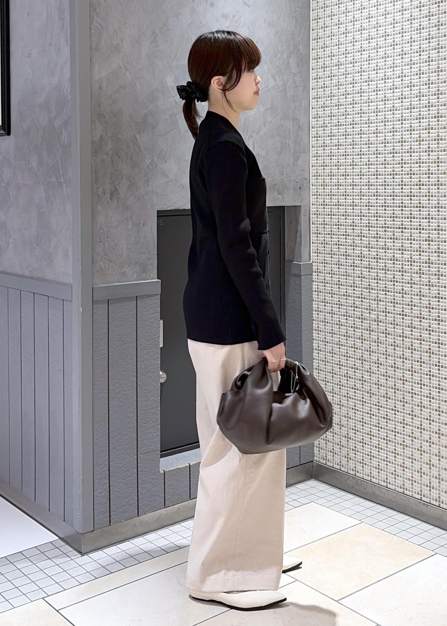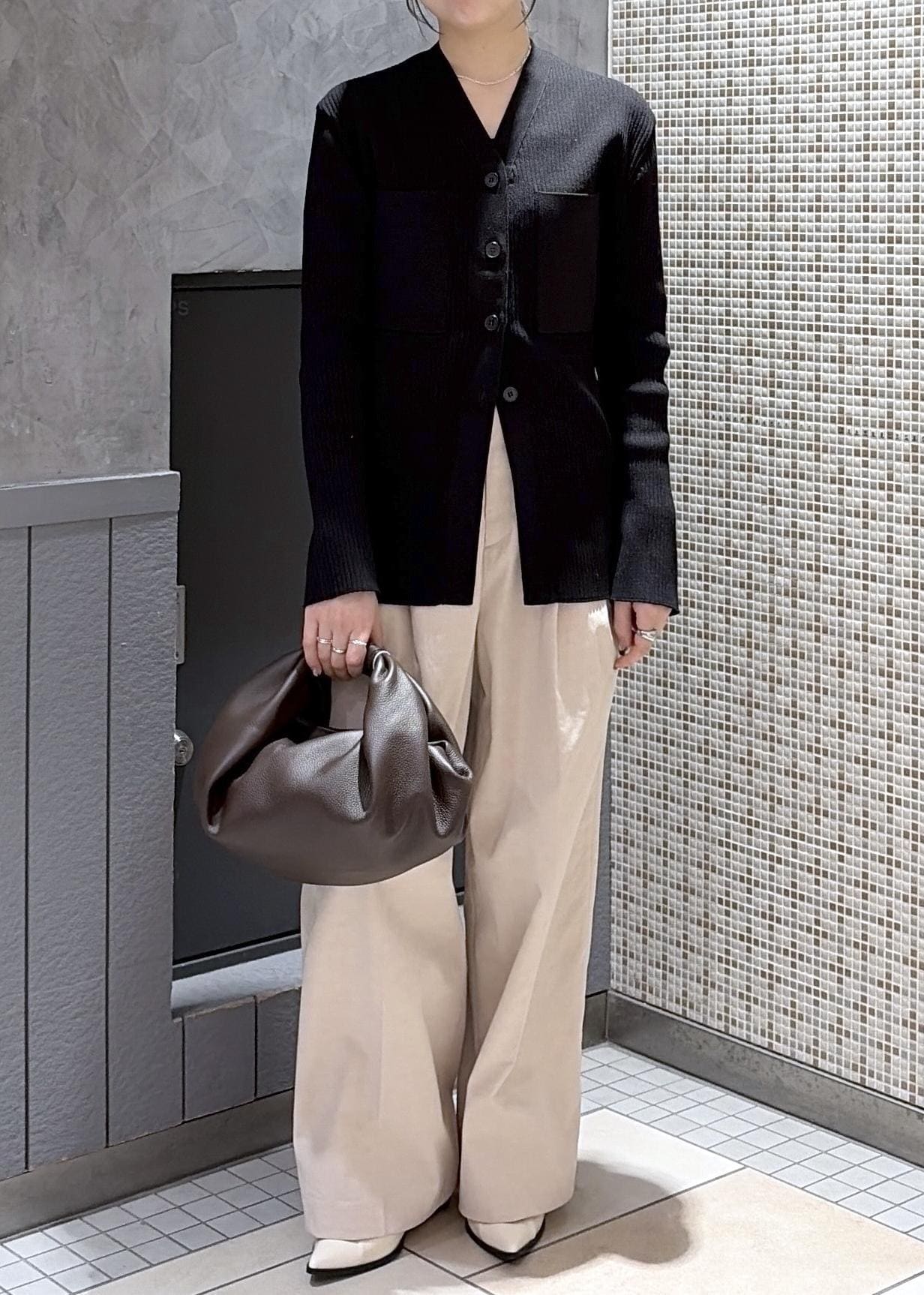 今回はENOELLEの新作、ポケットリブカーディガンを使ったコーディネート。昨年も人気だったアイテムです⭐︎