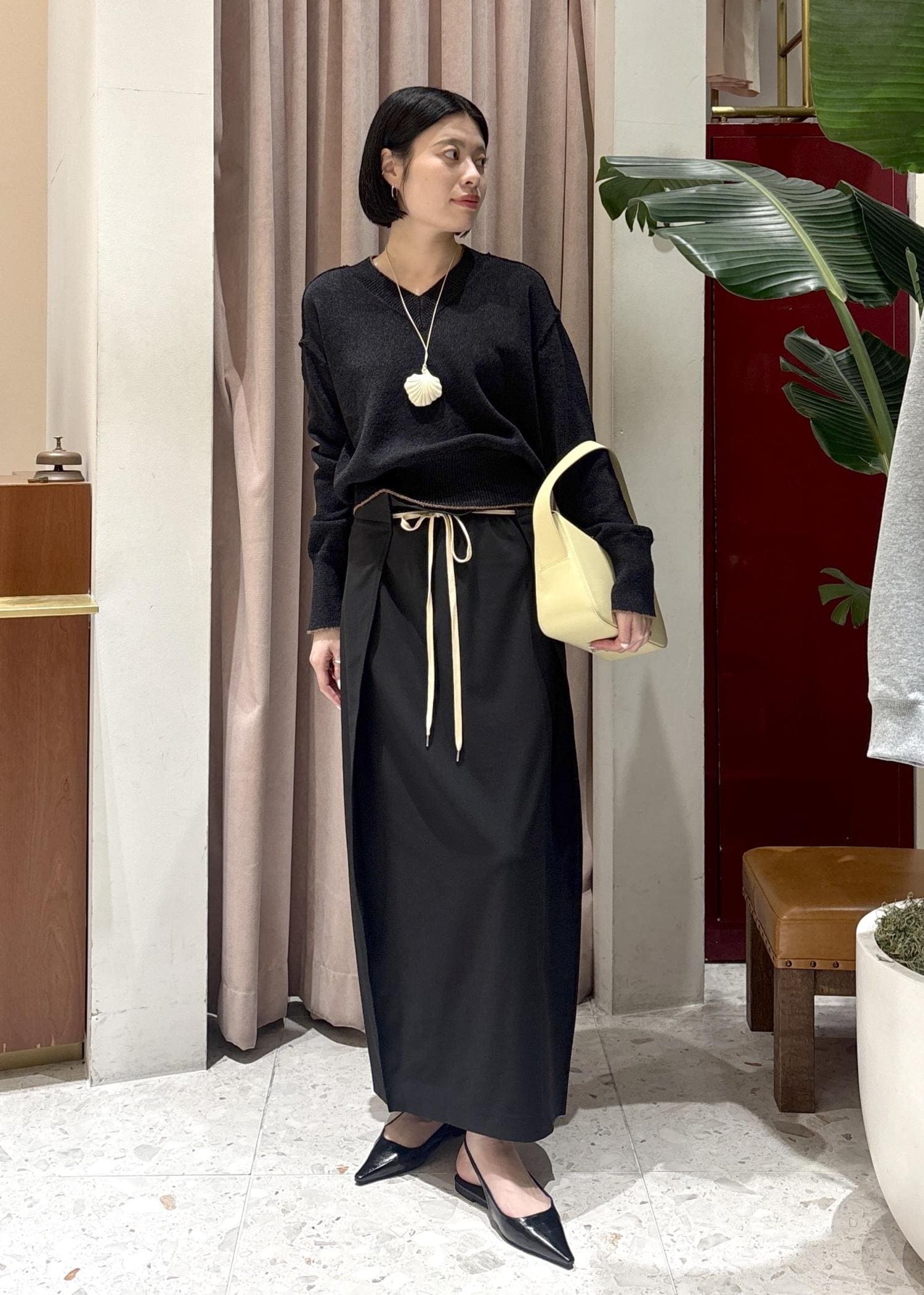 バサっと羽織るだけで様になるジャケットに、スカートは巻きタイプで、色々な着こなしが叶います。