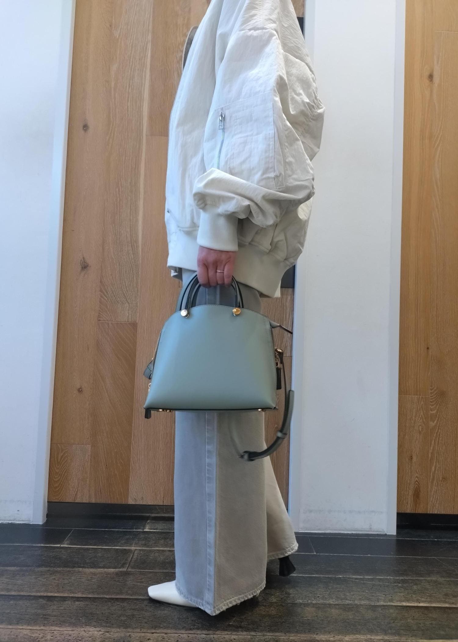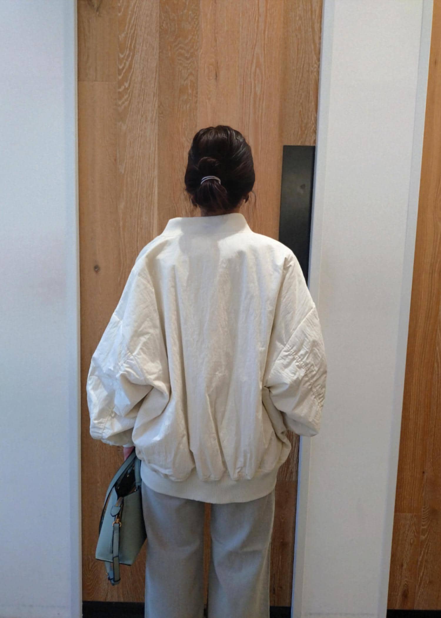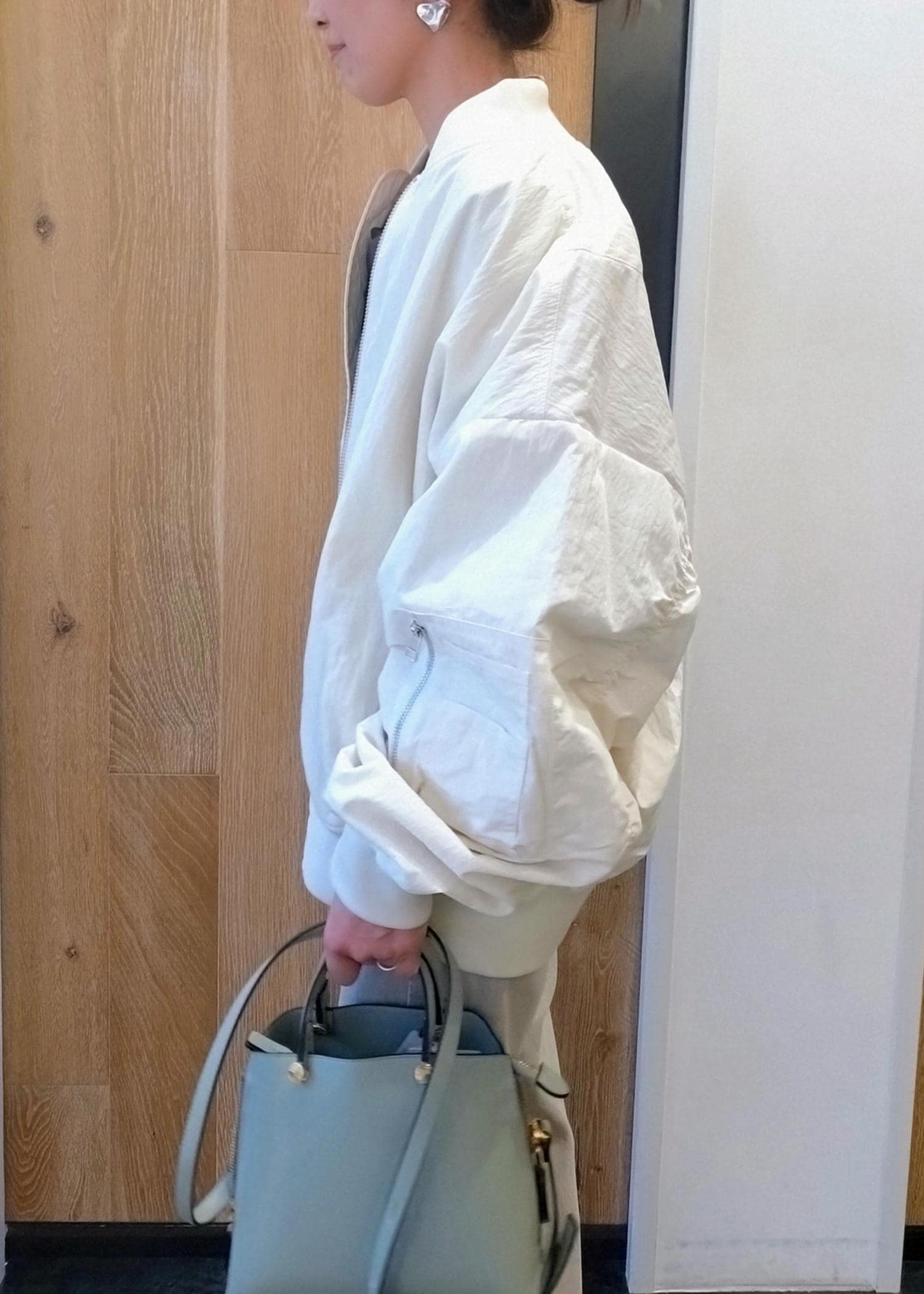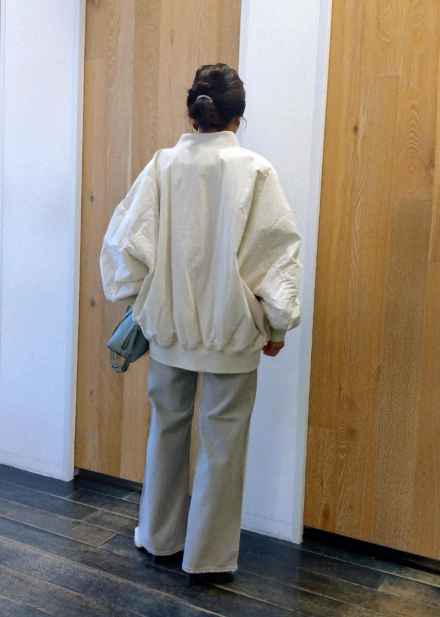 オーバーサイズでゆったりとしていているので、中に着込めるサイズ感です。