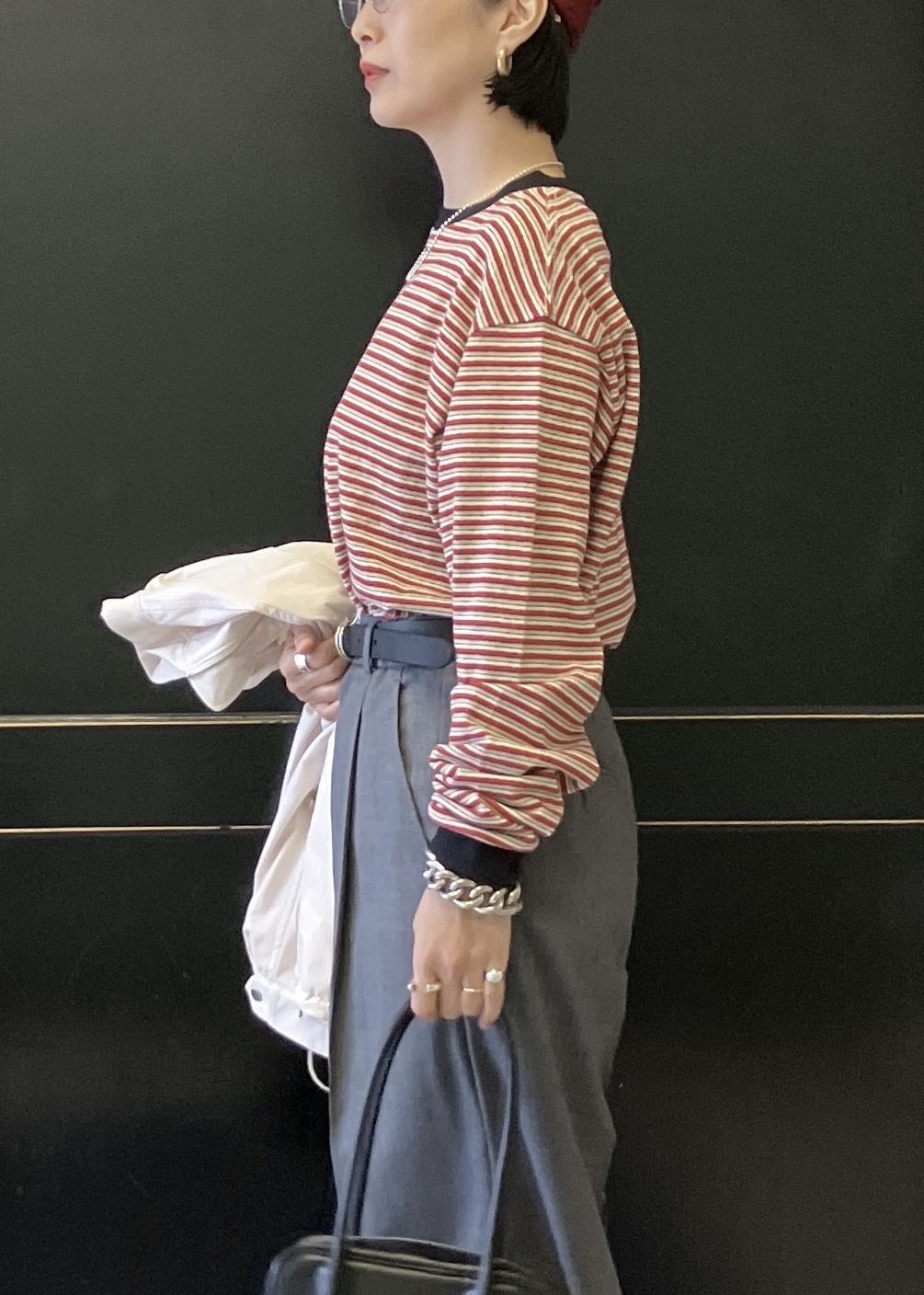 ADAM ET ROPÉ FEMME【BATONER for ADAM ET ROPE'】別注HIGH GAUGE BORDER LS T-SHIRTレッド / F¥19,800レビューバトナーの上質なロンT。