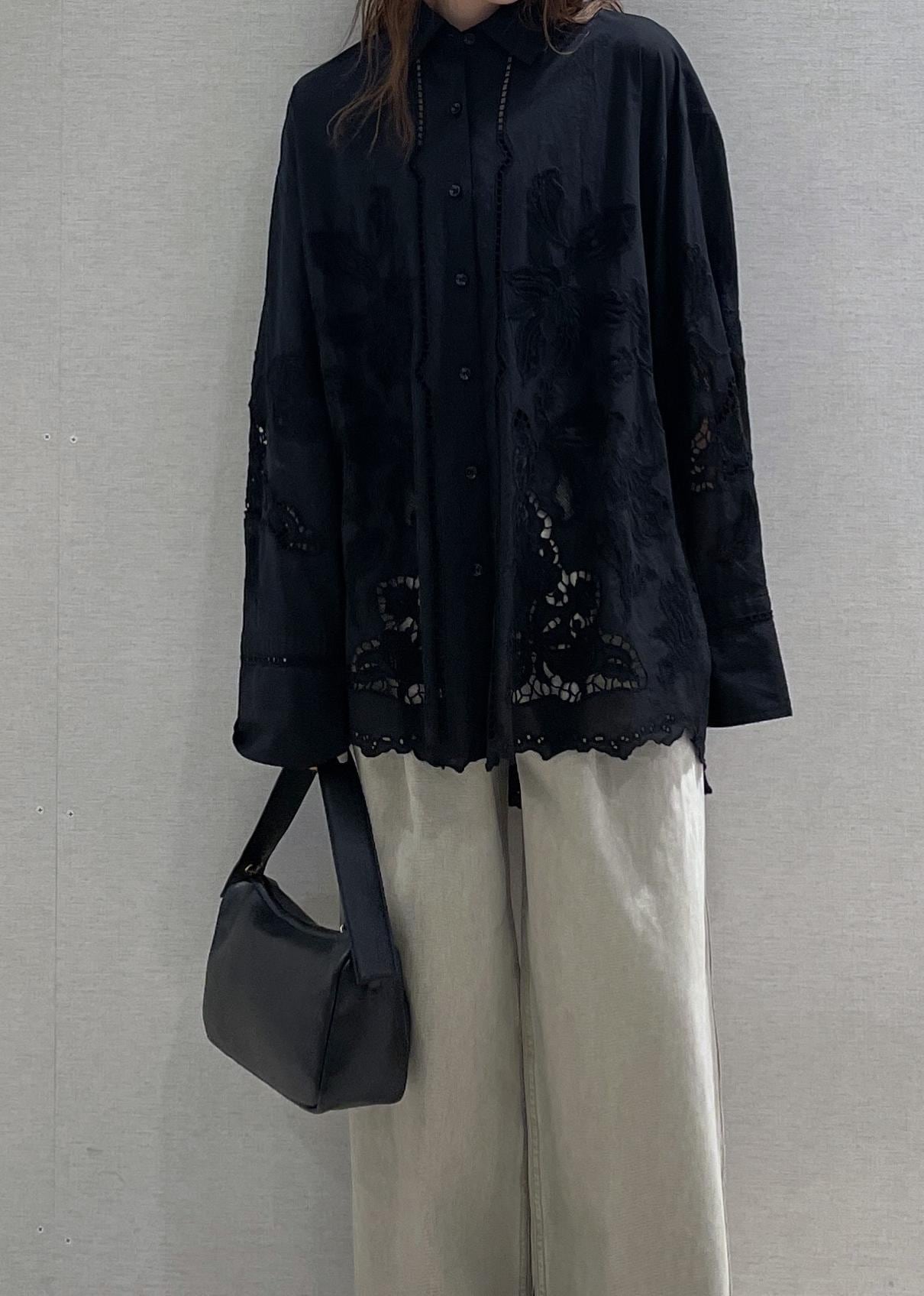 EMOELLE【EMOELLE】エンブロイダリーシャツブラック / F¥29,700レビュー前面に施されたレースが様になるトップスです♡