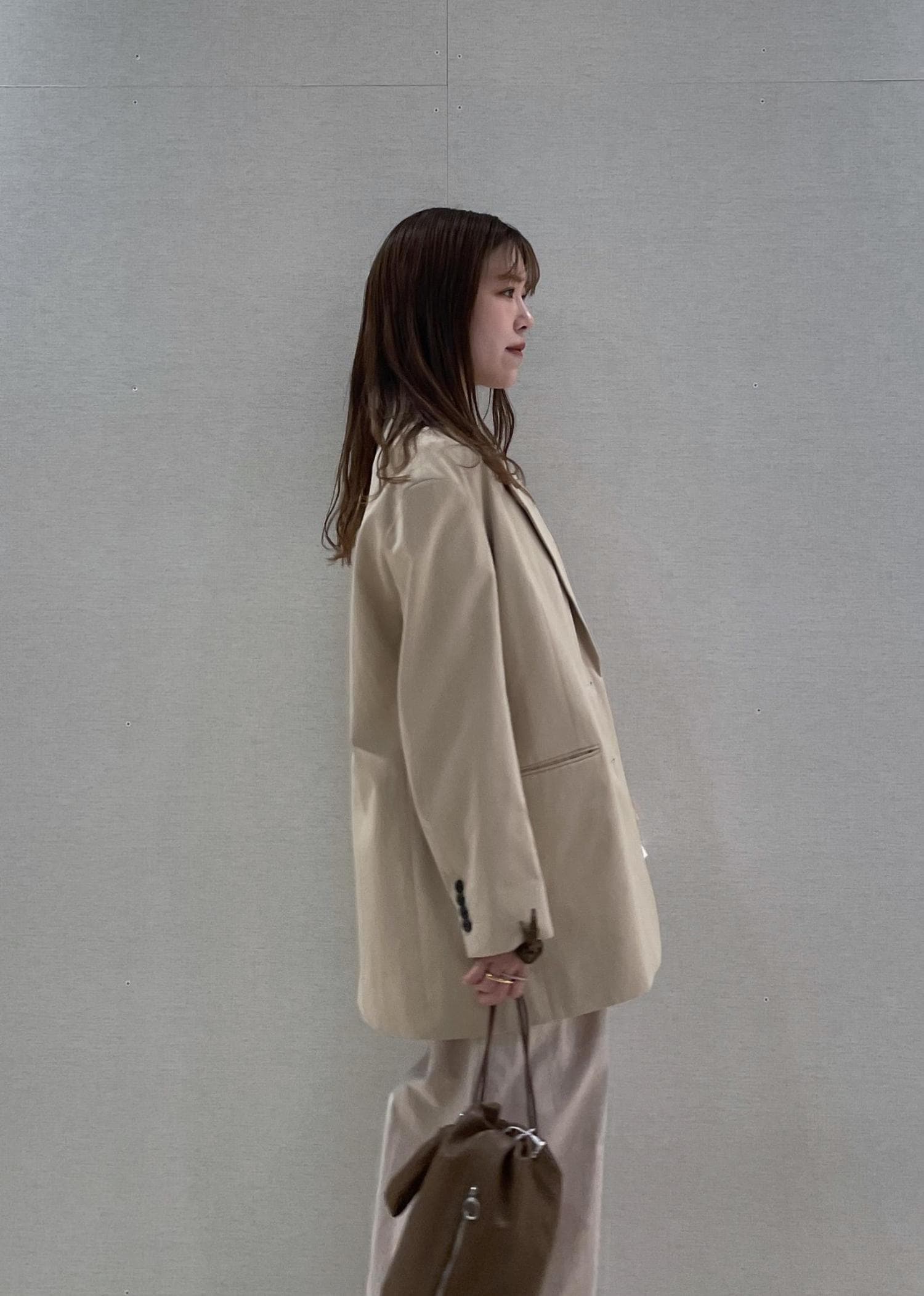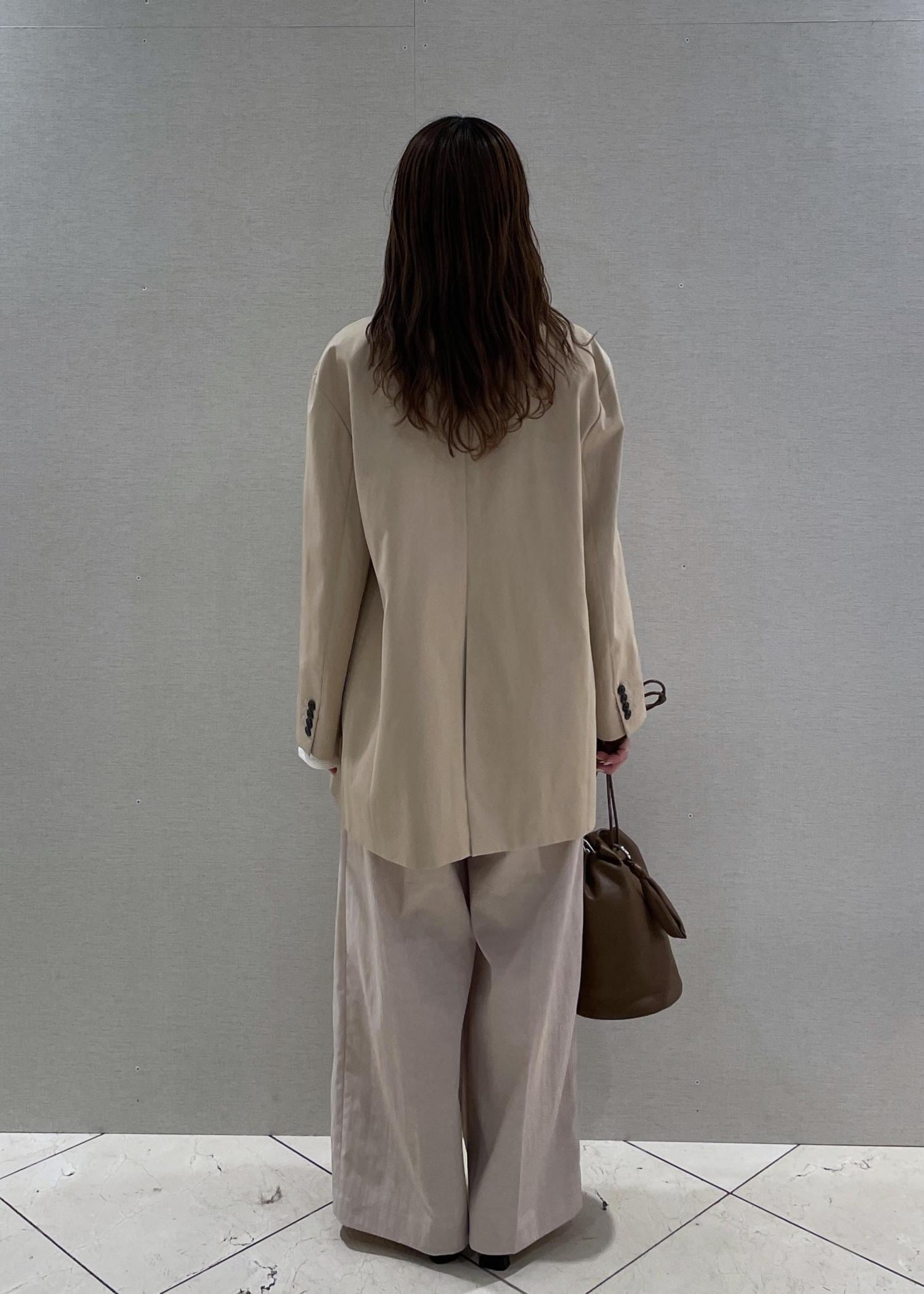 パンツは少しチノ素材に近いハリのある生地なので、ジャケットとの異素材が同色でもぼやっとならずおすすめです!