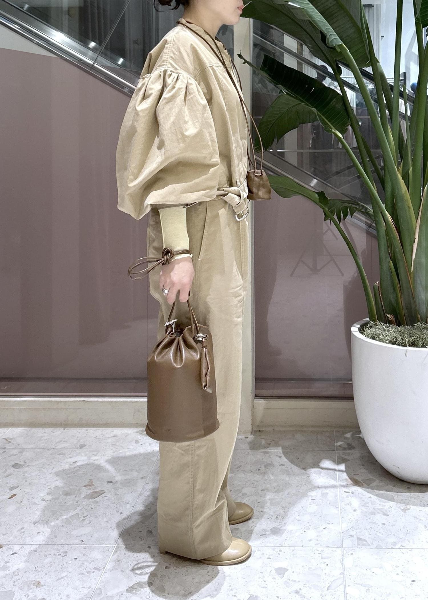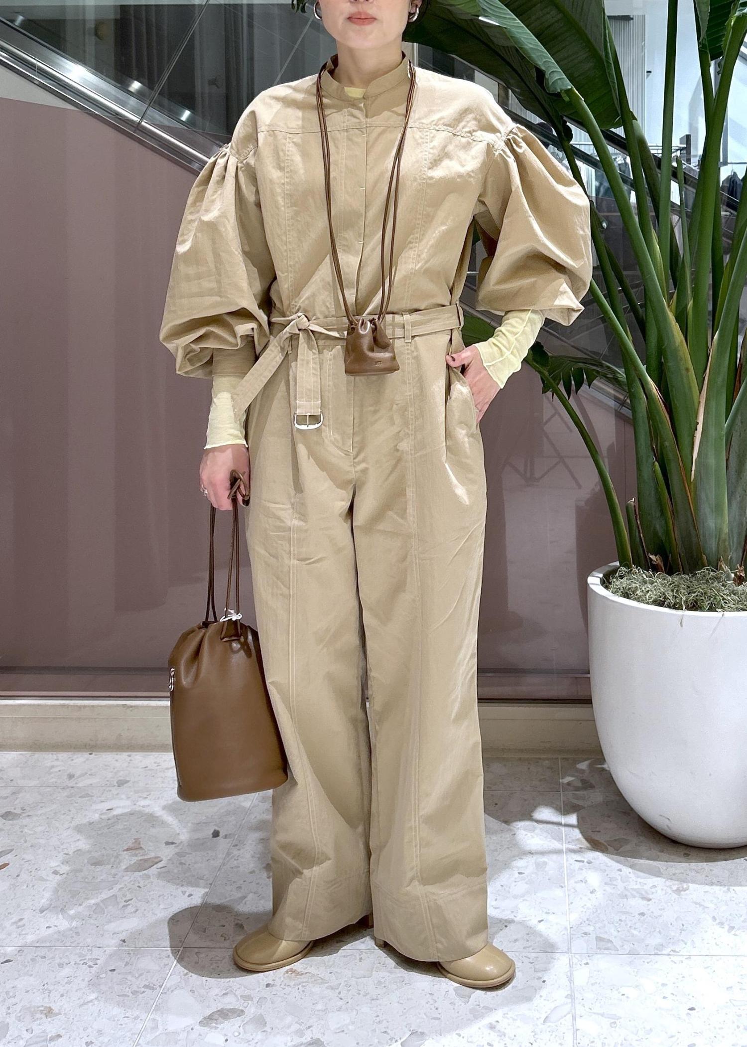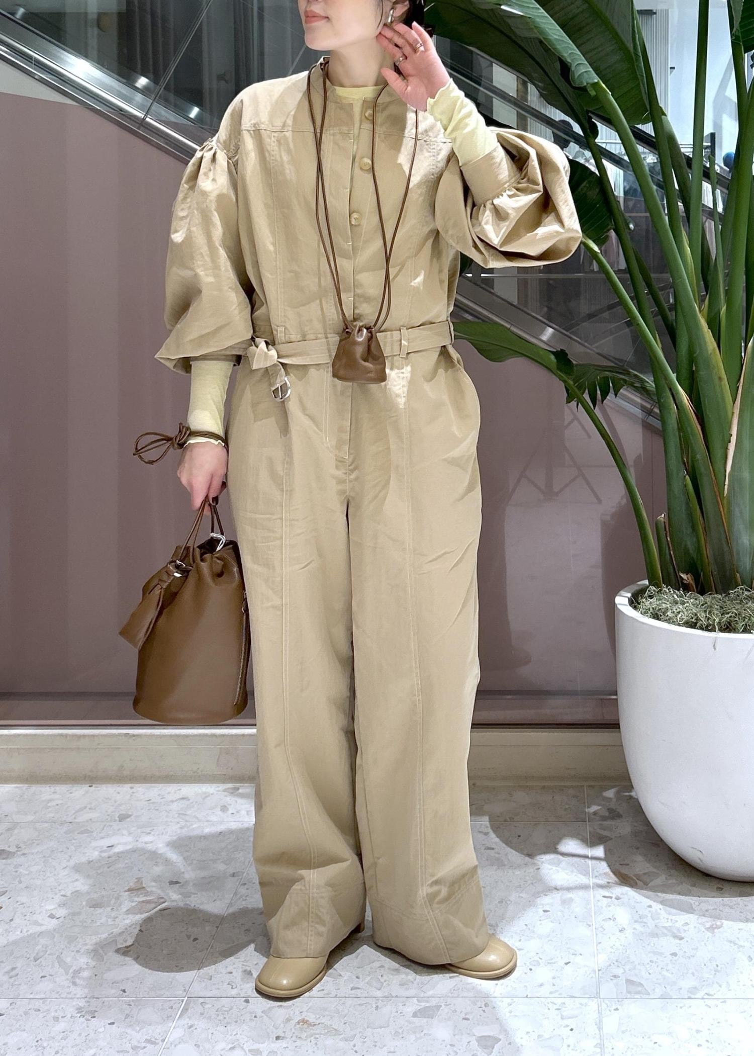 NEW!EMOELLE【EMOELLE】パフスリーブオールインワンベージュ / 36¥41,800レビューやや張りのある薄手素材です!袖のボリュームが可愛く、着映えするデザイン。パンツの丈は長過ぎないので36サイズでピッタリでした。ウエストの付属ベルトで絞って着ても可愛いです。リアルバイアイテムです♪