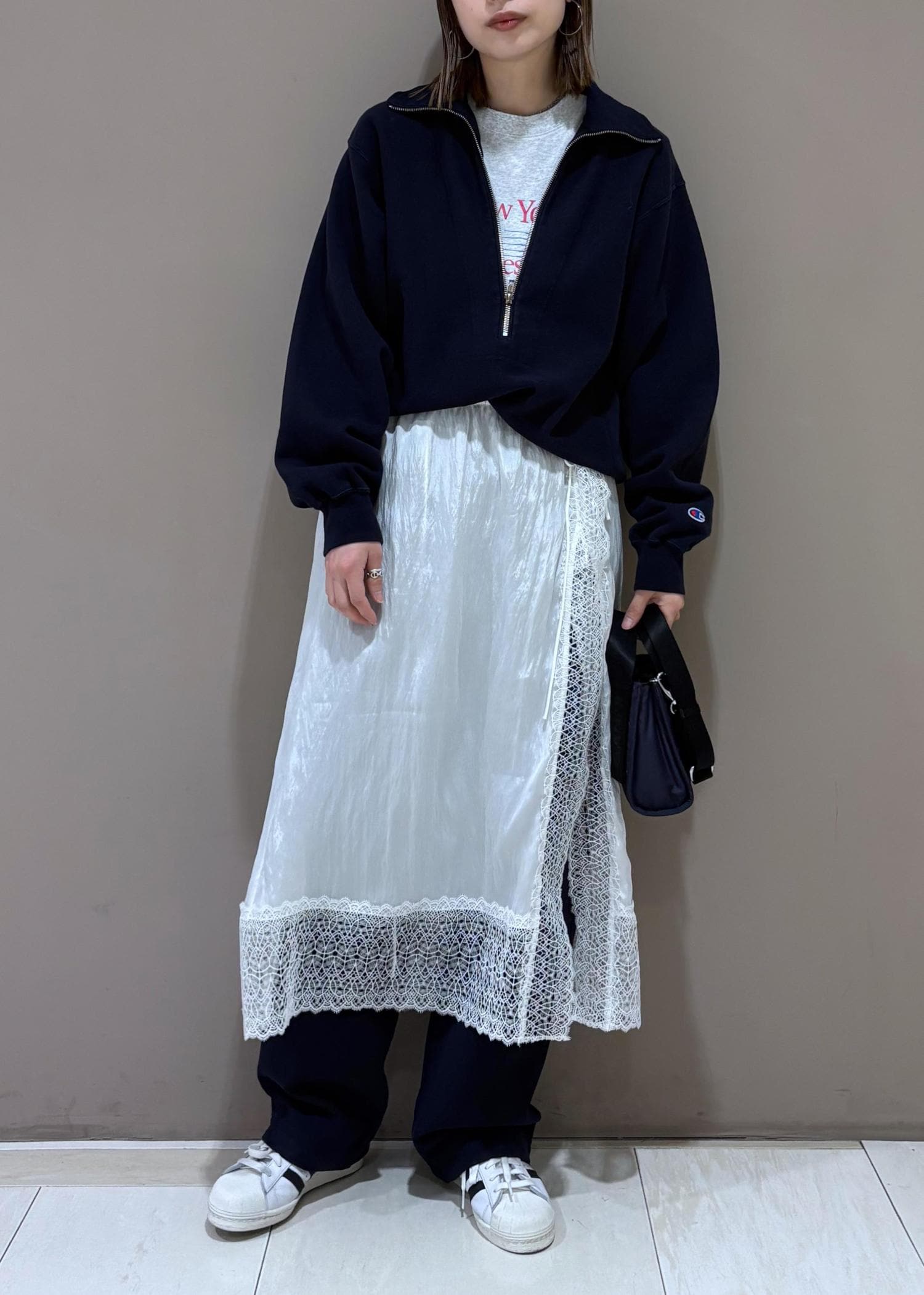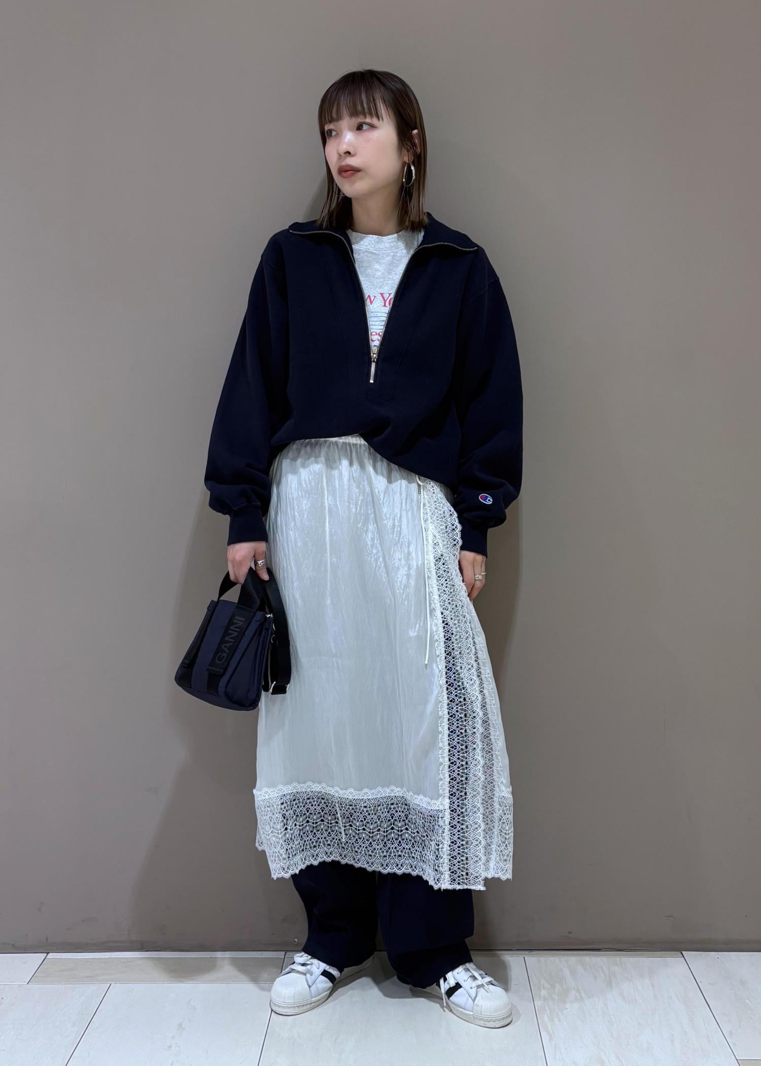 ADAM ET ROPÉ FEMME【Champion for ADAM ET ROPE'】別注 SWEAT HALF ZIPネイビー / F¥13,200レビュー162cm.フリーサイズ着用。