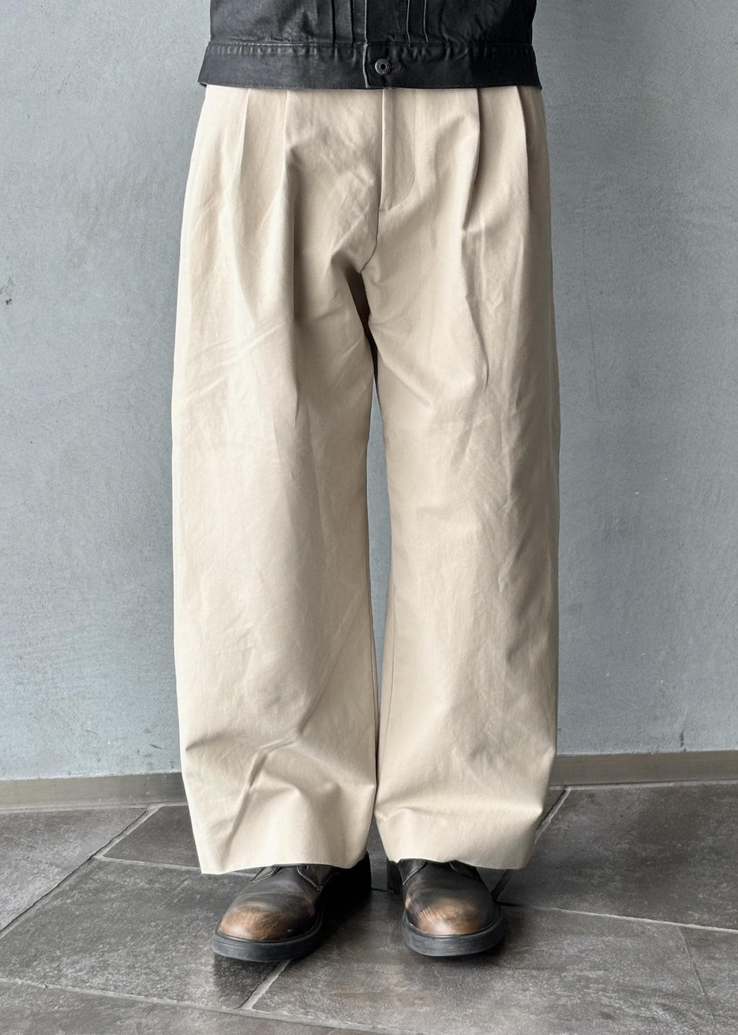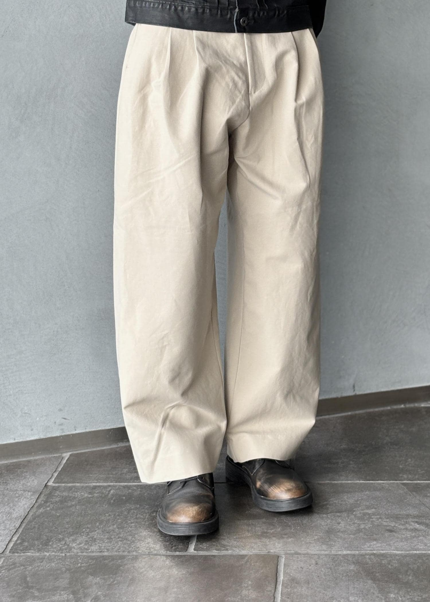 ADAM ET ROPÉ HOMMEコットンダブルクロス バギースラックスベージュ / L¥28,600レビュー181cmでLサイズ着用、ゆとりのあるサイズ感。