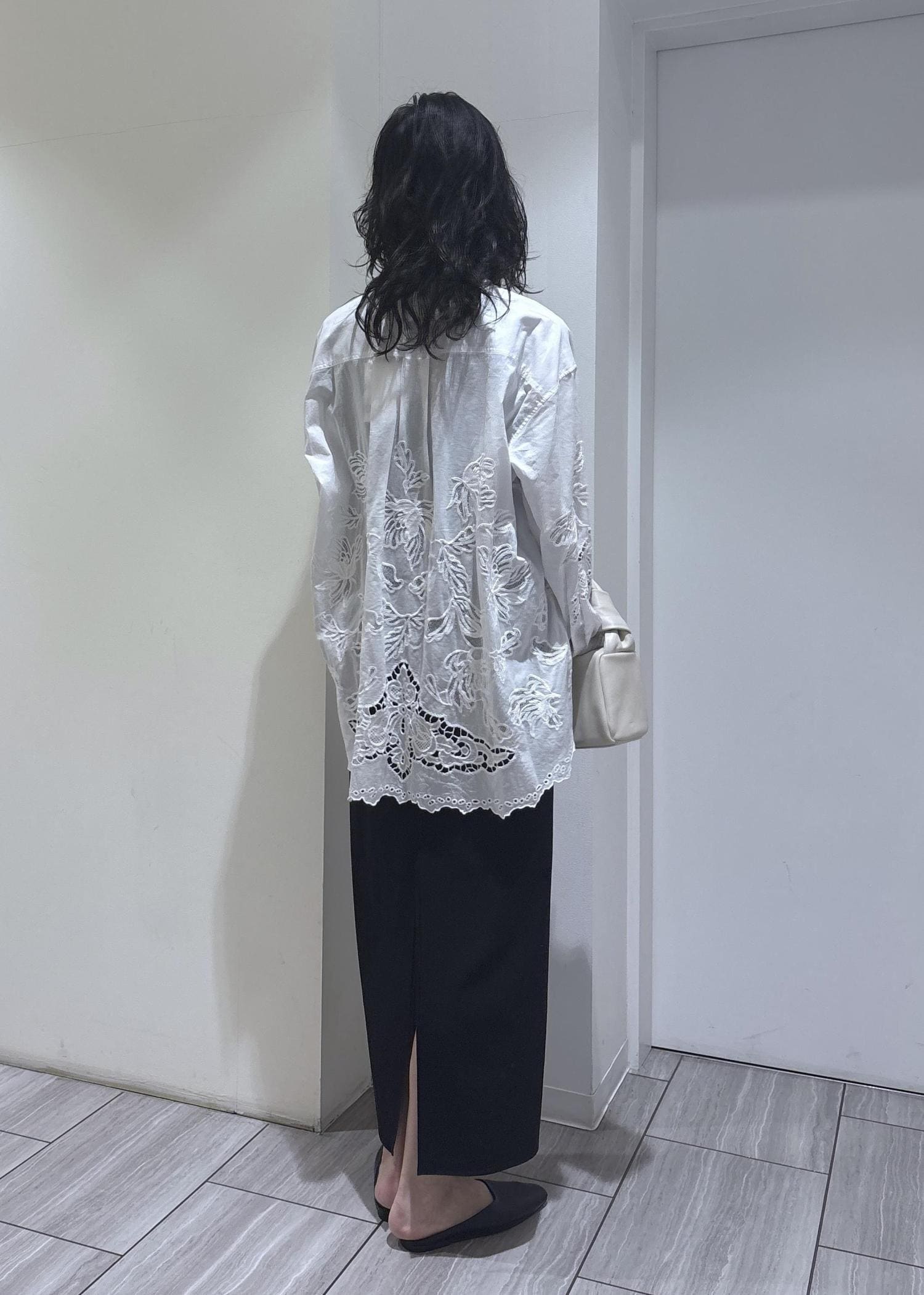 NEW!EMOELLE【EMOELLE】エンブロイダリーシャツホワイト / F¥29,700レビューシアー素材でほどよく透け感があり、軽くてさらっとした着心地です。オーバーサイズでも落ち感があり、女性らしいシルエット◎