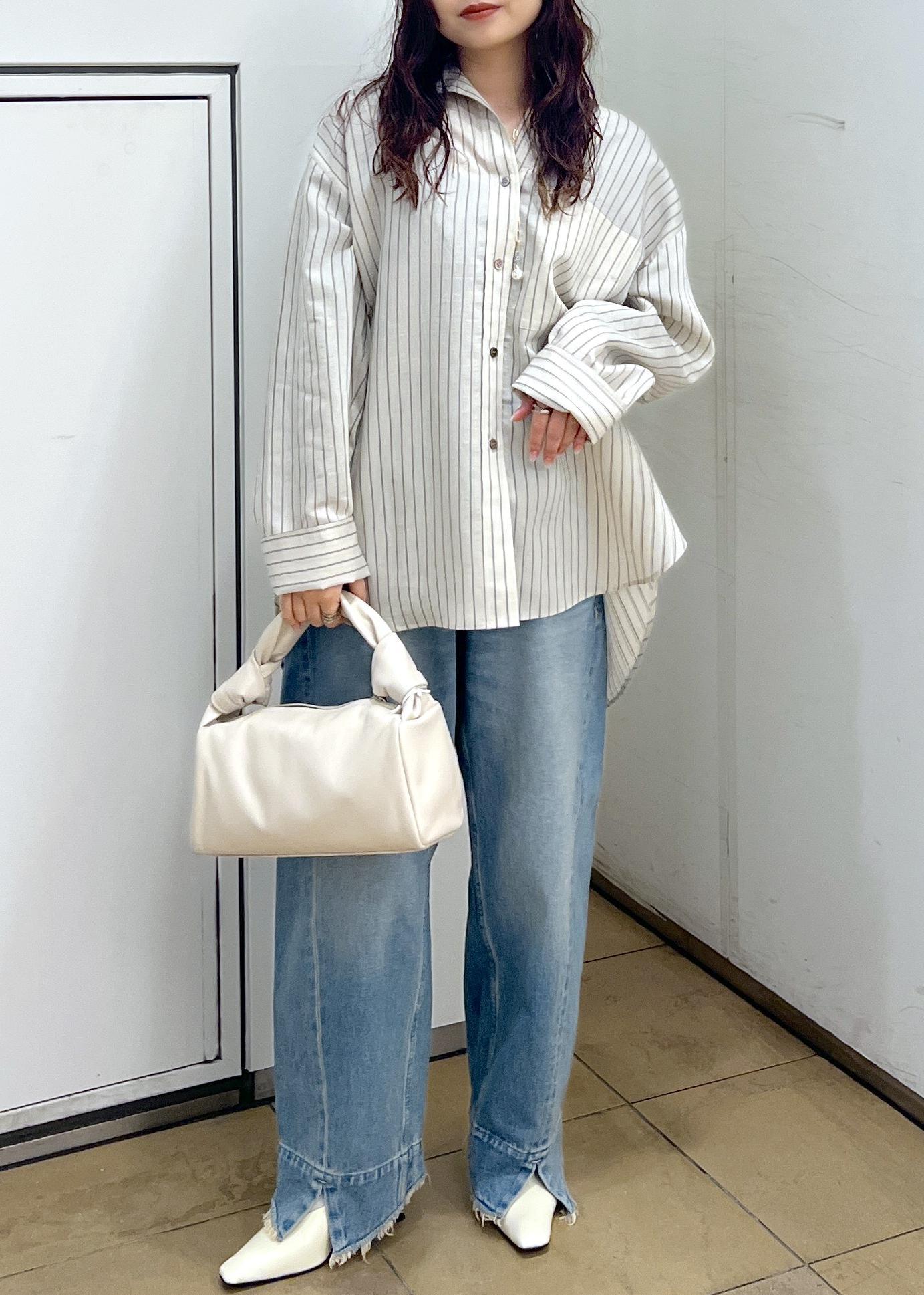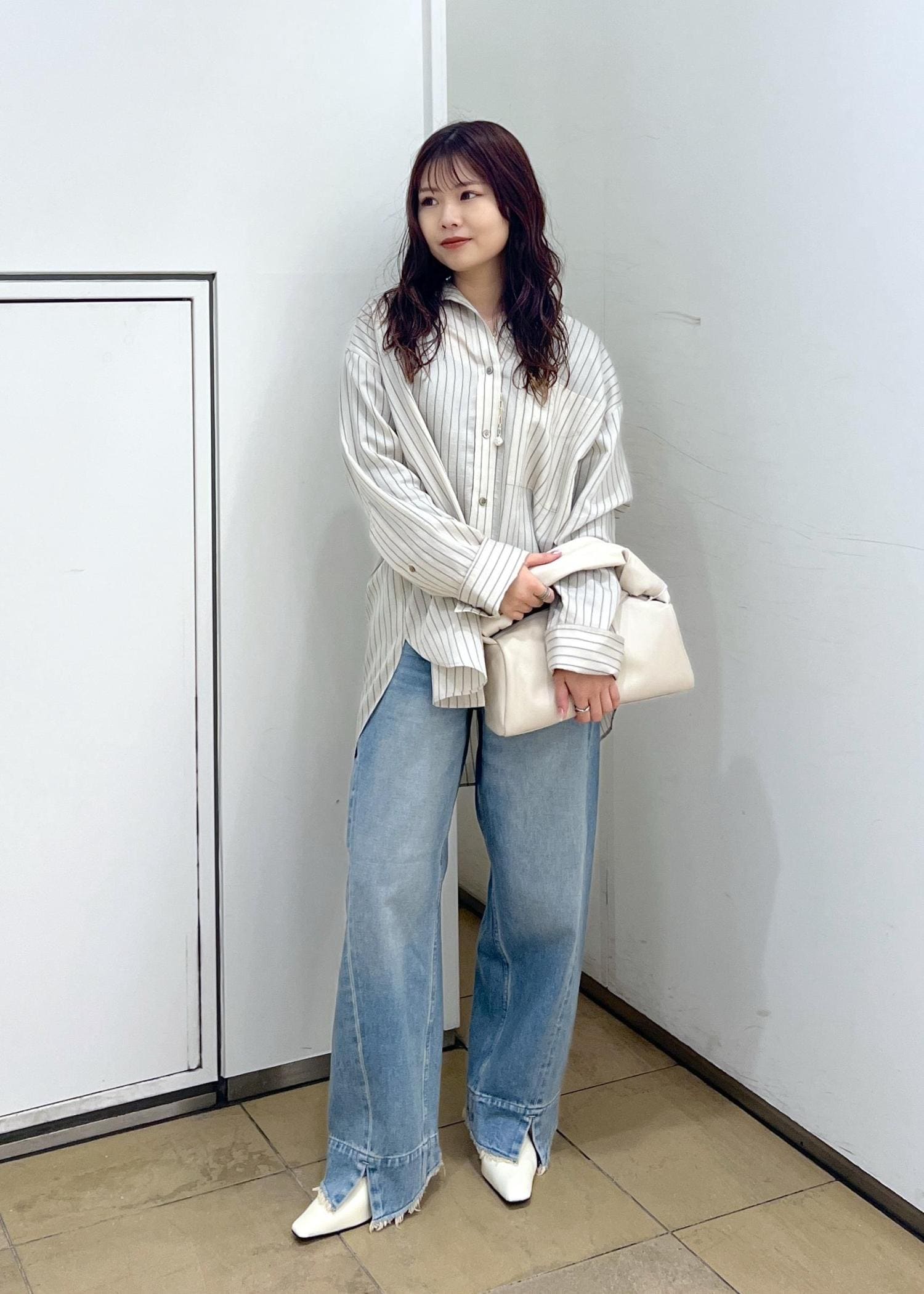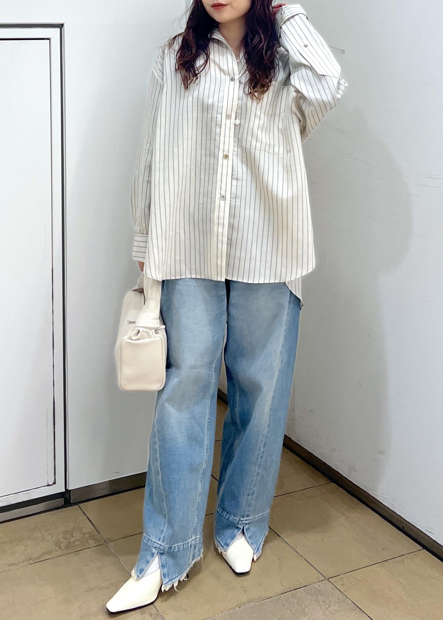 新作のストライプシャツをシンプルにデニムで合わせてみました!