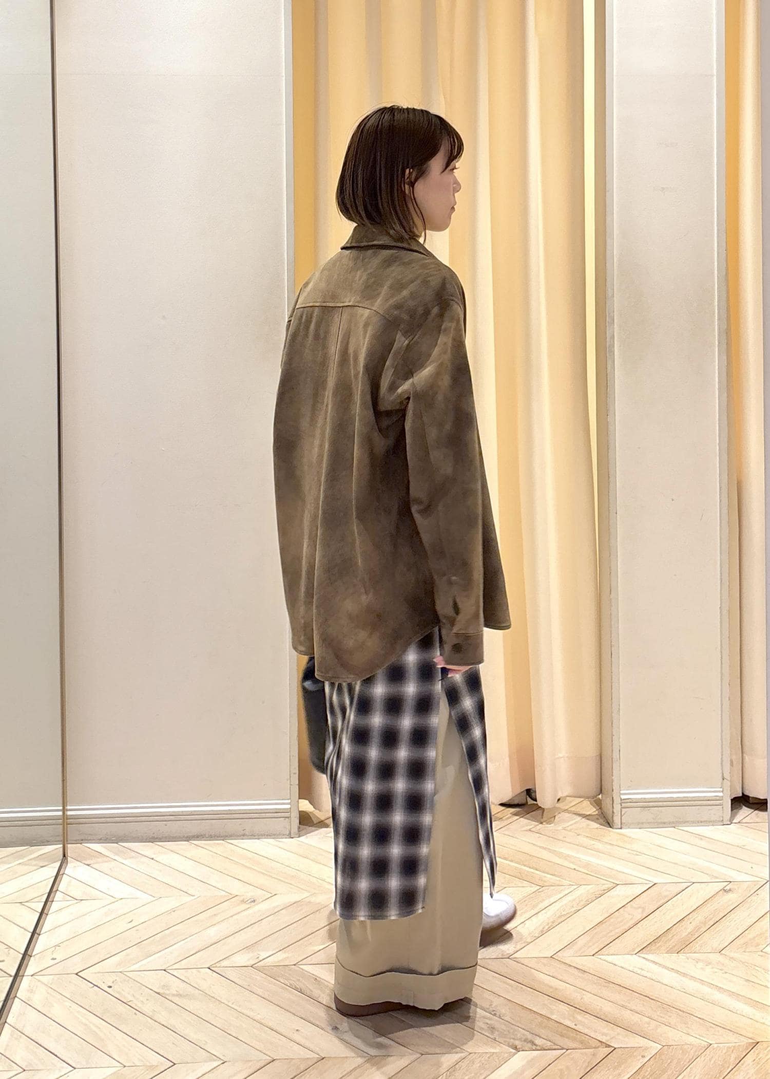 生地は程よく厚みはありますが柔らかく、アウターとしてもシャツとしても着回せる1着です☺︎