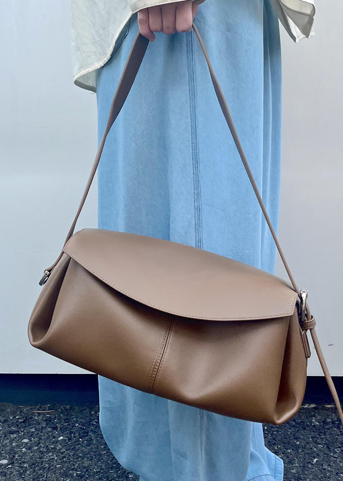 マチが広いので長財布、ポーチ、折り畳み傘などがゆったりと入るサイズ感です。ストラップ長さ調節可能なのでハンドバッグにもショルダーにもできます◎コロンと丸みを帯びたシルエットが可愛いです。