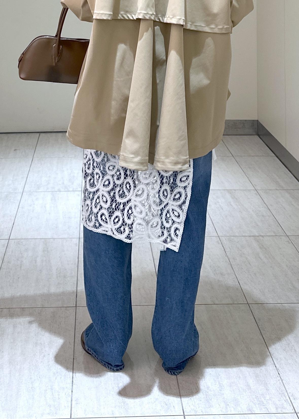 アームがゆったりとしていて、中に着込んだりしてその日の気温に合わせて調節出来る仕様。ミドル丈なので脱ぎ着してもかさばらず、座ってもシワにならないちょうどいい着丈です◎