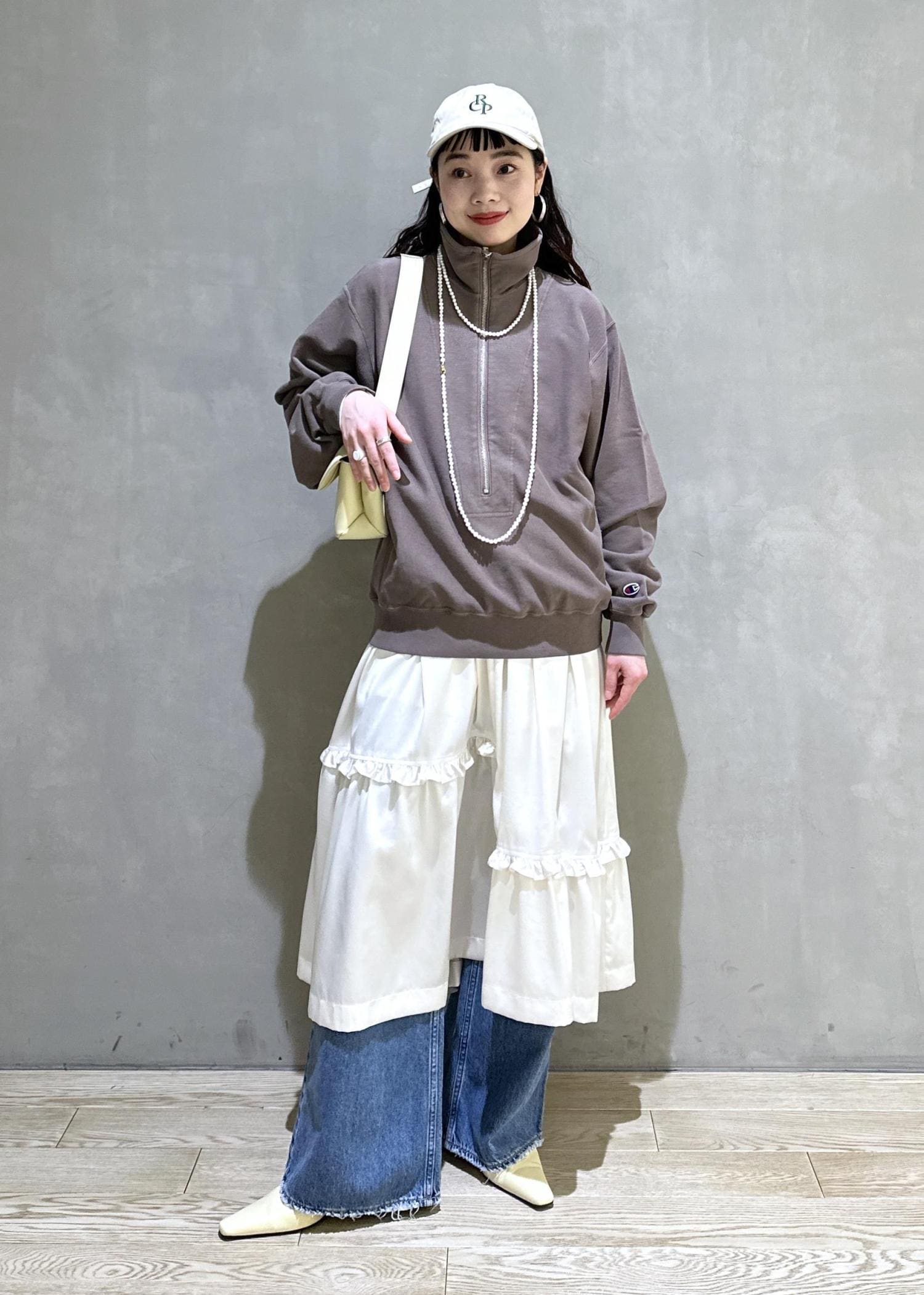 スカートとパンツをレイヤードした