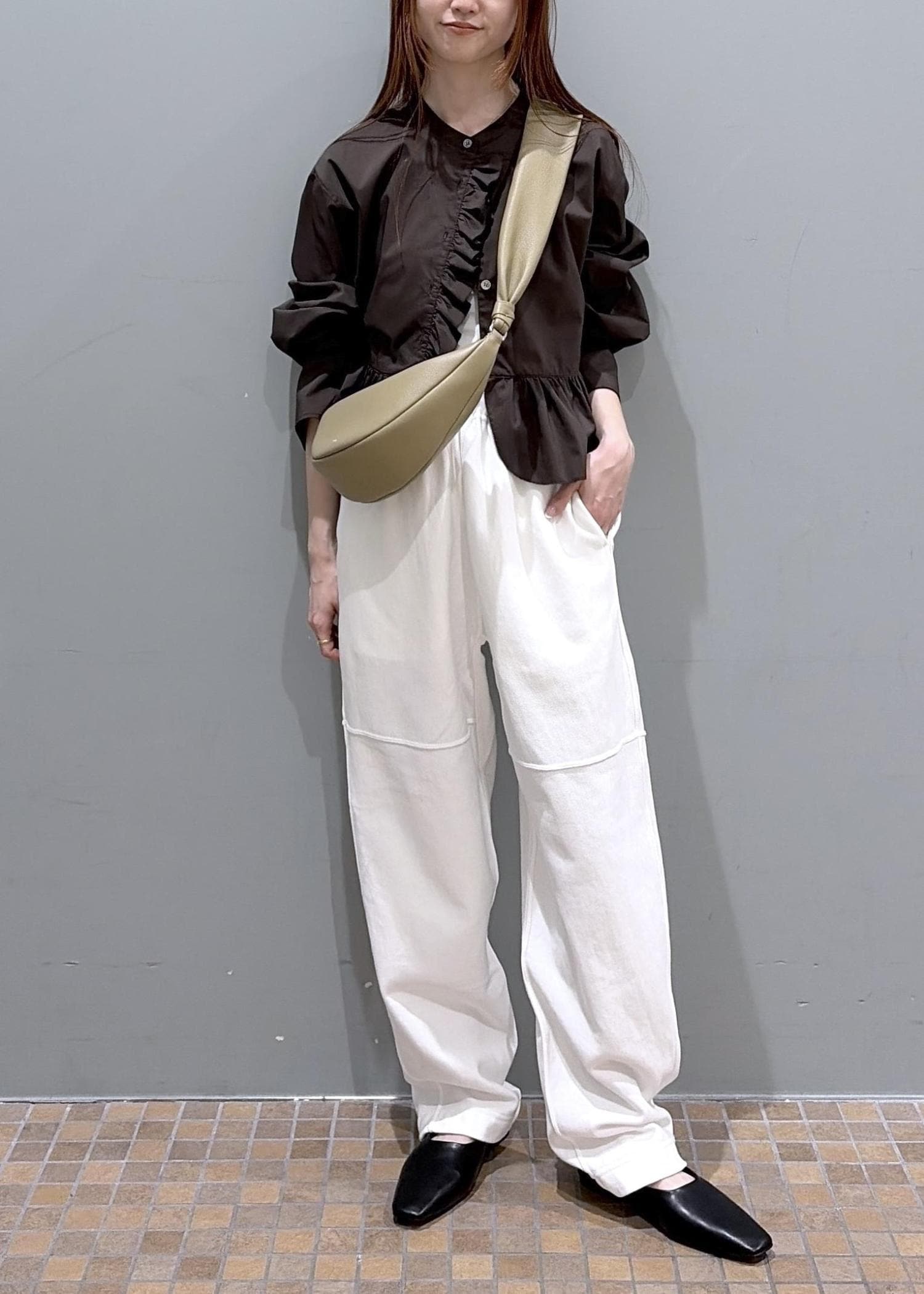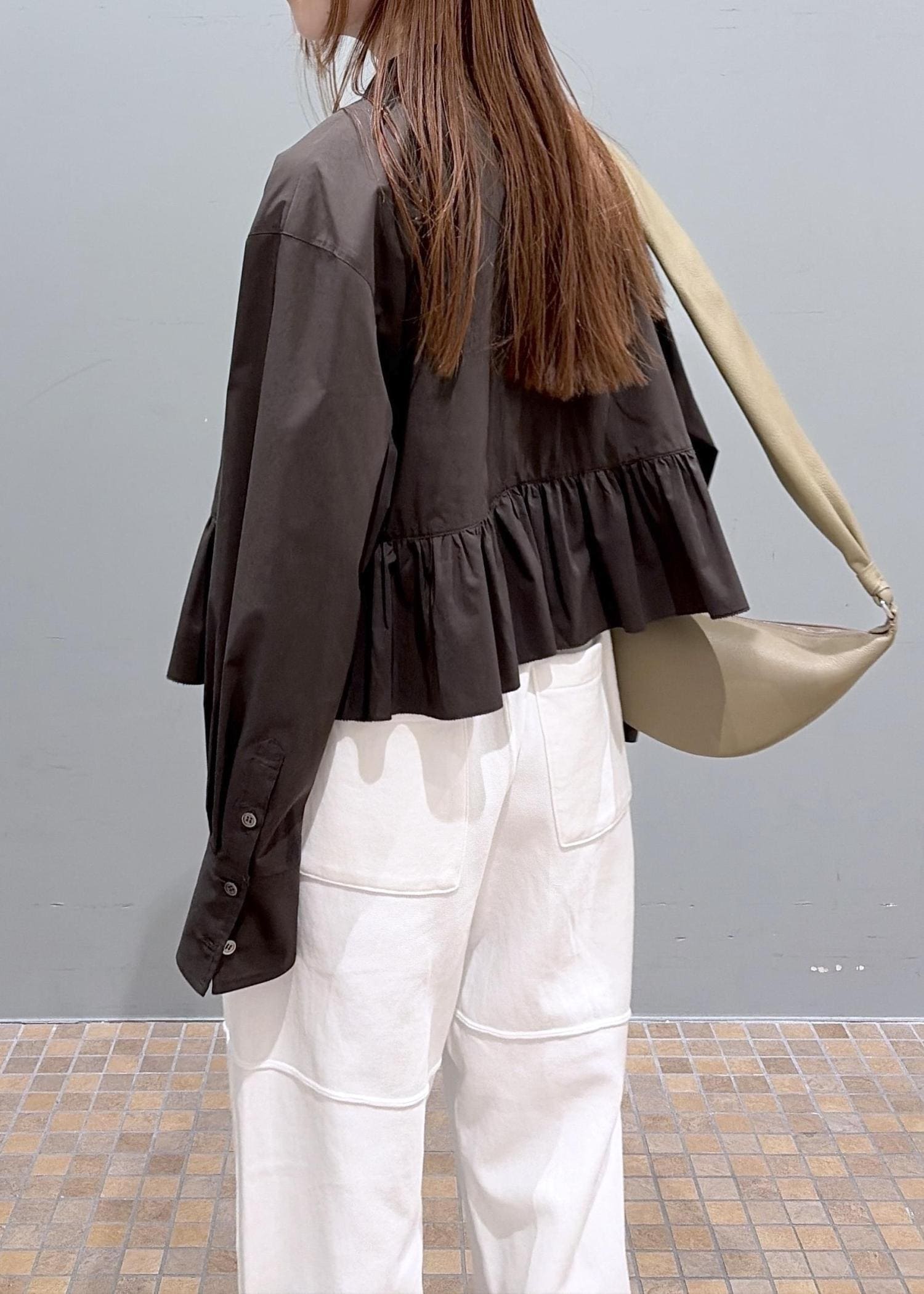 予約ADAM ET ROPÉ FEMME【サステナブル】ロングスリーブフリルブラウスダークブラウン / F¥16,500レビューサラッとした素材感で肌離れが良いです。腰が隠れくらいの着丈で、程よくゆとりのあるサイズ感です。少しハリがあるのでシワがつきにくいのも嬉しいポイント◎