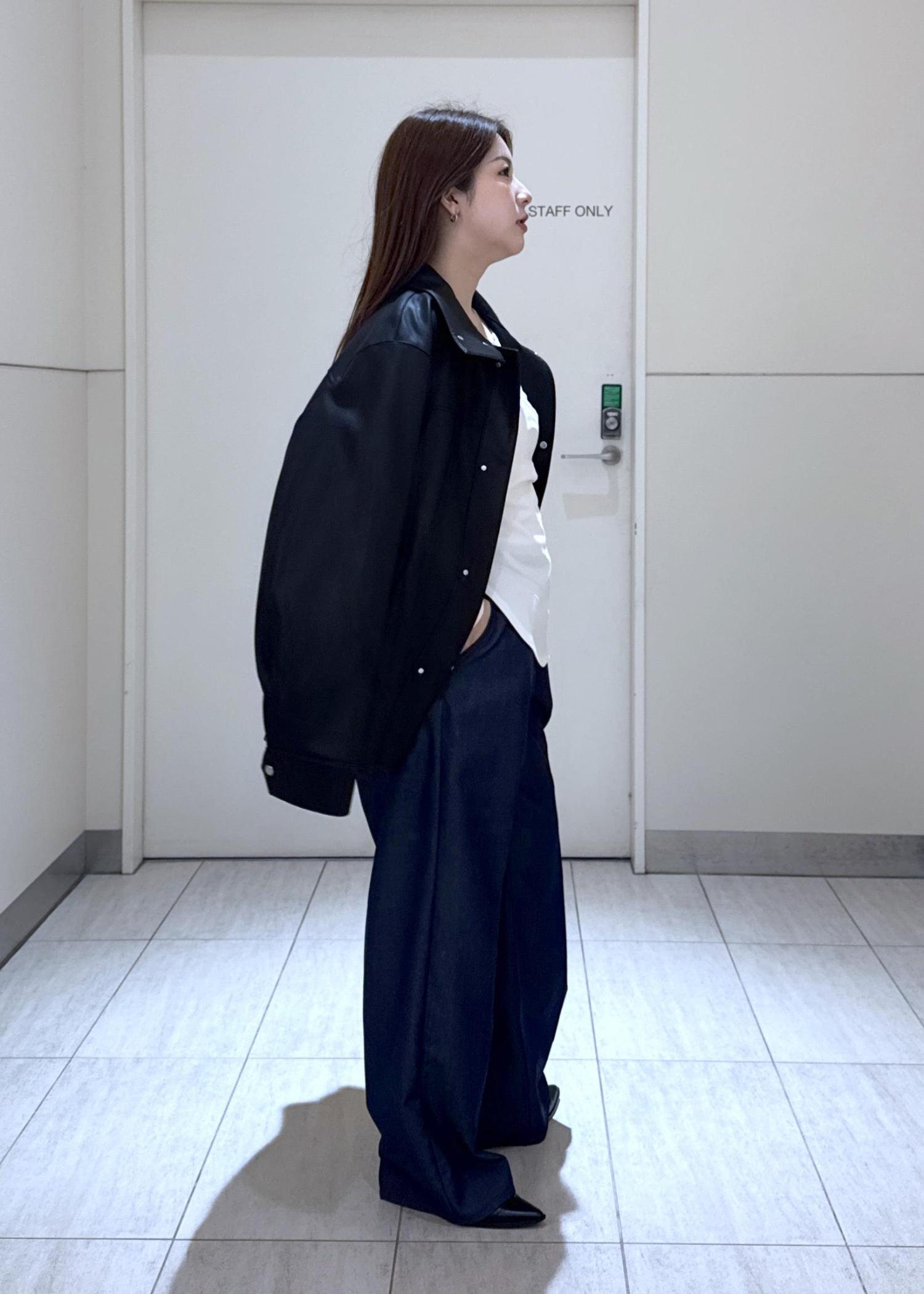 今日は春持っておくと大活躍のレザーブルゾンです!柔らかい着心地でオーバーサイズですが横に広がりすぎず低身長の方にもおすすめです。