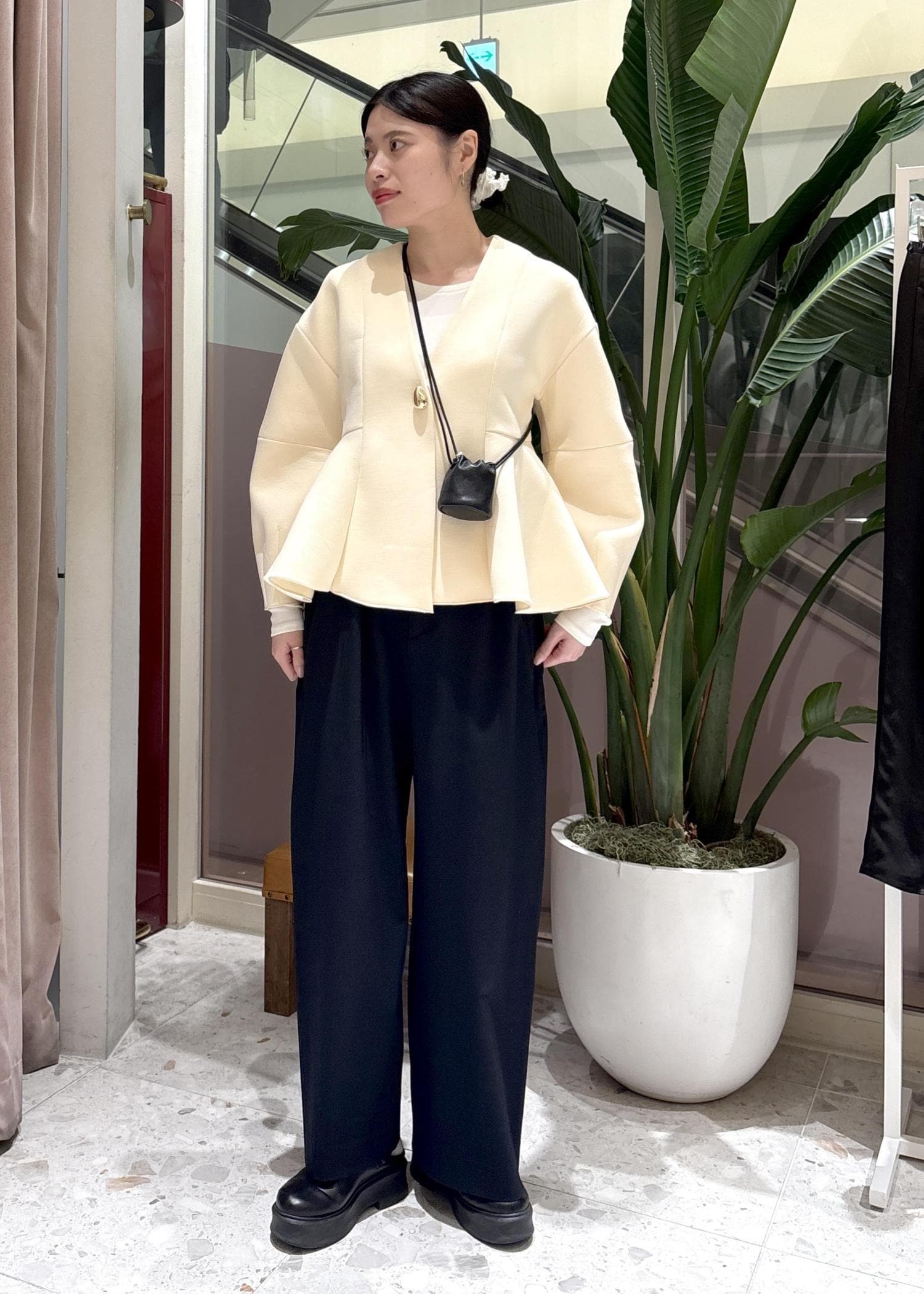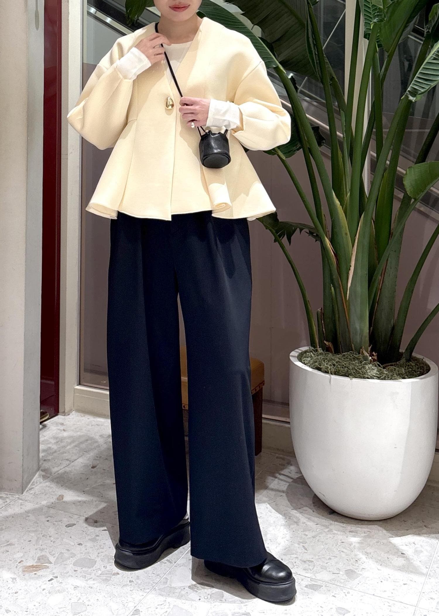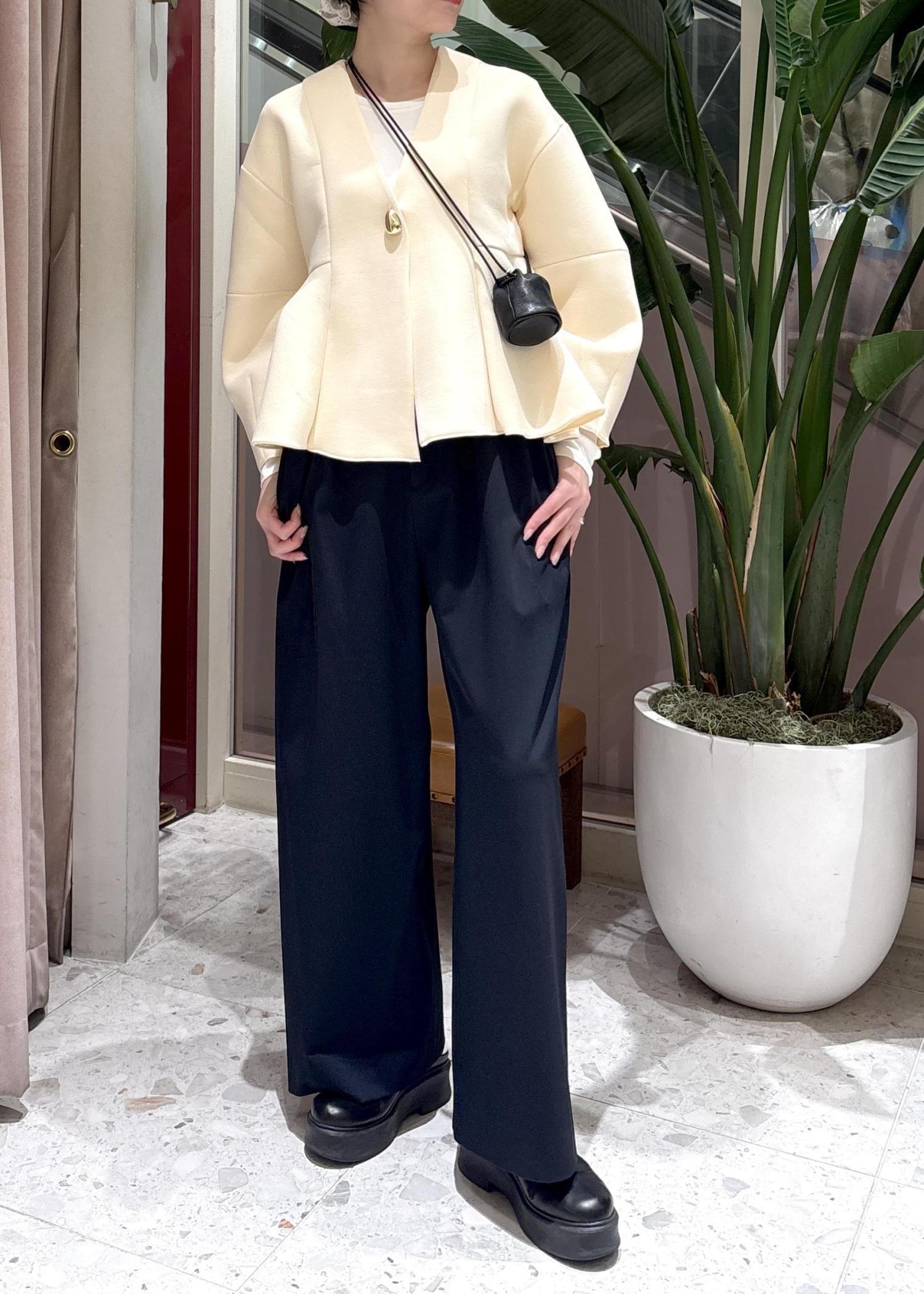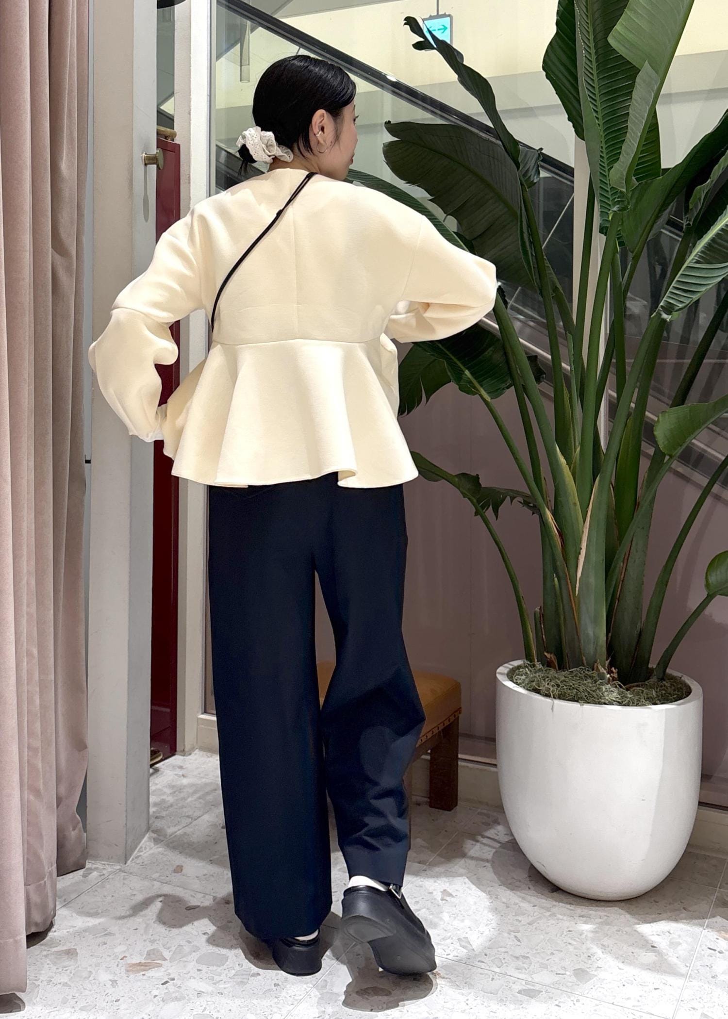 切り替えデザインがハイウエスト位置なので、バッグシルエットもすっきり見せてくれます◎ -
