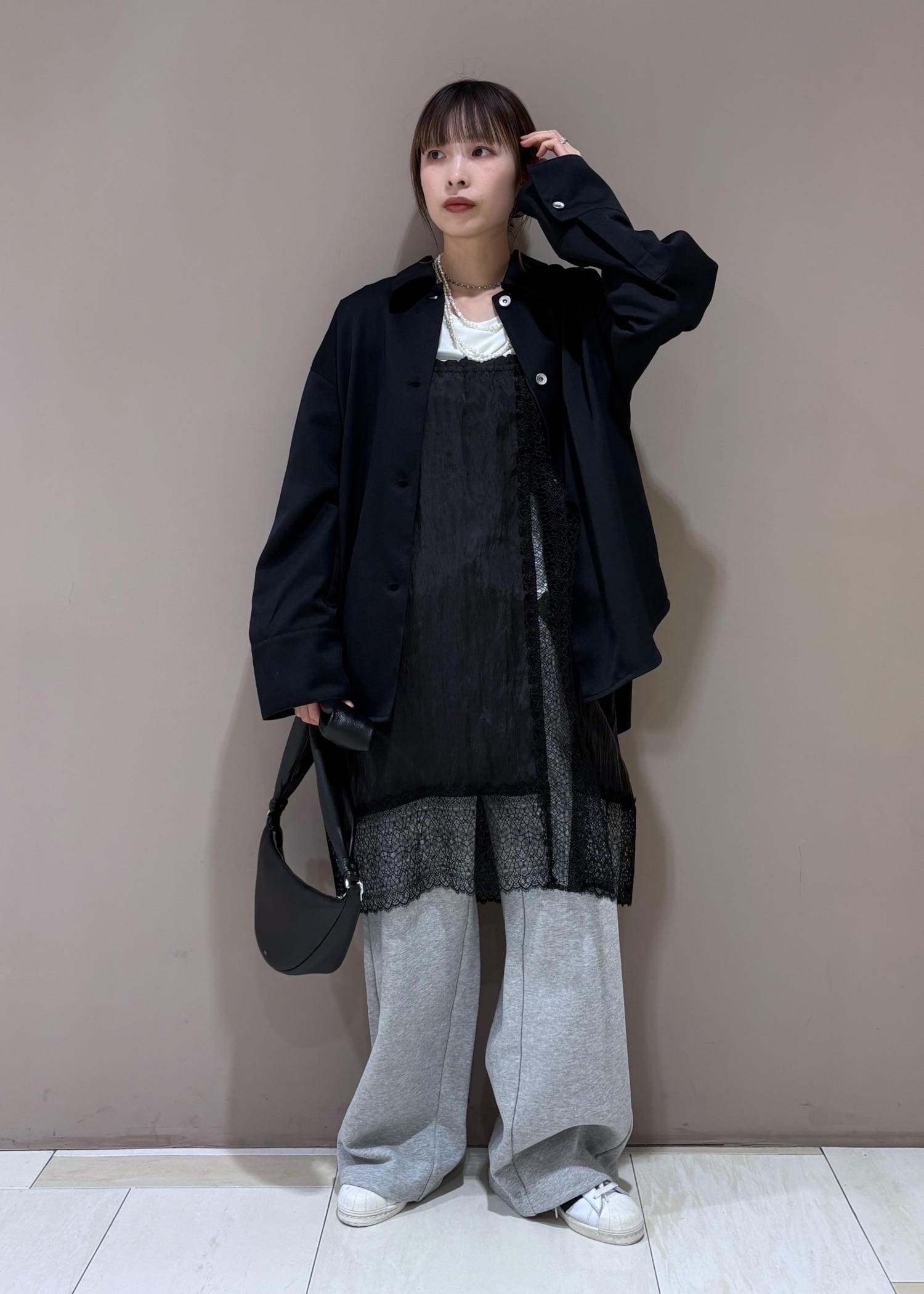 黒をポイントカラーにした、レイヤードstyle。