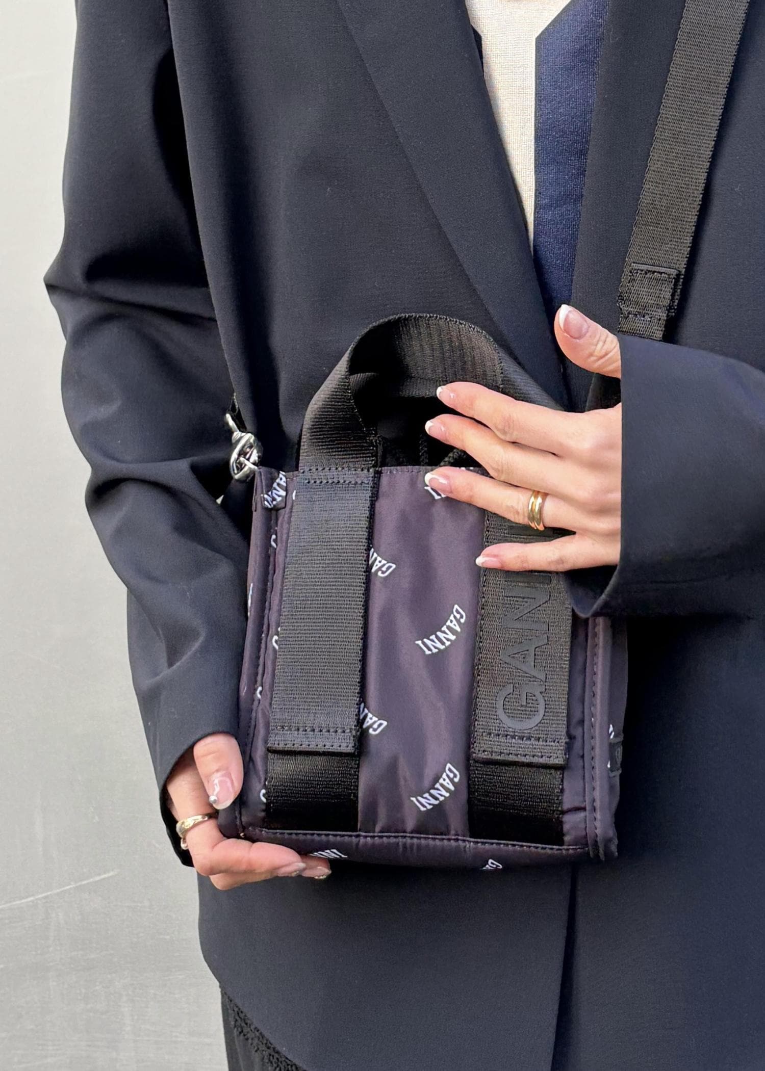 NEW! 予約ADAM ET ROPÉ FEMME【GANNI for ADAM ET ROPE'】Re-Tech Logo Print Mini Toteブラック / F¥33,550レビュー小さめですがマチがあるので見た目以上の収納力で、折りたたみ財布・スマホ・ハンカチ・リップなど必要最低限のものは入ります◎手持ちとショルダーと2WAYでご利用いただけます。