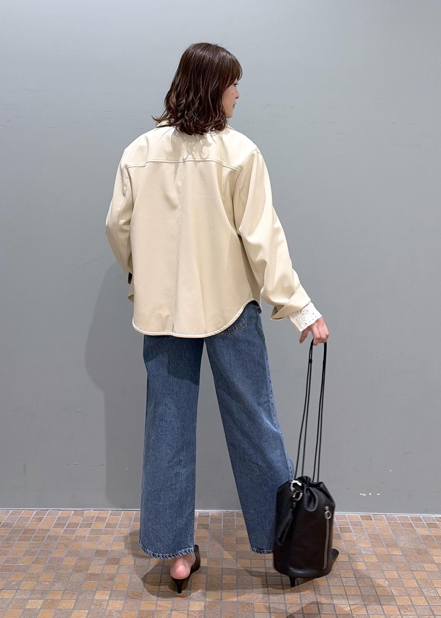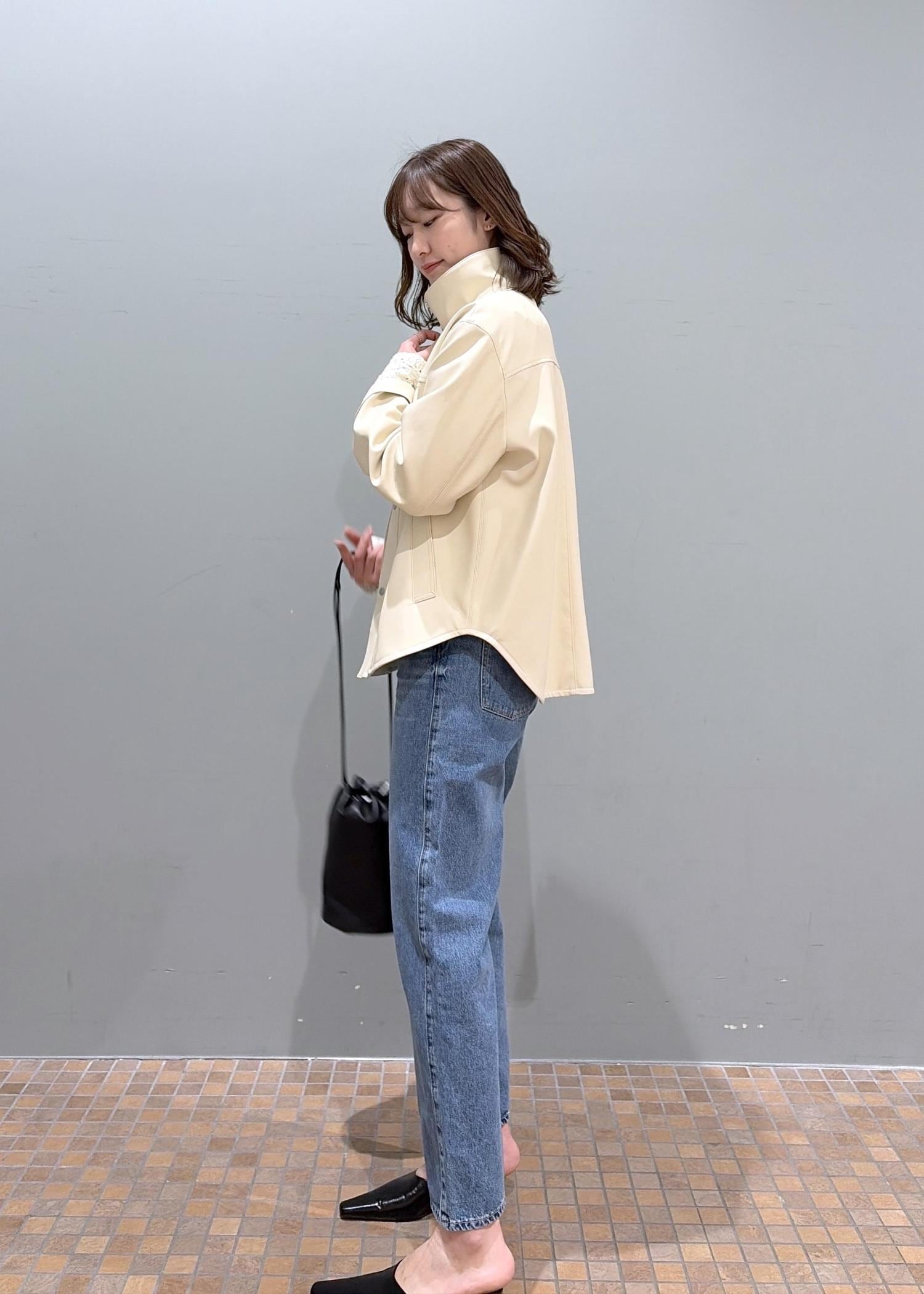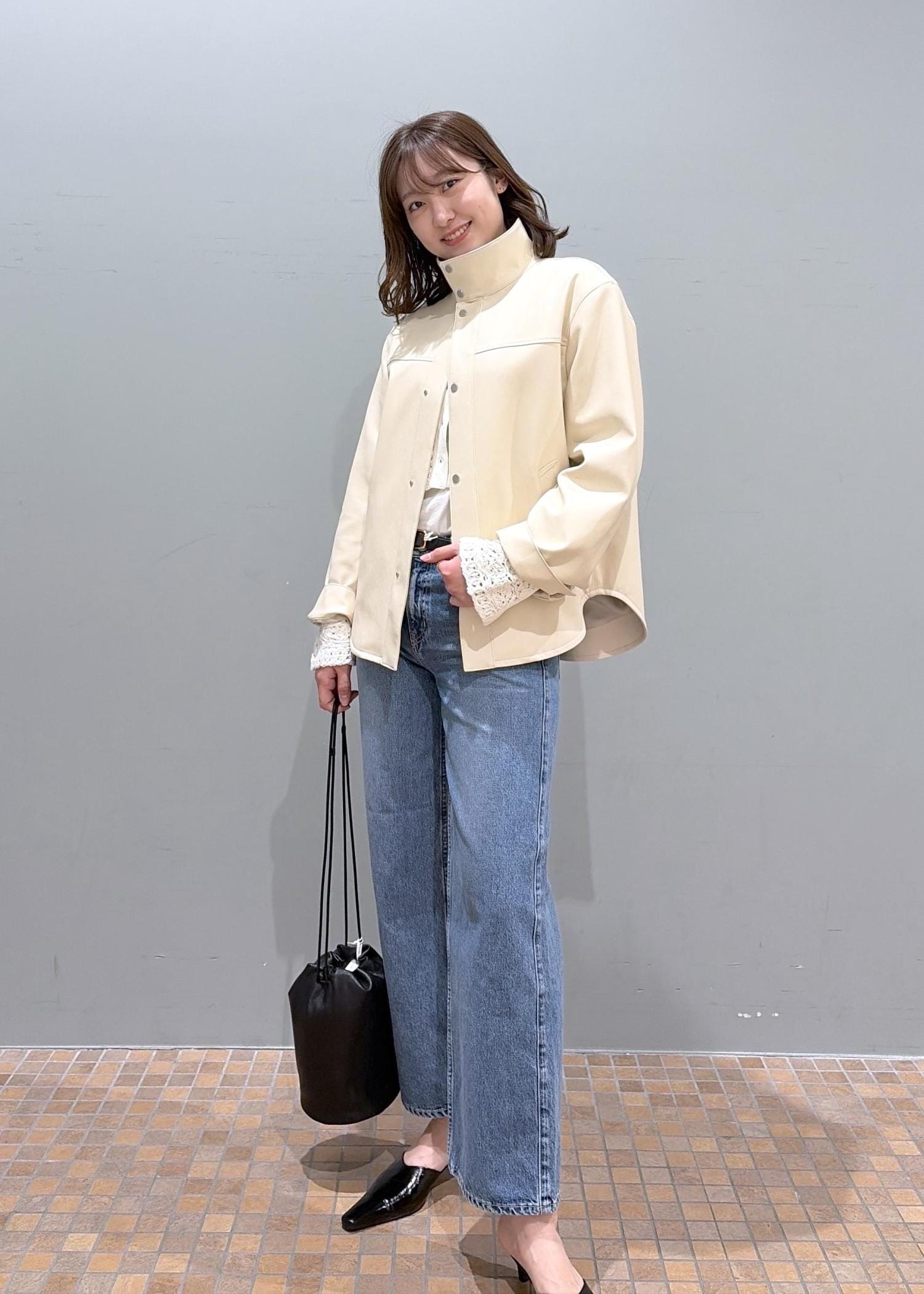 レザースタンドネックブルゾン×NEEDBYデニムパンツ