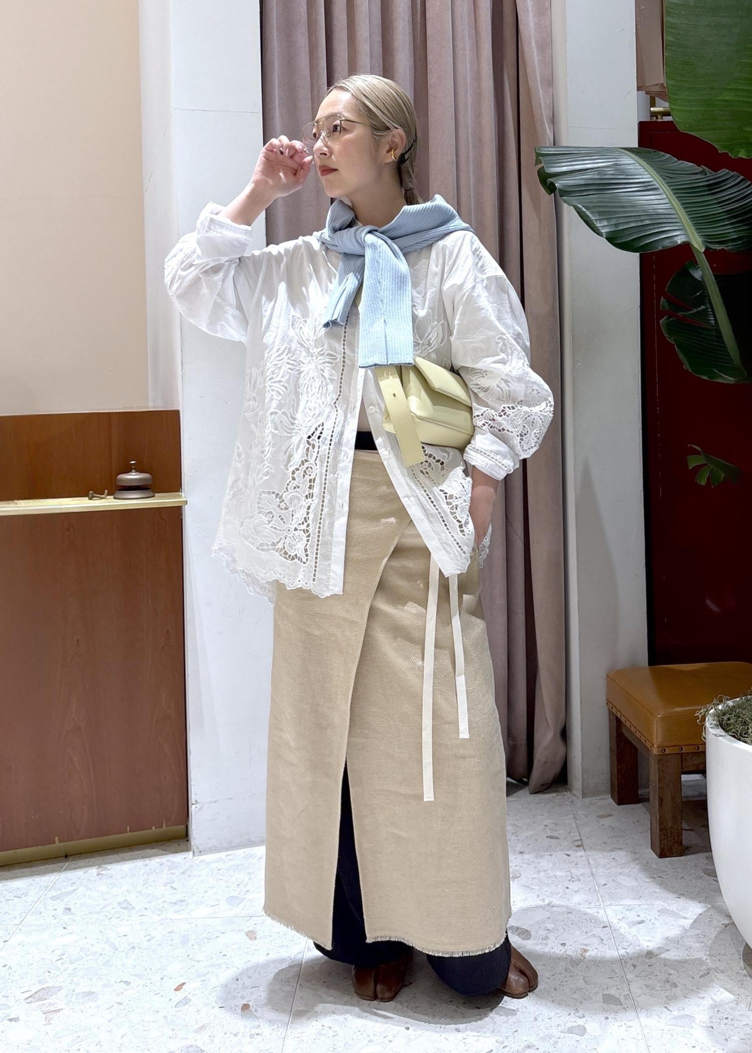 EMOELLE【EMOELLE】エンブロイダリーシャツホワイト / F¥29,700レビュー全体的にゆとりのあるサイズ感です。柔らかく薄い素材で、春先まで長く着用いただけそうです◎