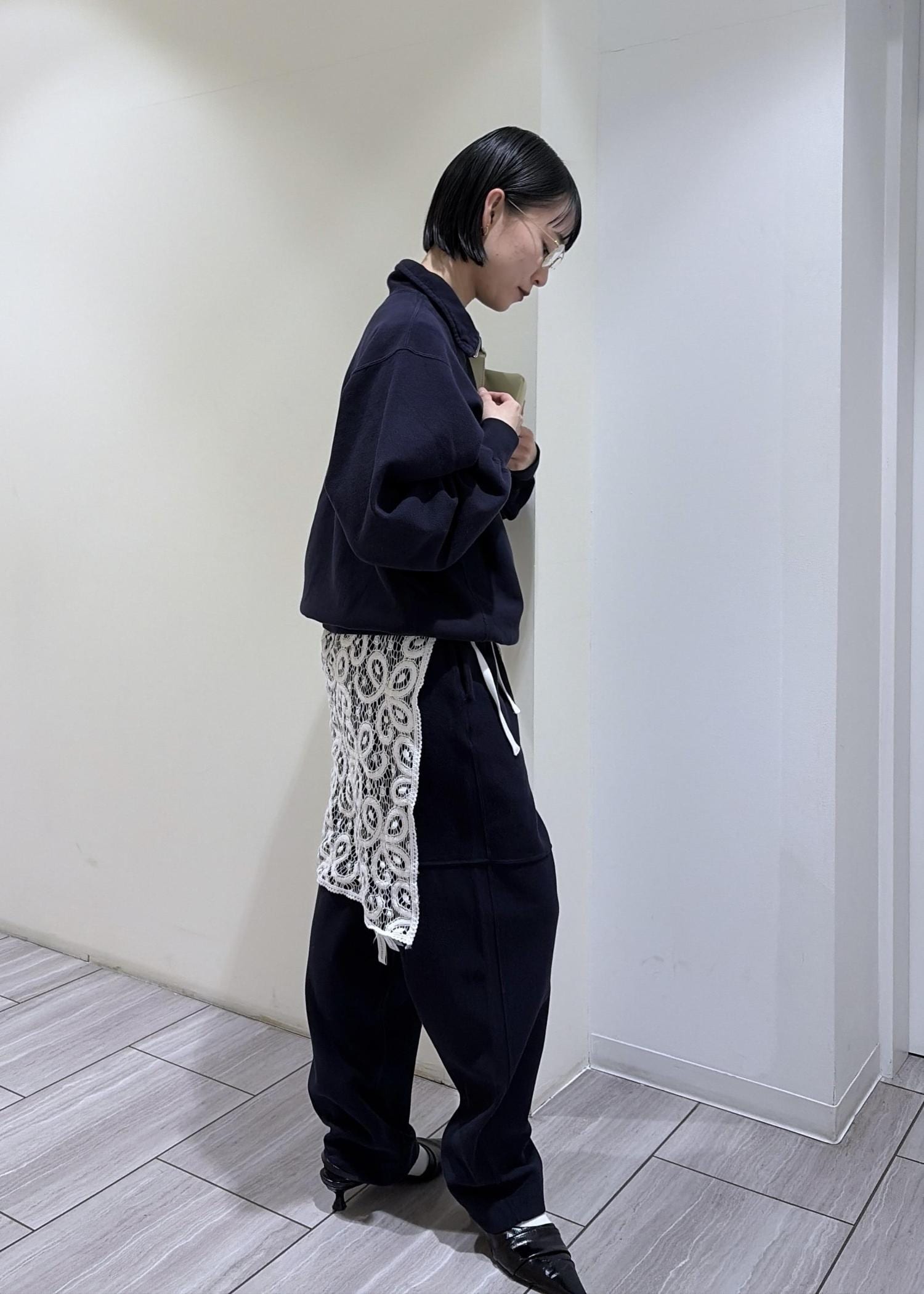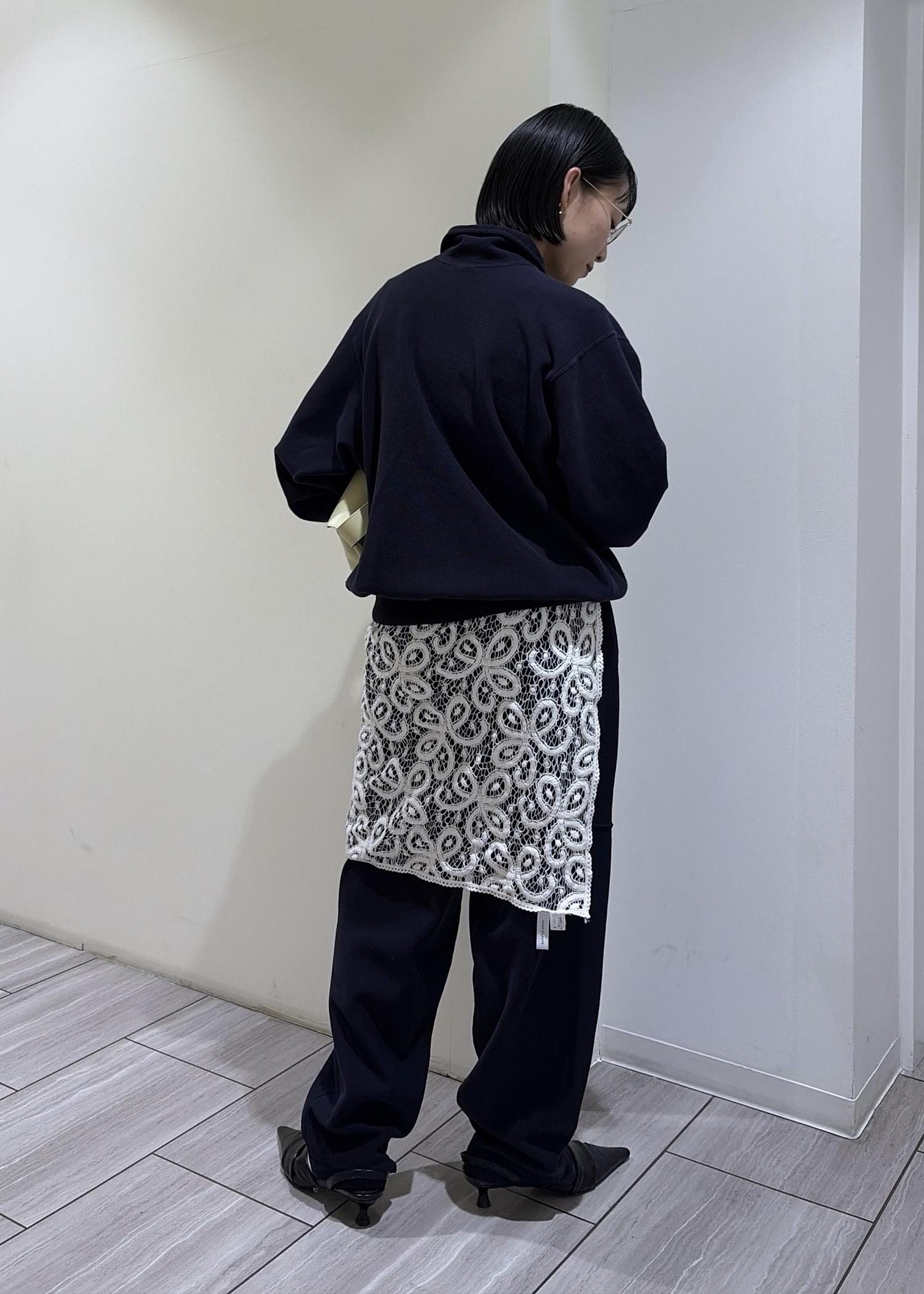ハーフジップ仕様のスウェット。ゆるっと着用頂けるアイテムでセットアップ対応しています。インナーにシャツを合わせても◯!