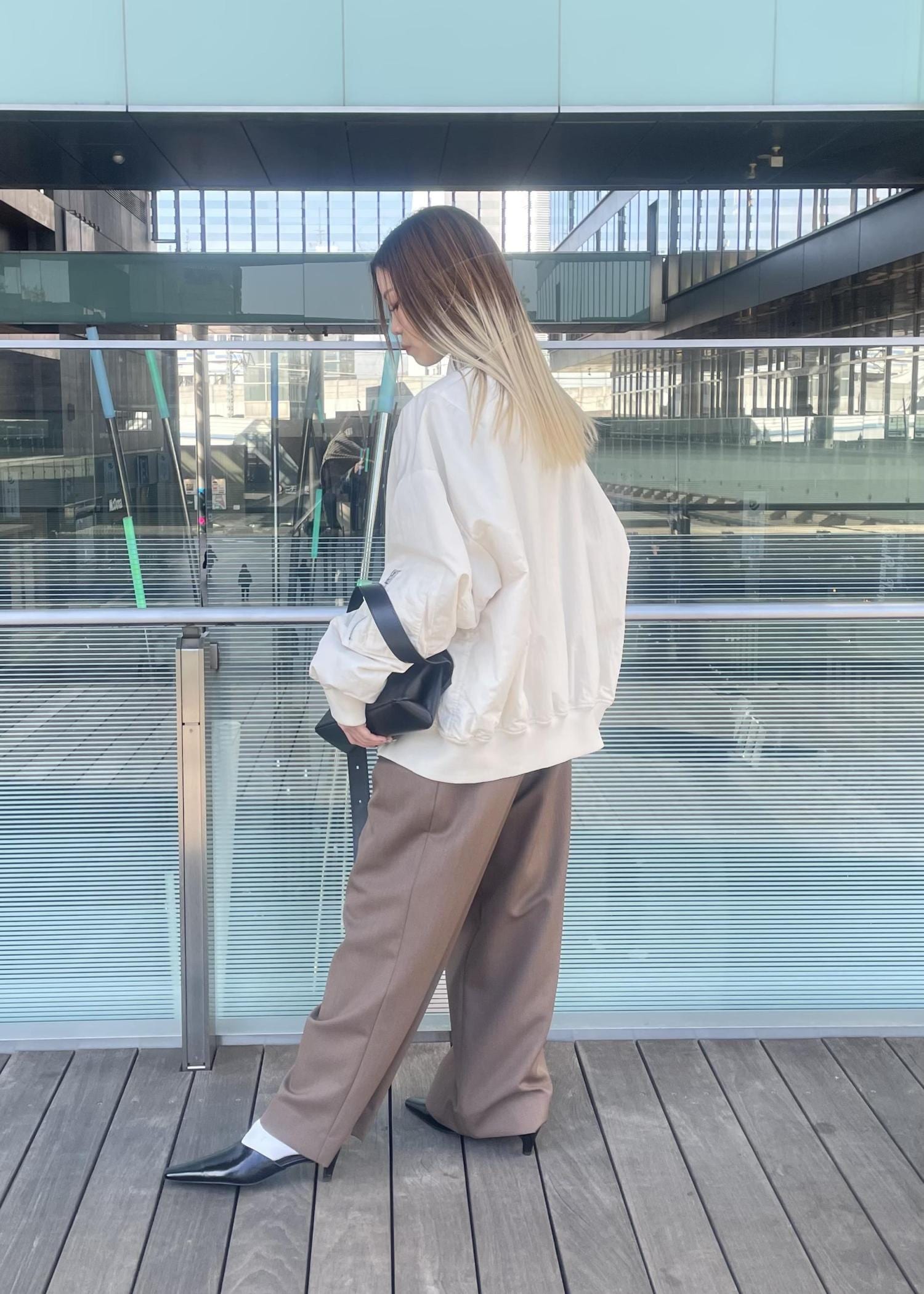 シルエットが綺麗でスニーカーでもヒール合わせでも使いやすいパンツです! -