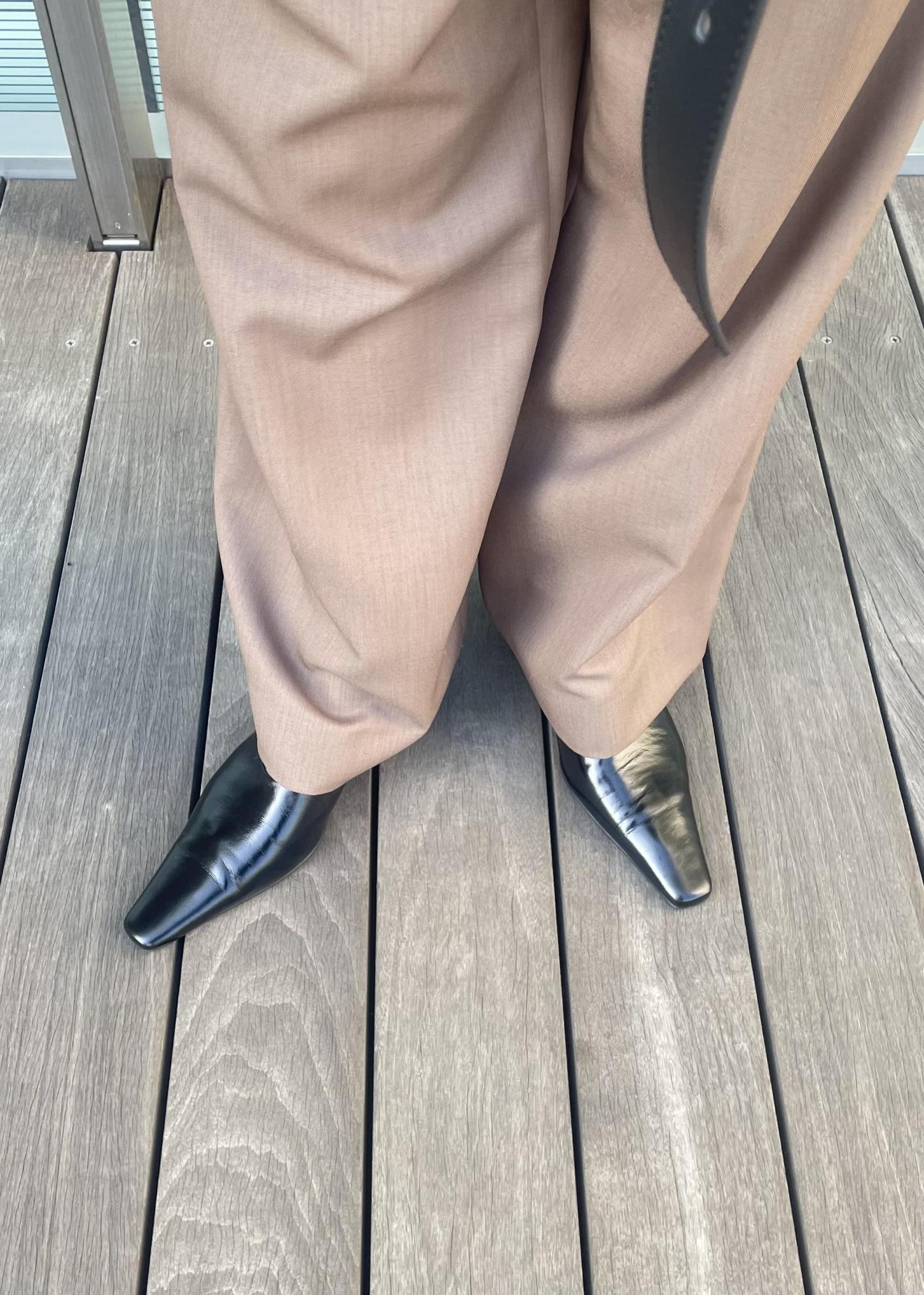 EMOELLE【EMOELLE】レザーミュールブラック / 38.0¥28,600レビュー普段25〜25.5cmなので38.0サイズでギリギリでした!ヒールは高くないですが、綺麗見えするヒールで安定感もあり歩きやすいミュールです◎